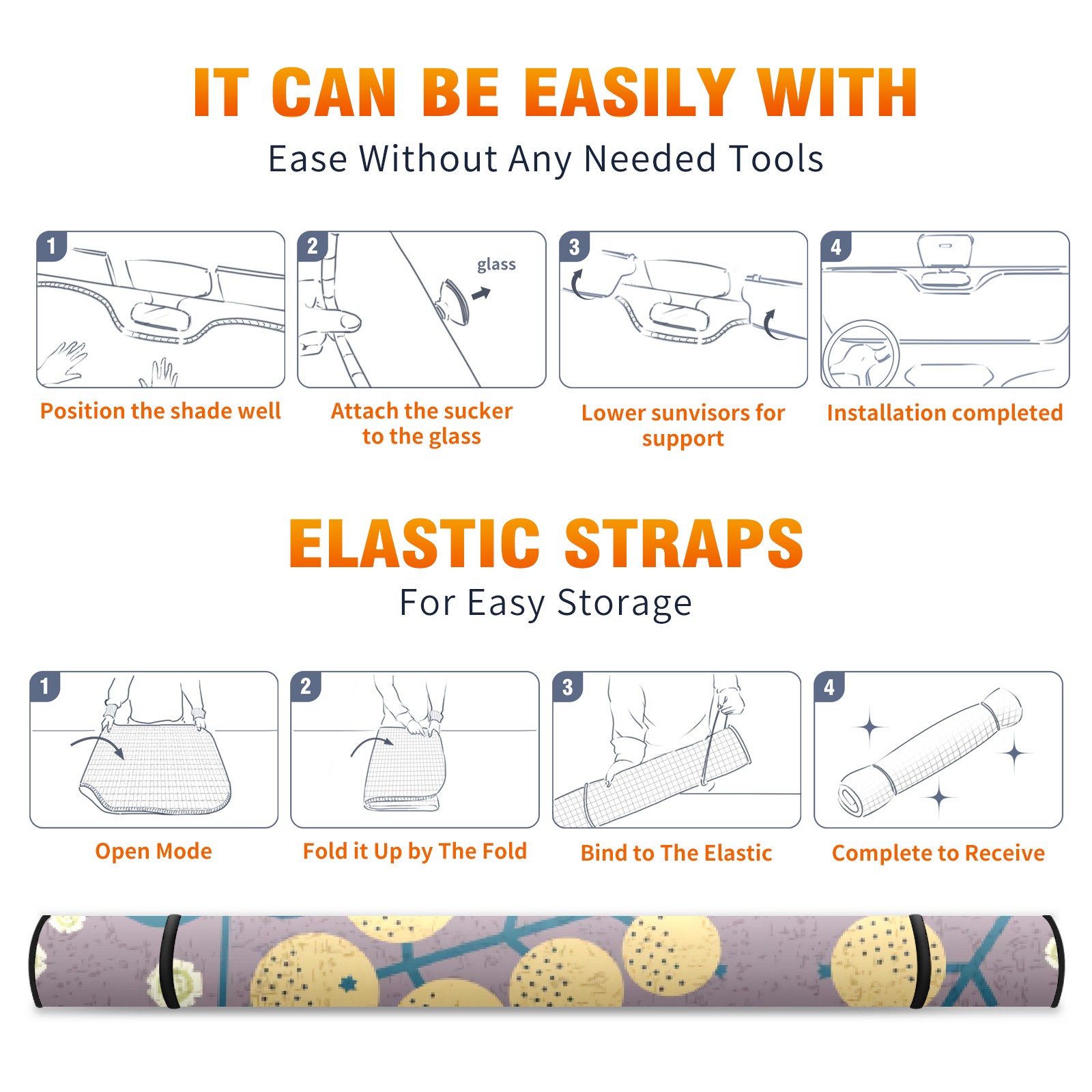 • Diameter /Size 63"L x 33.5"W Made from excellent materials which makes it sturdy and protects the car from the sun. Easy to use and pack. Makes the interior of the car cooler.You can easily stash the sunshade in the storage bag or store long term.It open and closes easy. Also the leather storage bag is durable and easy to put the umbrella back into.This windshield sunshade provides complete coverage and keeps your car interior cool under direct sun. It is easy to open and position under the windshield and around the rear-view mirror. Makes Your Car Easy To Identify, Perfect For Finding Your Car In Crowded Parking Lots And Garages.Great Choice: It Is A Great Gift For Dad, Boyfriend, Brother, Brother And Uncle, Friends, Classmates, Family And So On. Notice: Due To Difference Computer Monitors, The Color Maybe Slightly Different From Picture. As Different Measurement Methods, Measurement Data Will Float Within 2%.I Hope You Understand. If You Have Any Question About The Item Please Do Not Hesitate To Contact Us Immediately And We Will Give You A Satisfactory Reply Within 24 Hours.