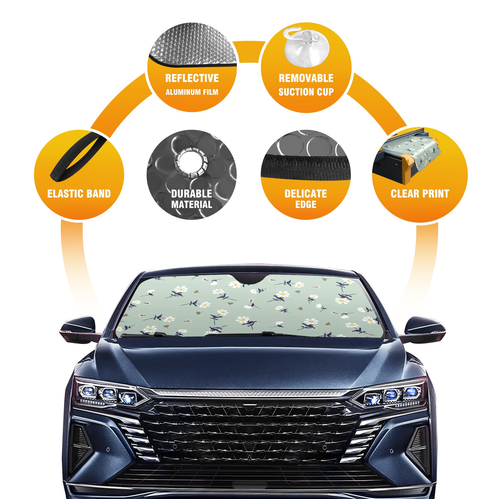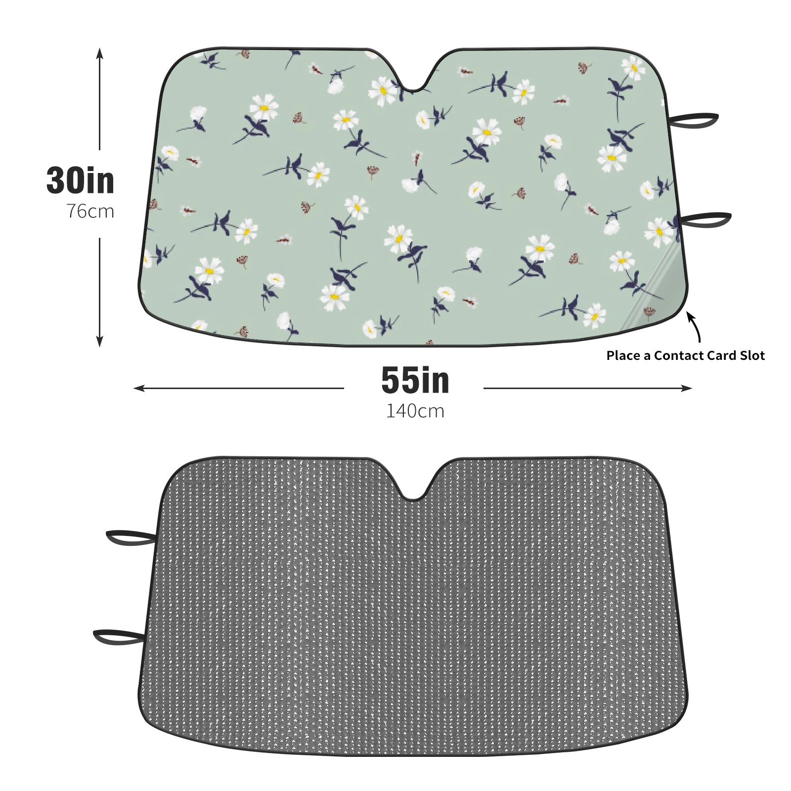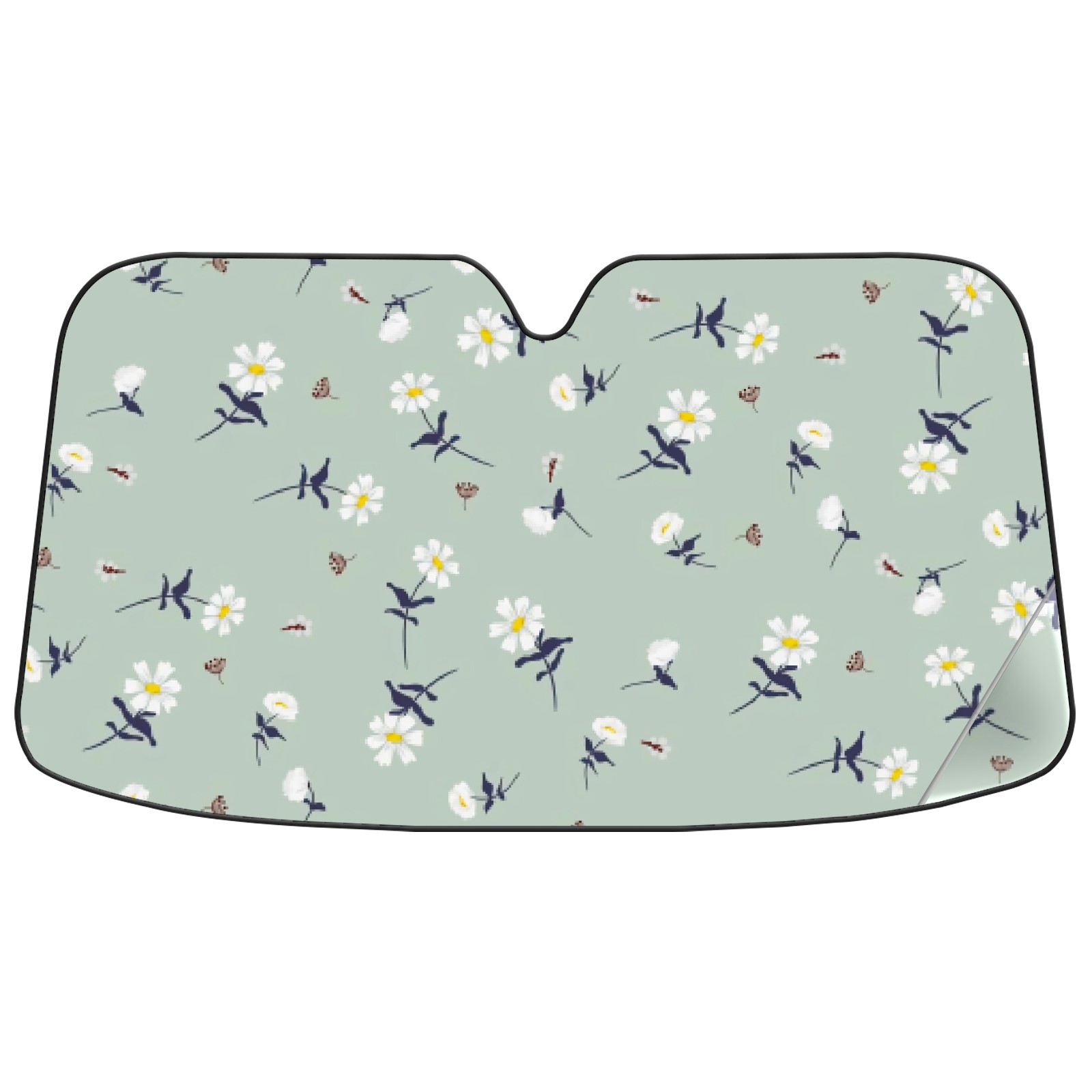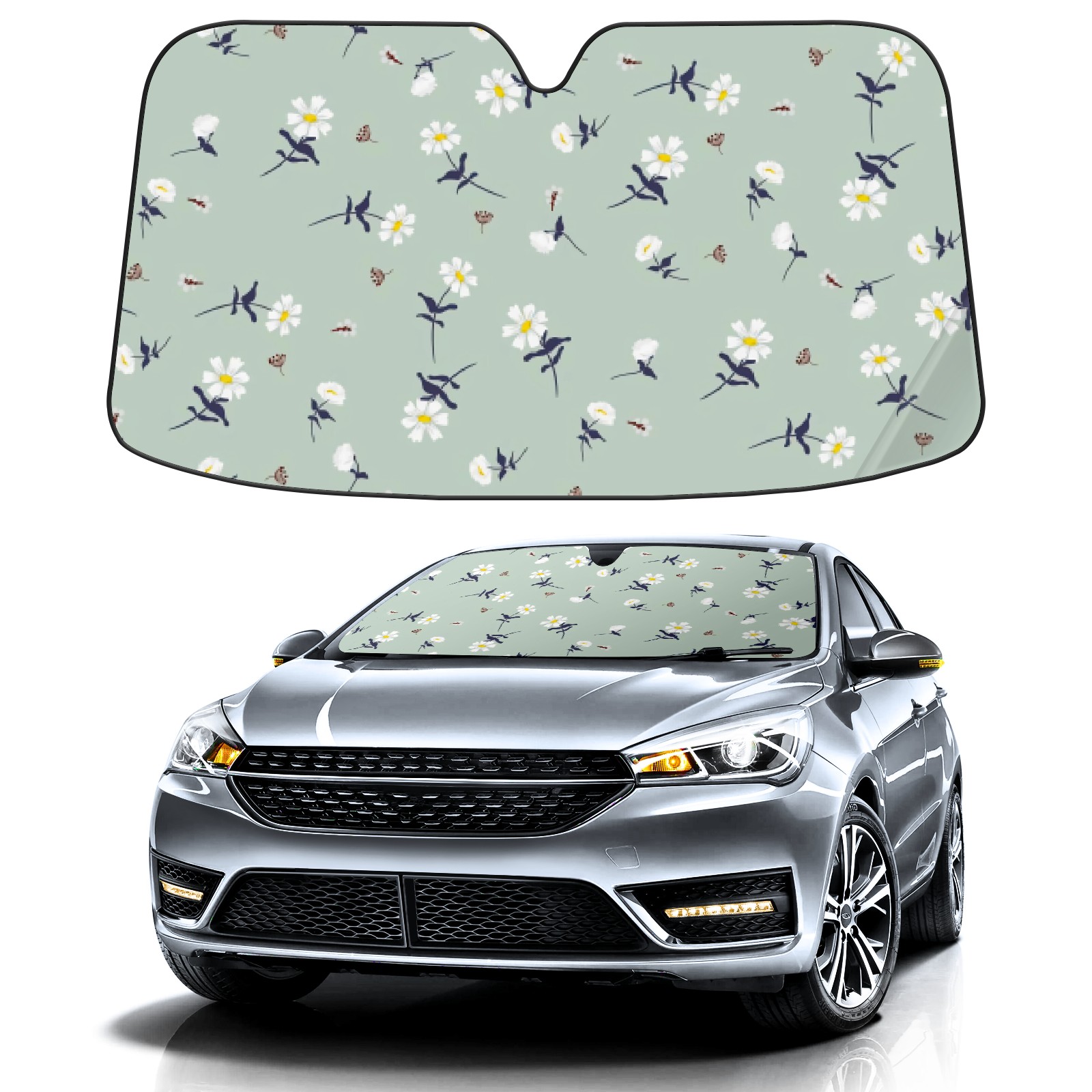 Car Windshield Sun Shade For Front Window Green With White Daisies Foldable Vehicle Windshield Car Sun Visor Covers Automotive Window Protector Car Camping Privacy Sun Blocker