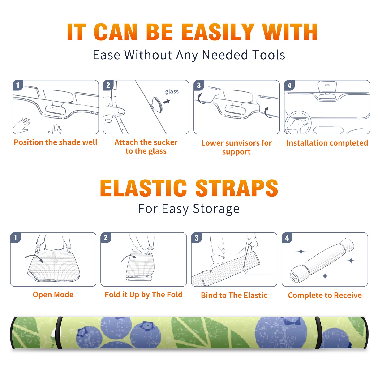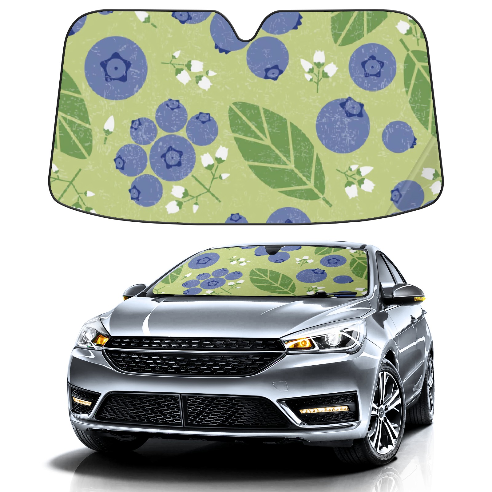 Car Windshield Sun Shade For Front Window Green Purple Blueberry Foldable Vehicle Windshield Car Sun Visor Covers Automotive Window Protector Car Camping Privacy Sun Blocker