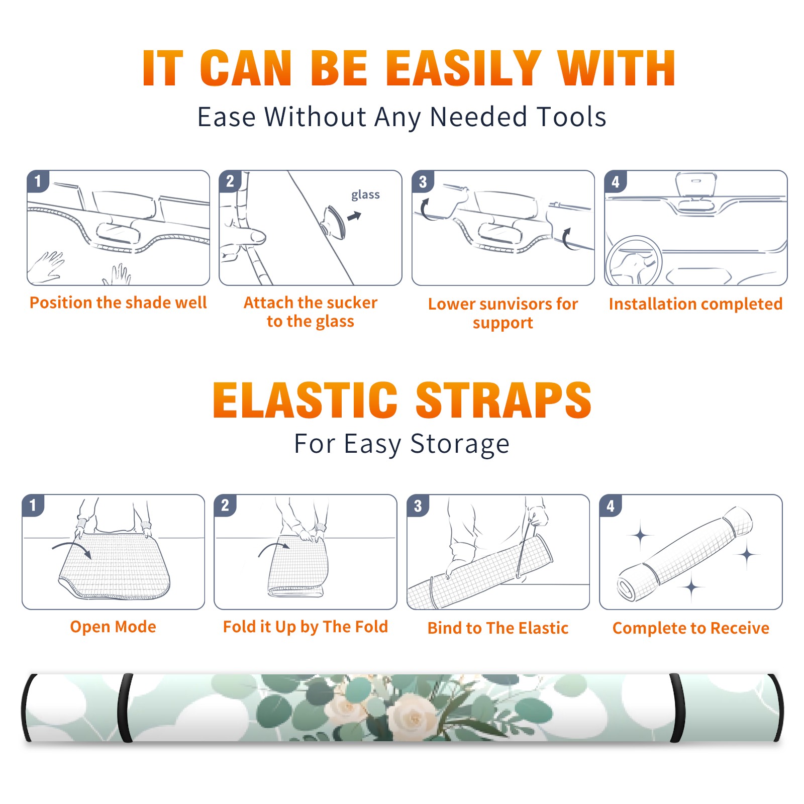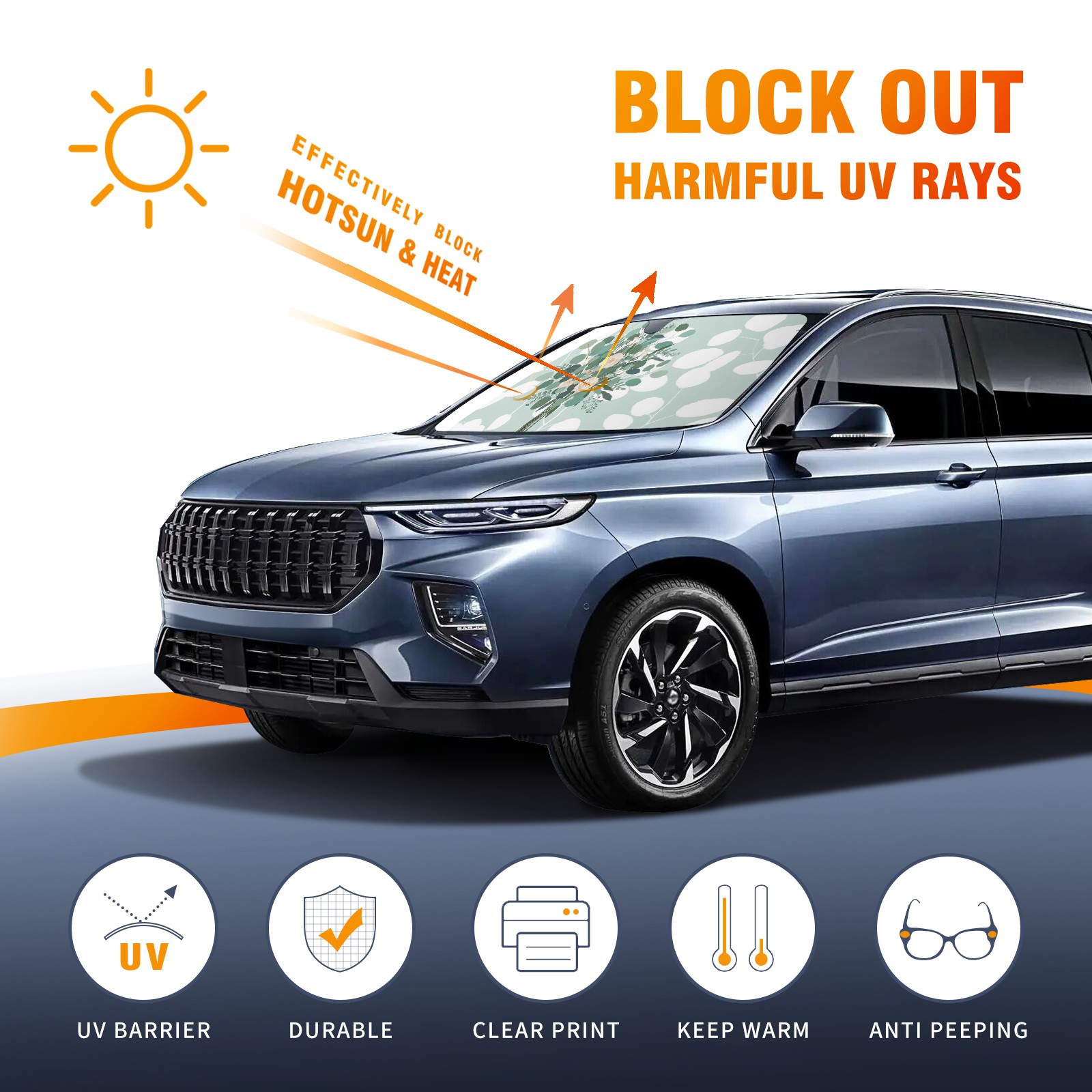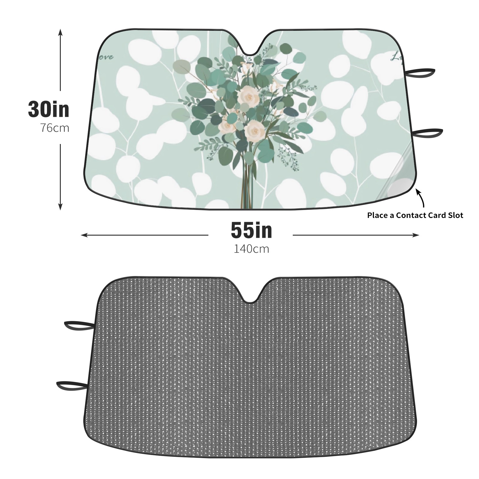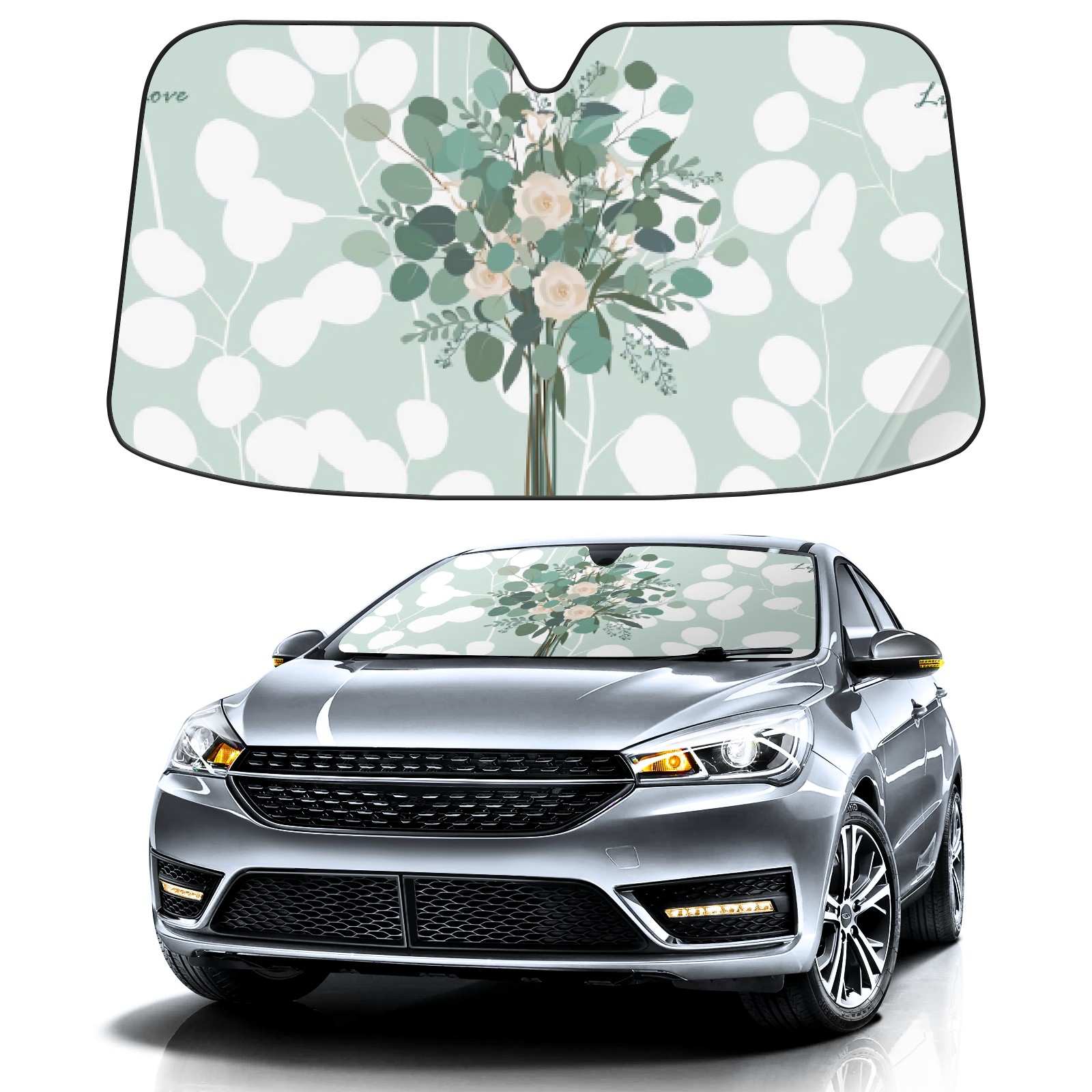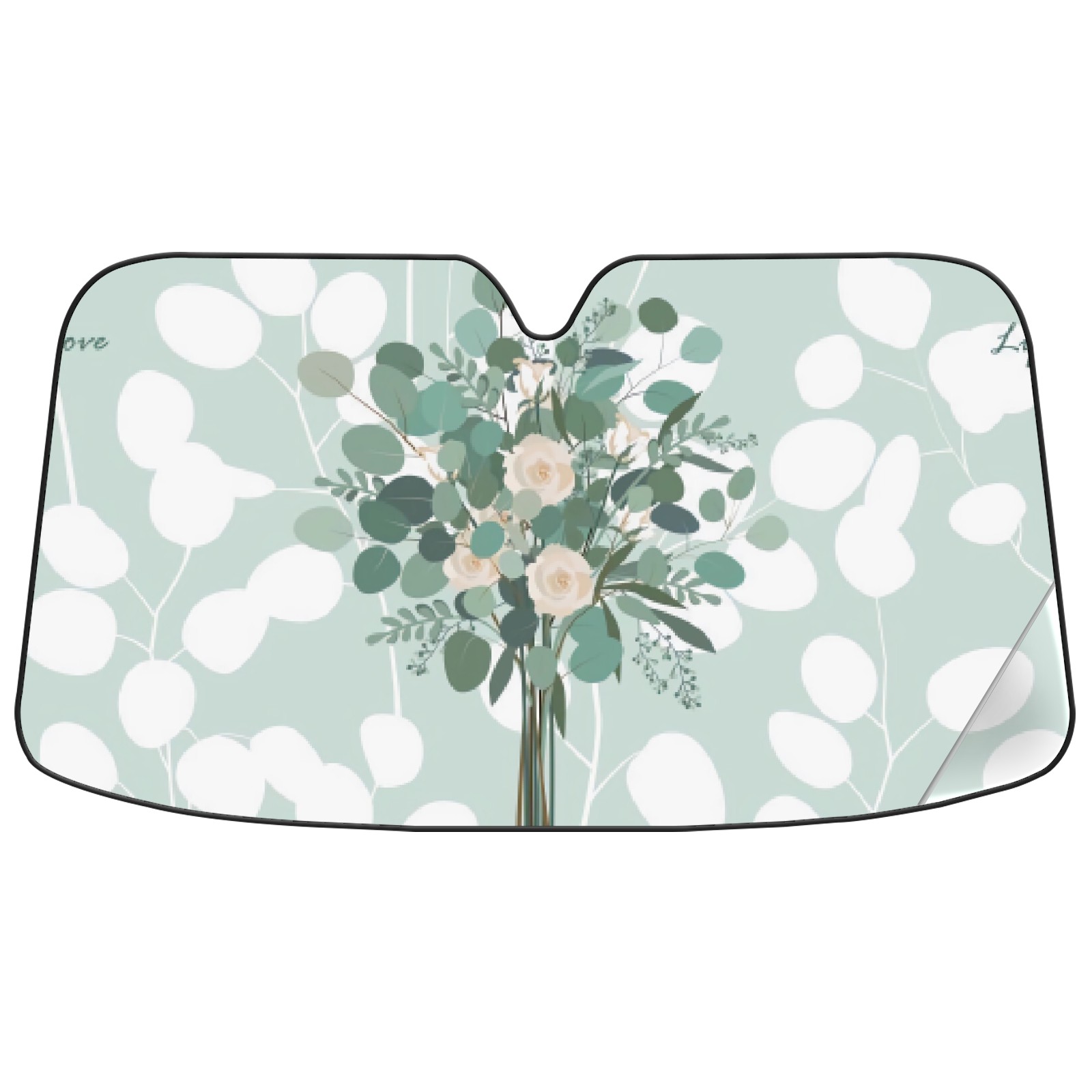 Car Windshield Sun Shade For Front Window Green White Bouquet Foldable Vehicle Windshield Car Sun Visor Covers Automotive Window Protector Car Camping Privacy Sun Blocker
