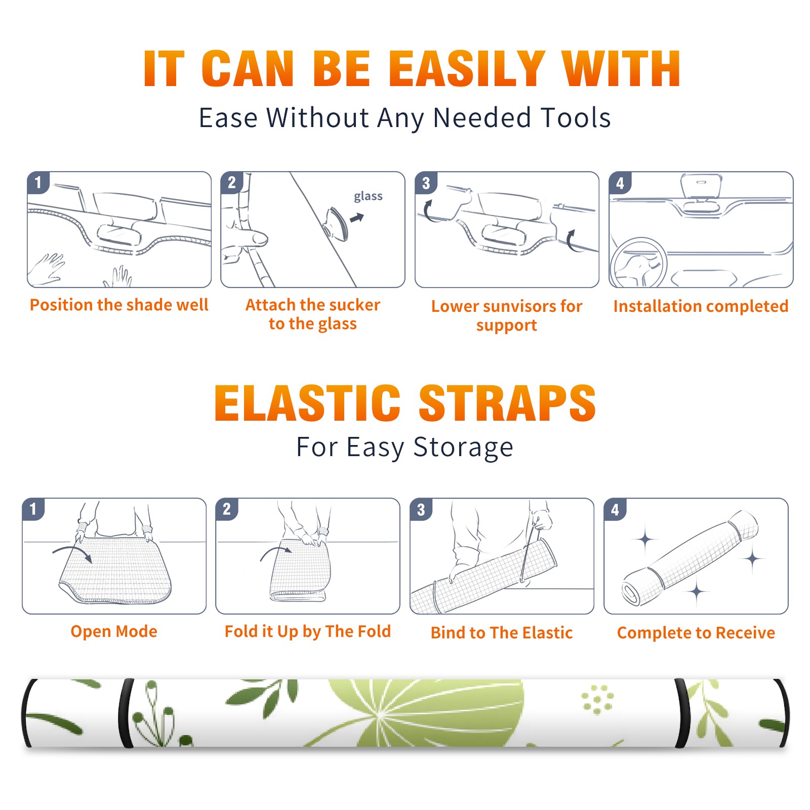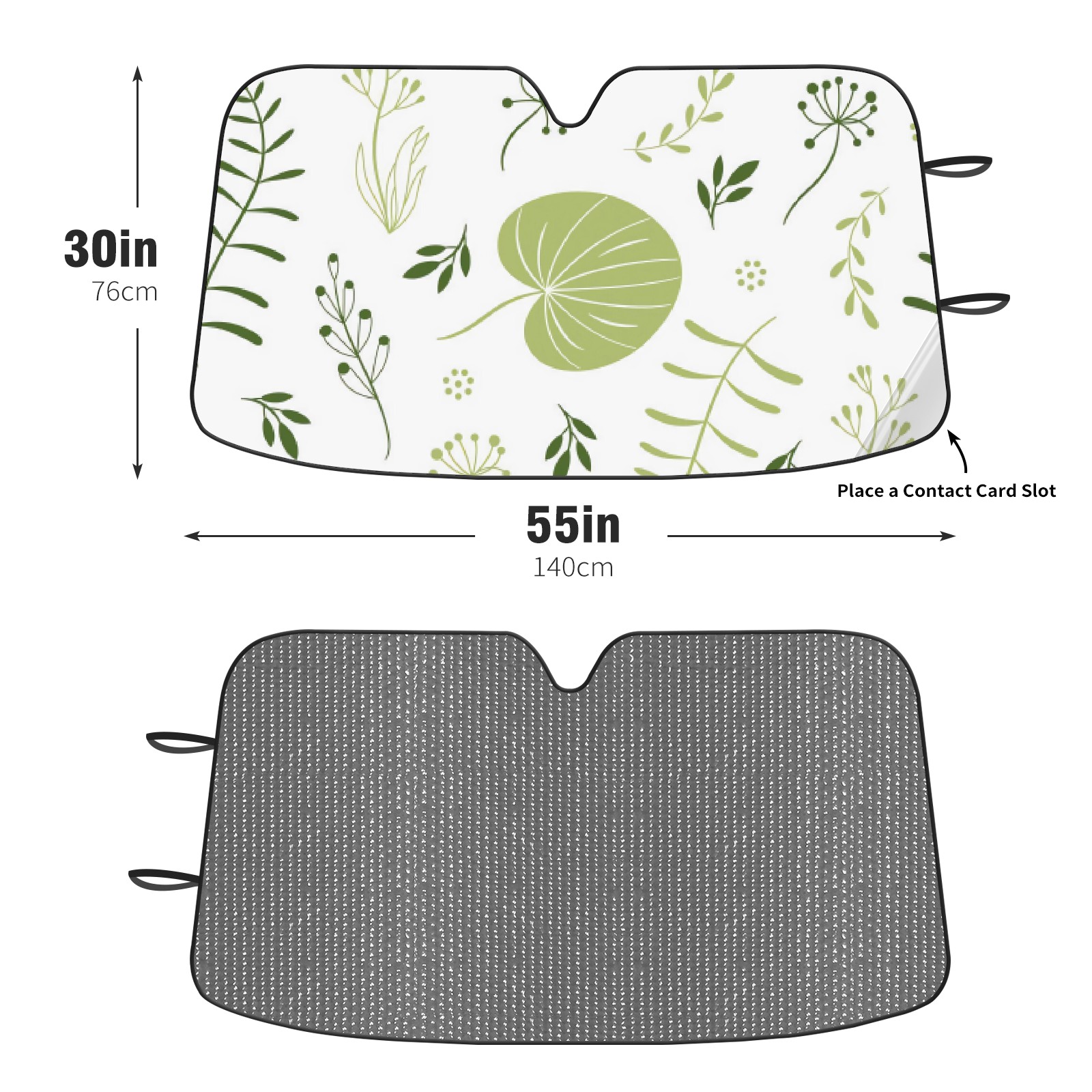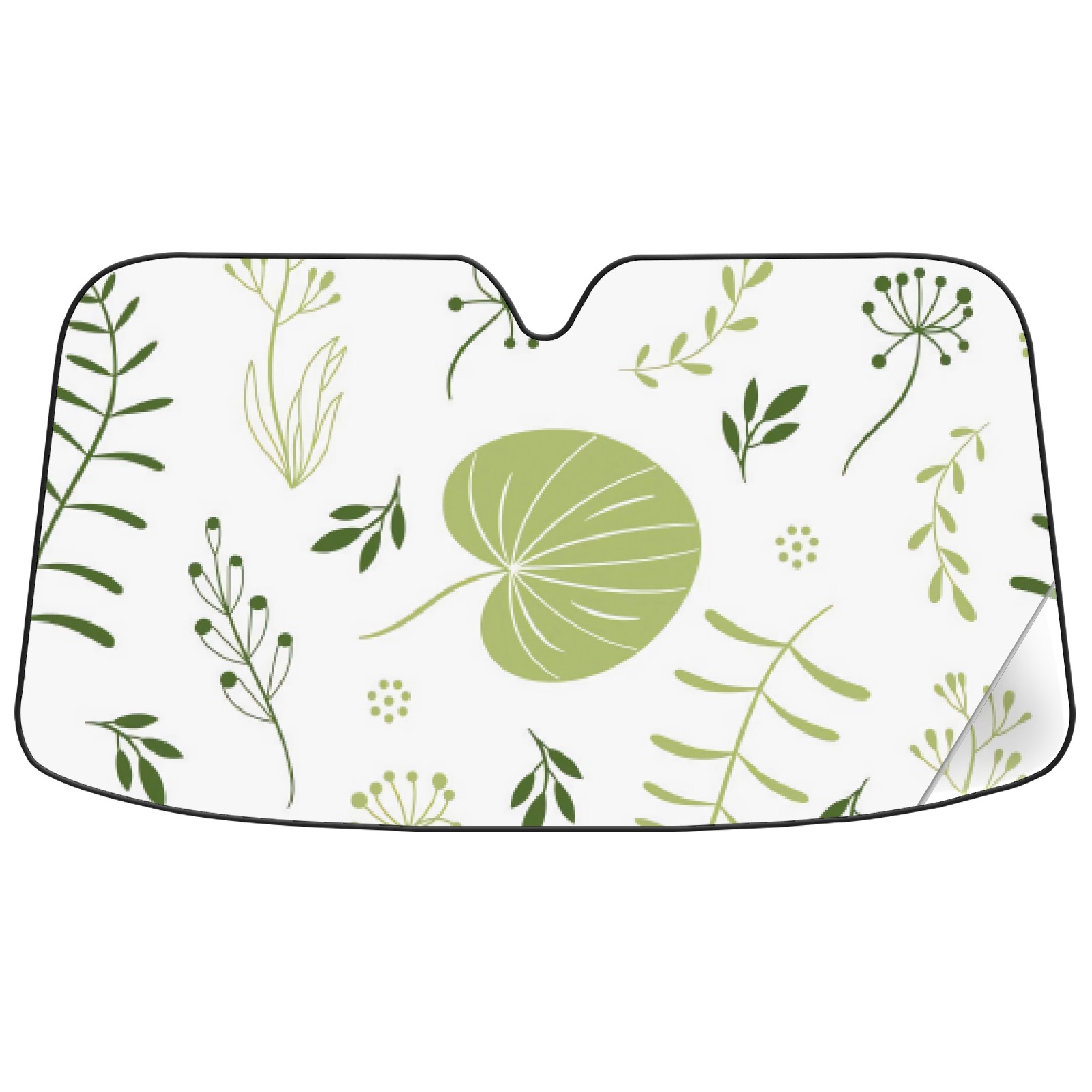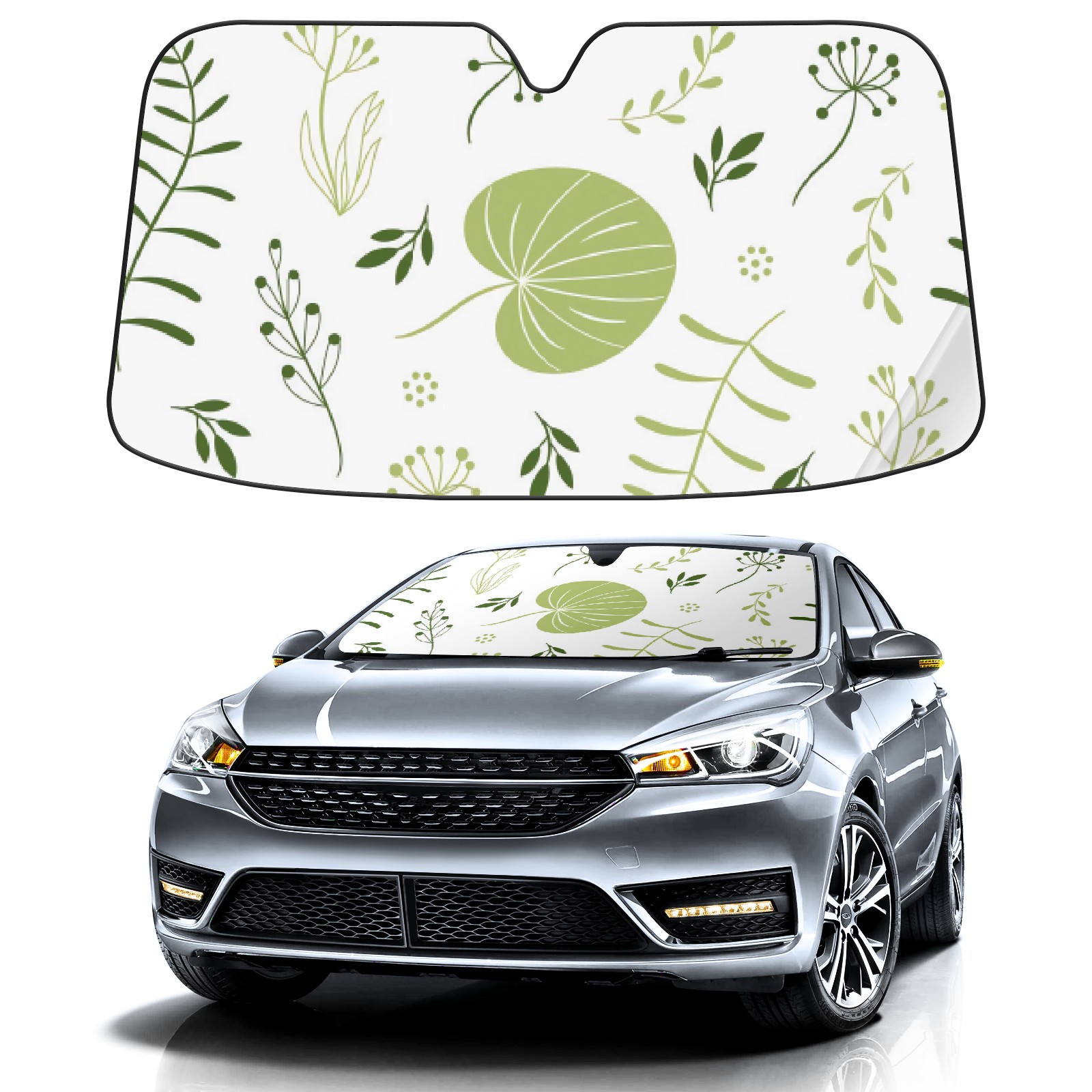 Car Windshield Sun Shade For Front Window White With Green Leaves Foldable Vehicle Windshield Car Sun Visor Covers Automotive Window Protector Car Camping Privacy Sun Blocker