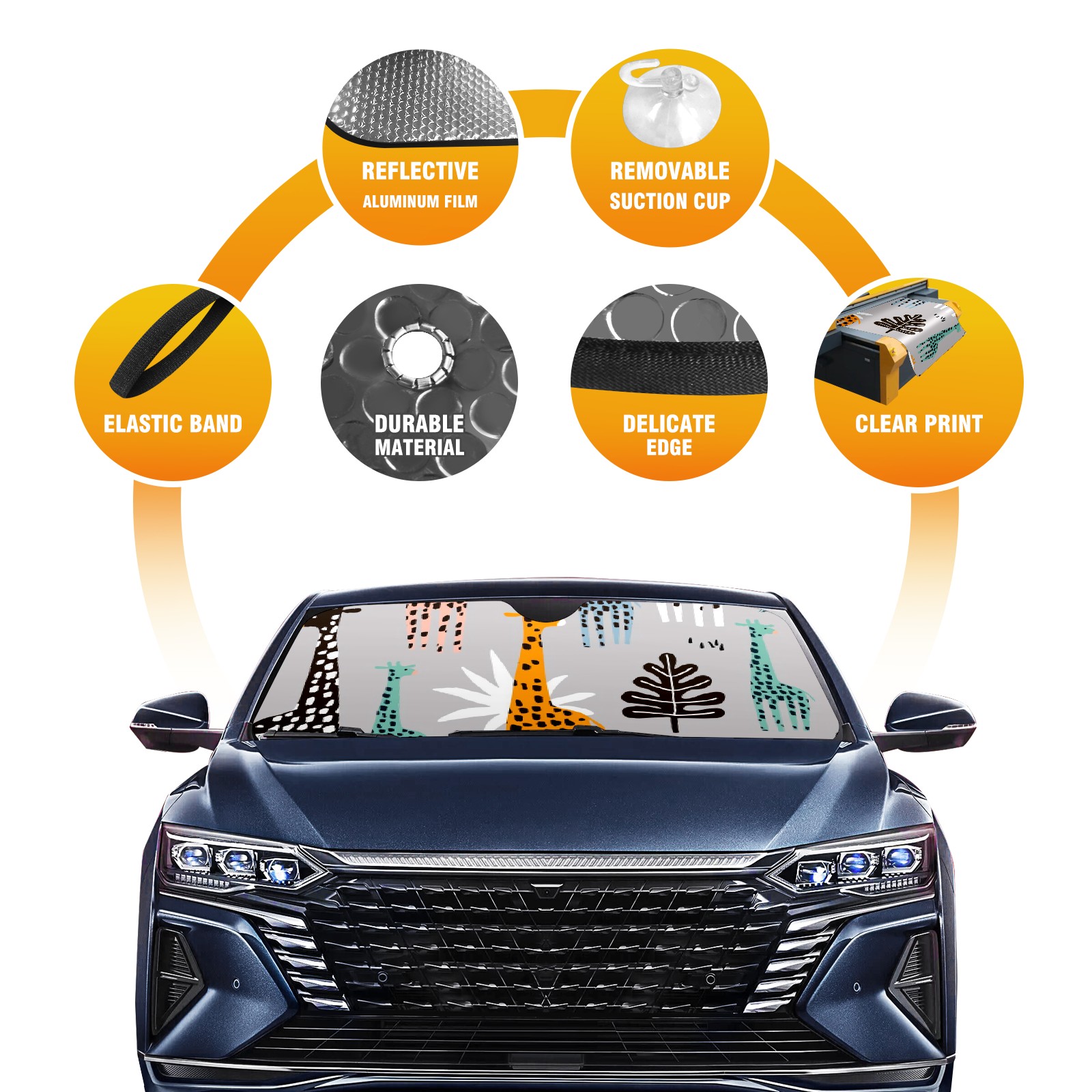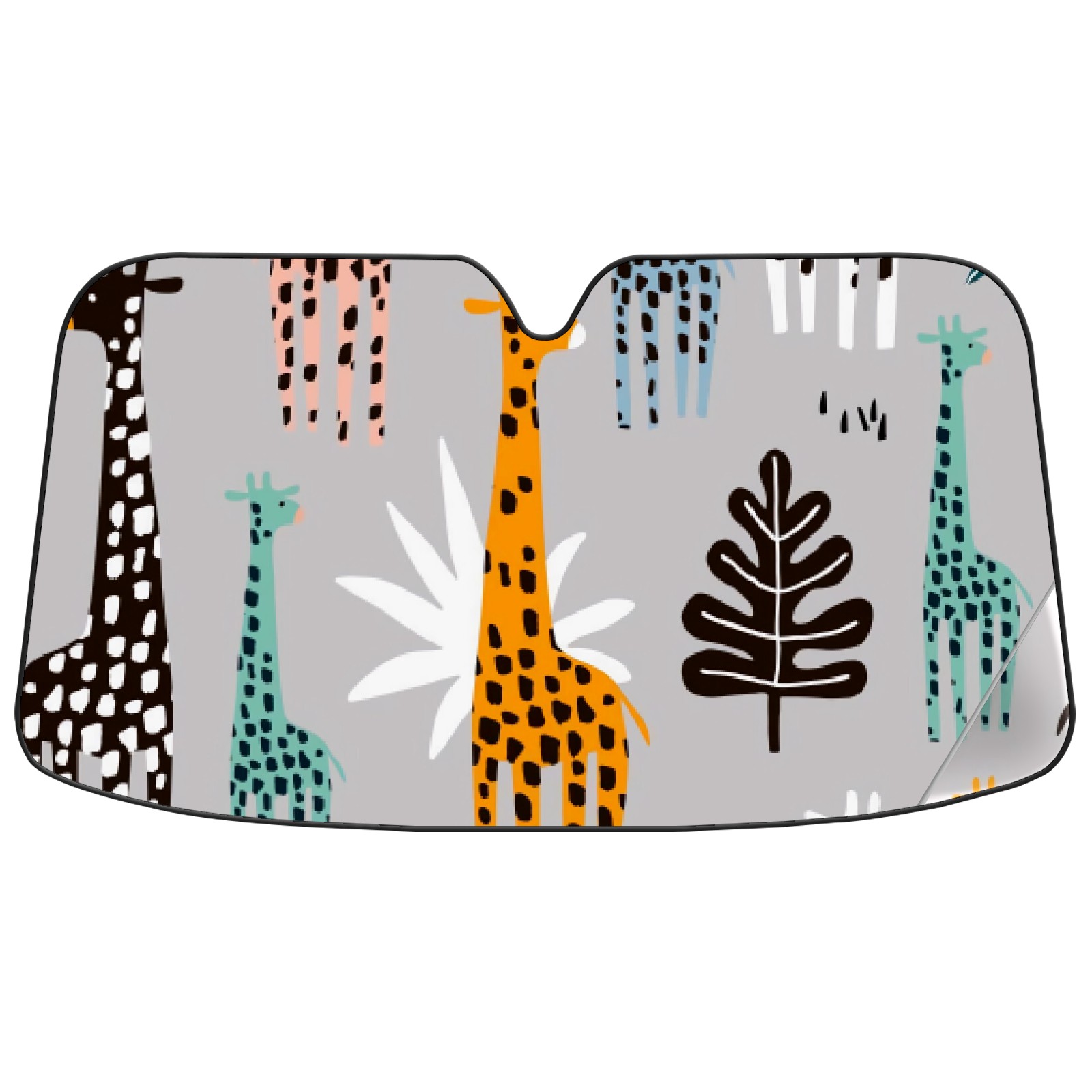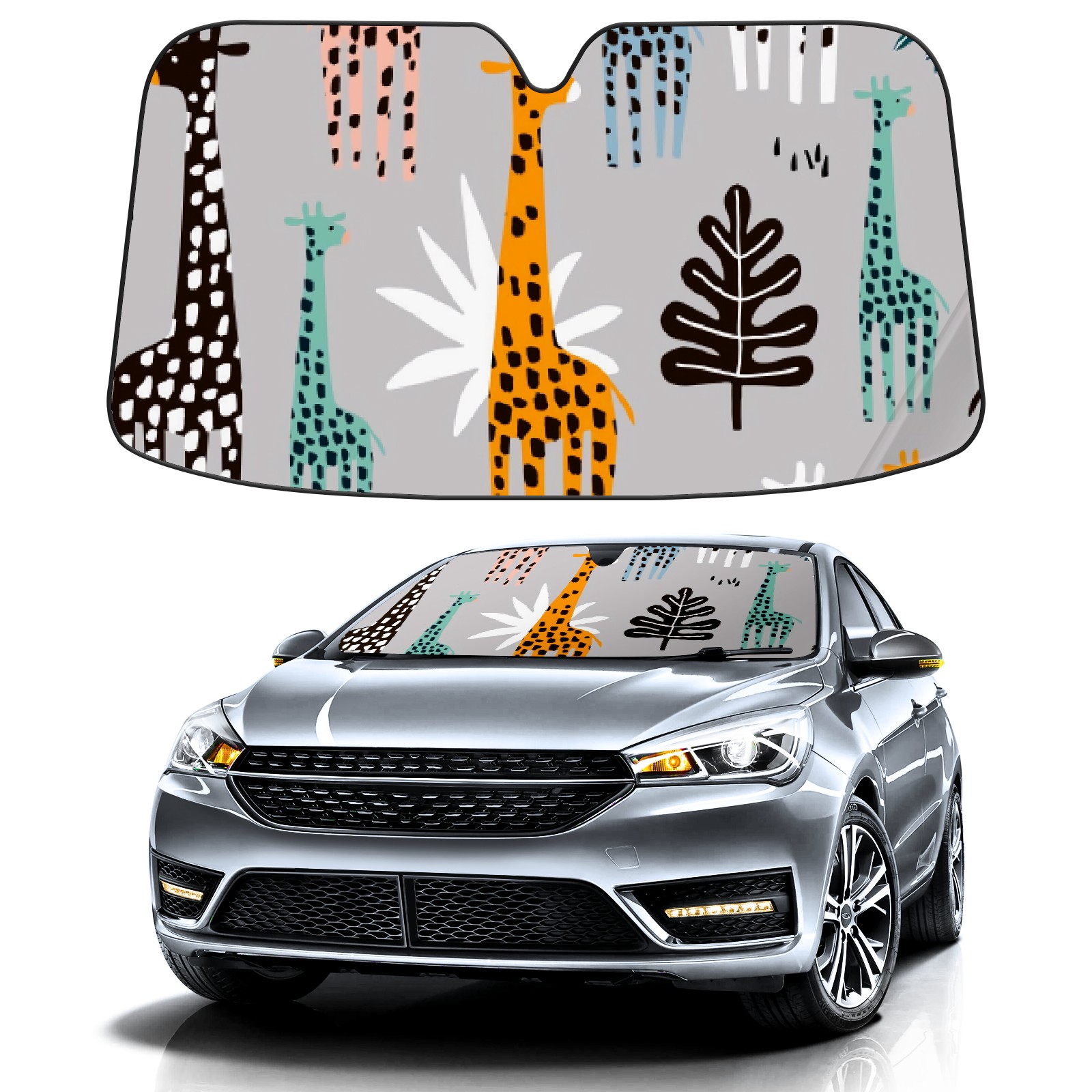 Car Windshield Sun Shade For Front Window Cartoon Gray Giraffe Foldable Vehicle Windshield Car Sun Visor Covers Automotive Window Protector Car Camping Privacy Sun Blocker