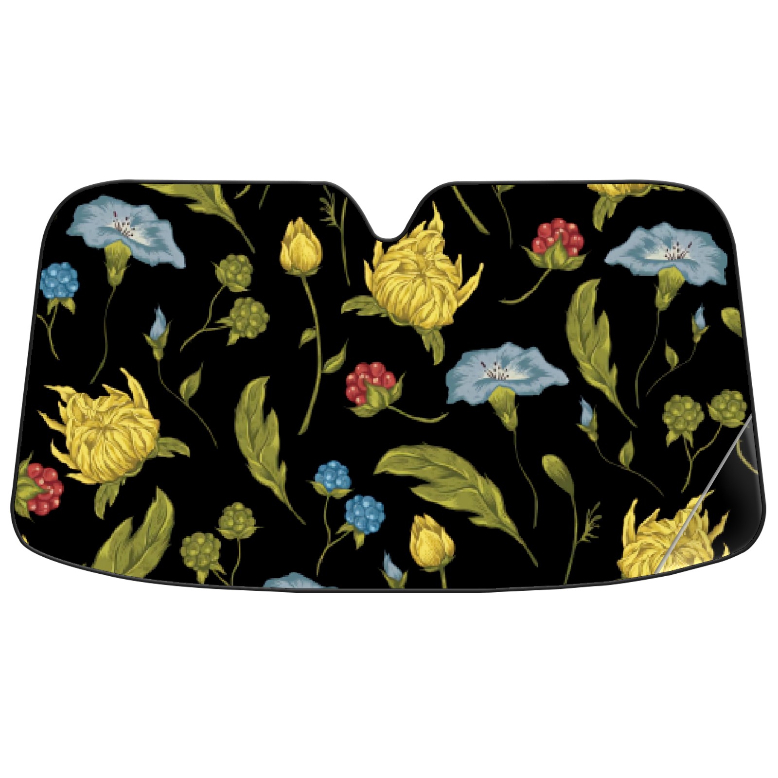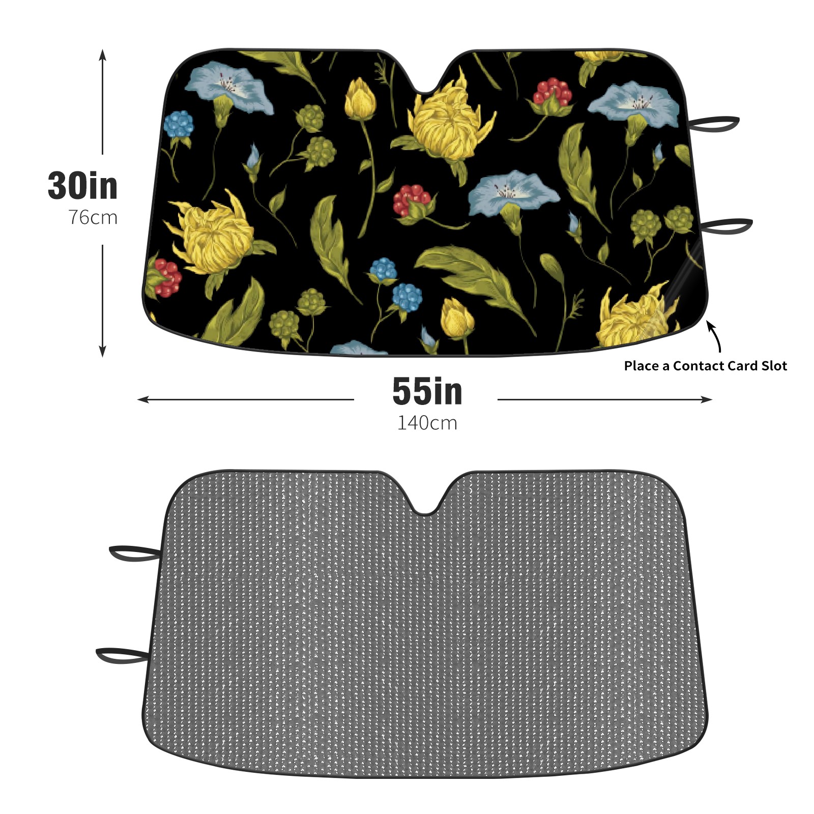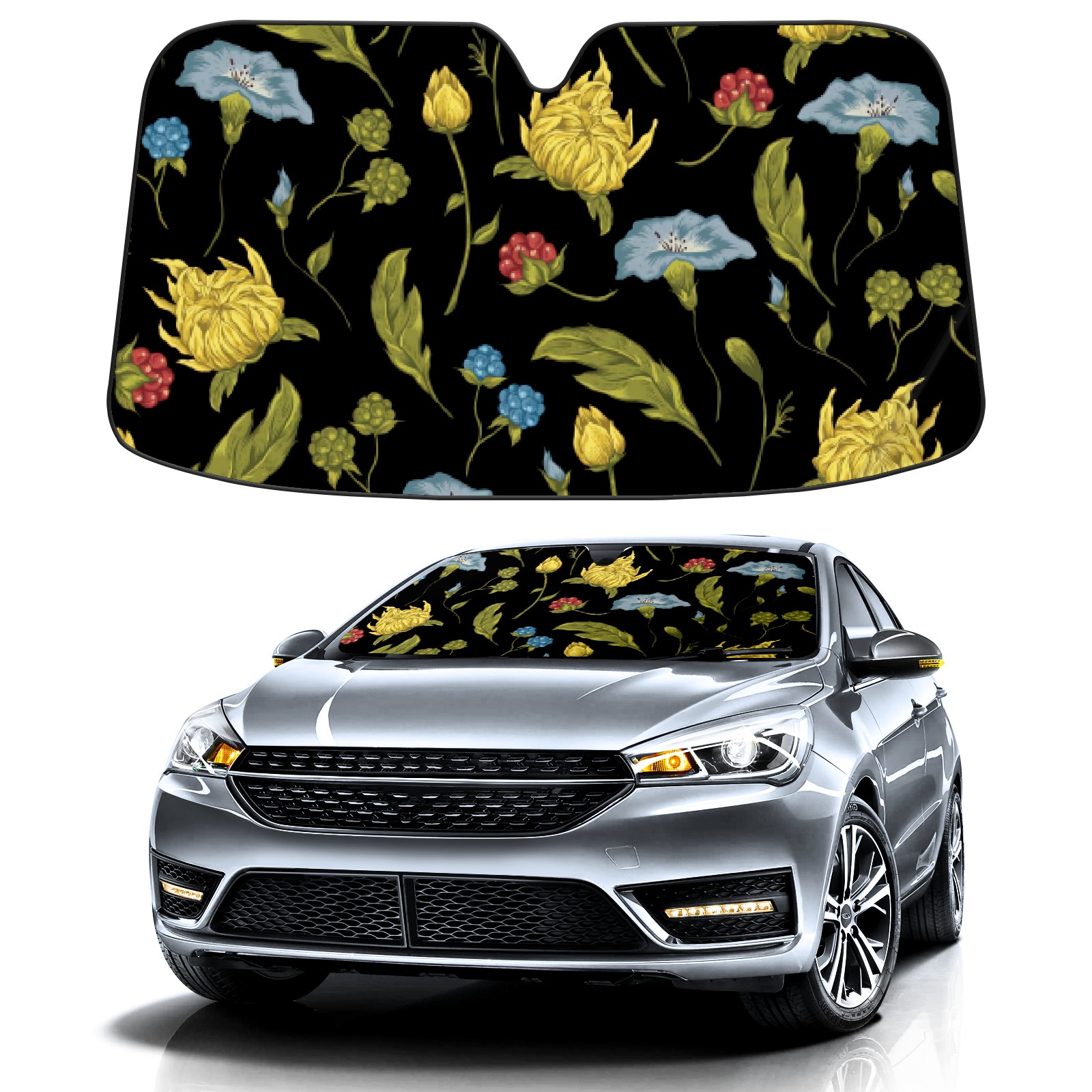 Car Windshield Sun Shade For Front Window Yellow Daisy On Black Foldable Vehicle Windshield Car Sun Visor Covers Automotive Window Protector Car Camping Privacy Sun Blocker