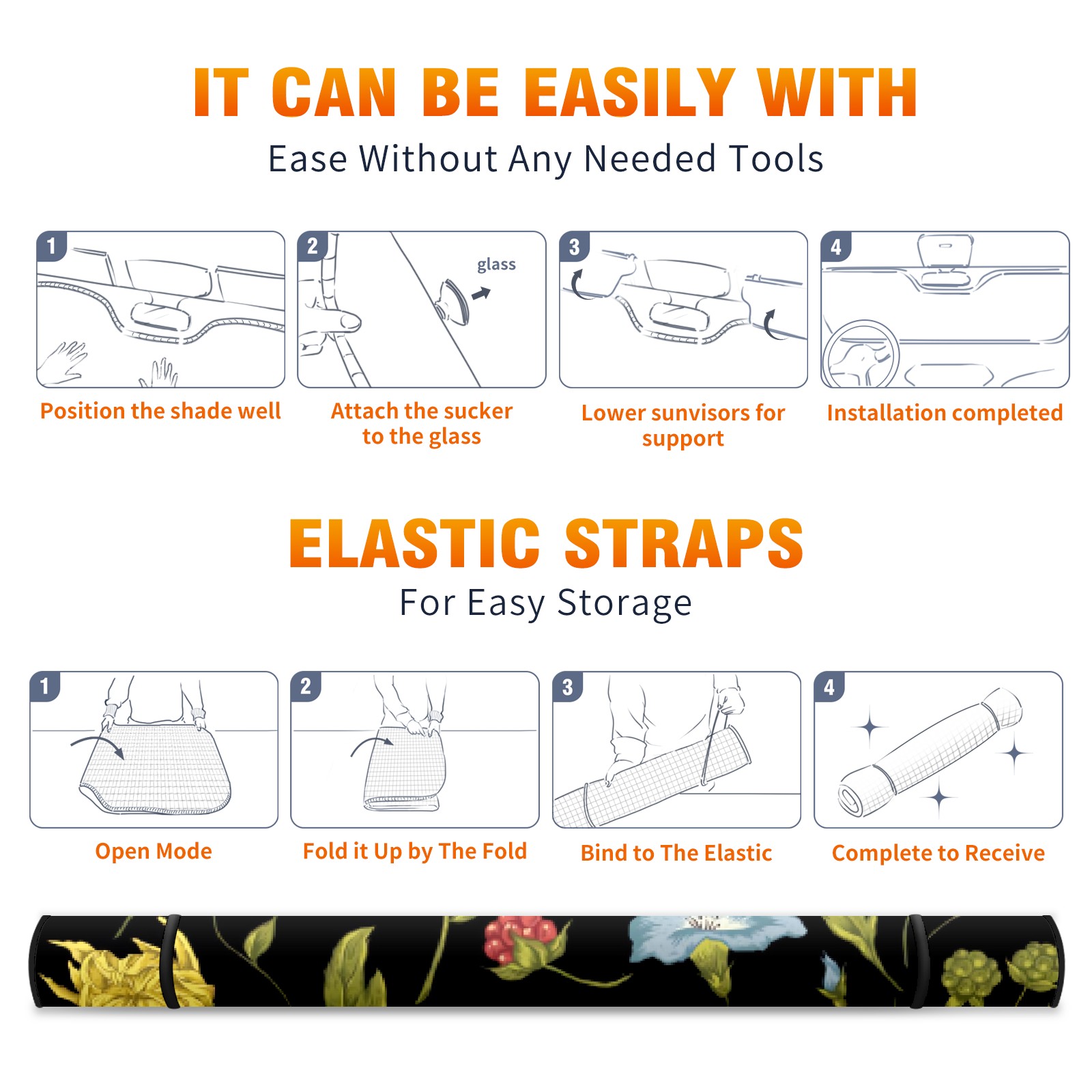 • Diameter /Size 63"L x 33.5"W Made from excellent materials which makes it sturdy and protects the car from the sun. Easy to use and pack. Makes the interior of the car cooler.You can easily stash the sunshade in the storage bag or store long term.It open and closes easy. Also the leather storage bag is durable and easy to put the umbrella back into.This windshield sunshade provides complete coverage and keeps your car interior cool under direct sun. It is easy to open and position under the windshield and around the rear-view mirror. Makes Your Car Easy To Identify, Perfect For Finding Your Car In Crowded Parking Lots And Garages.Great Choice: It Is A Great Gift For Dad, Boyfriend, Brother, Brother And Uncle, Friends, Classmates, Family And So On. Notice: Due To Difference Computer Monitors, The Color Maybe Slightly Different From Picture. As Different Measurement Methods, Measurement Data Will Float Within 2%.I Hope You Understand. If You Have Any Question About The Item Please Do Not Hesitate To Contact Us Immediately And We Will Give You A Satisfactory Reply Within 24 Hours.