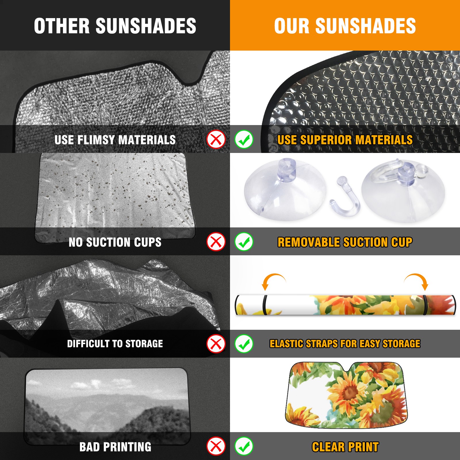 • Diameter /Size 63"L x 33.5"W Made from excellent materials which makes it sturdy and protects the car from the sun. Easy to use and pack. Makes the interior of the car cooler.You can easily stash the sunshade in the storage bag or store long term.It open and closes easy. Also the leather storage bag is durable and easy to put the umbrella back into.This windshield sunshade provides complete coverage and keeps your car interior cool under direct sun. It is easy to open and position under the windshield and around the rear-view mirror. Makes Your Car Easy To Identify, Perfect For Finding Your Car In Crowded Parking Lots And Garages.Great Choice: It Is A Great Gift For Dad, Boyfriend, Brother, Brother And Uncle, Friends, Classmates, Family And So On. Notice: Due To Difference Computer Monitors, The Color Maybe Slightly Different From Picture. As Different Measurement Methods, Measurement Data Will Float Within 2%.I Hope You Understand. If You Have Any Question About The Item Please Do Not Hesitate To Contact Us Immediately And We Will Give You A Satisfactory Reply Within 24 Hours.
