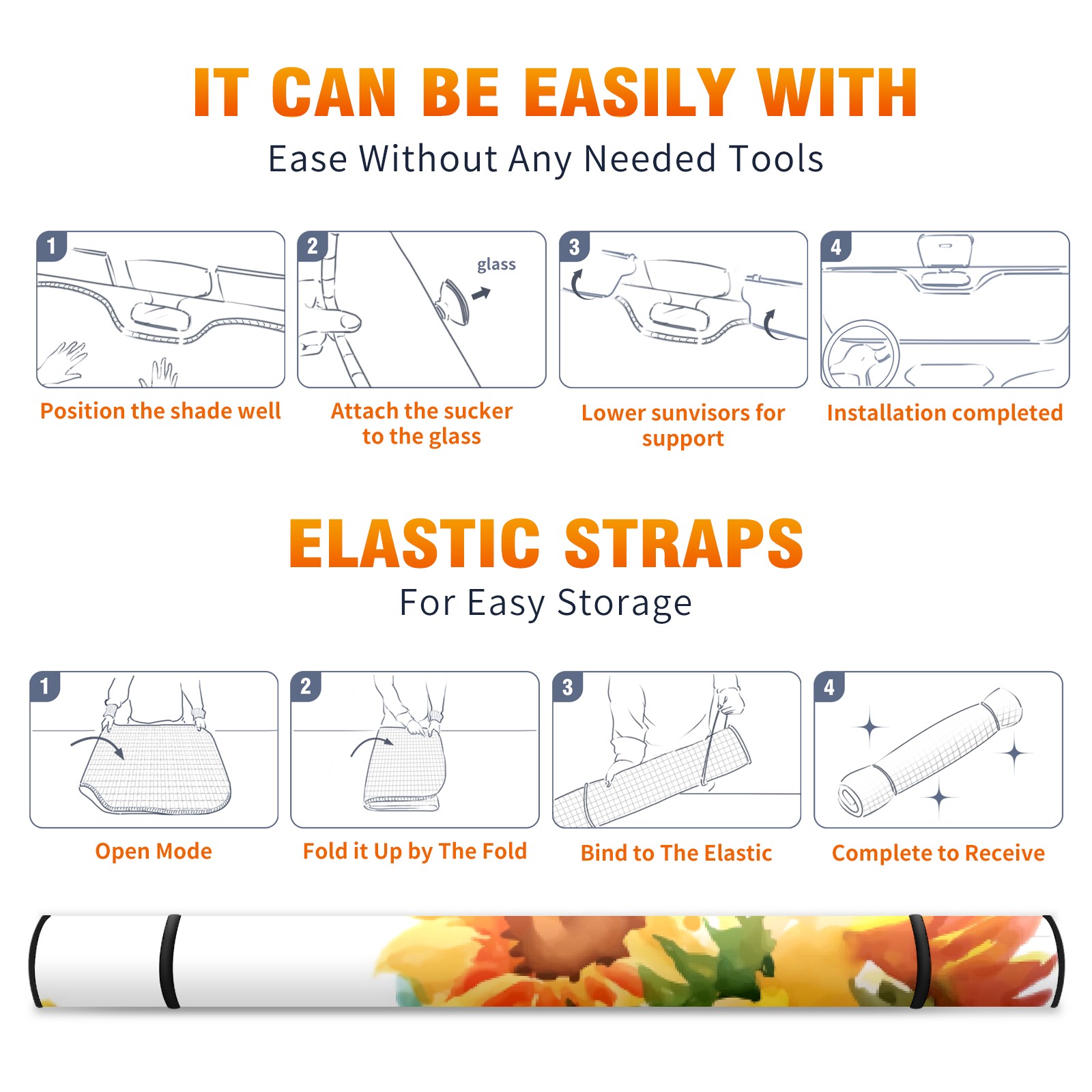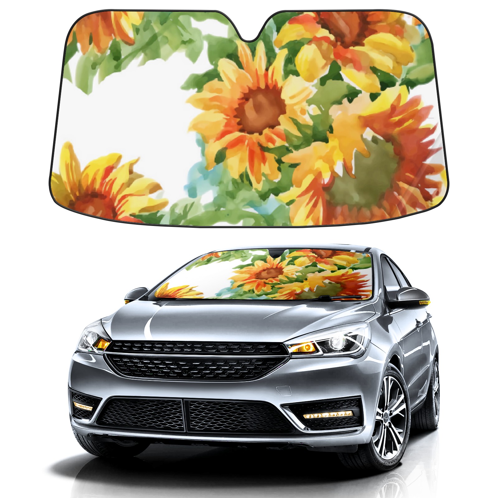 Car Windshield Sun Shade For Front Window Sunflower On Light Color Foldable Vehicle Windshield Car Sun Visor Covers Automotive Window Protector Car Camping Privacy Sun Blocker
