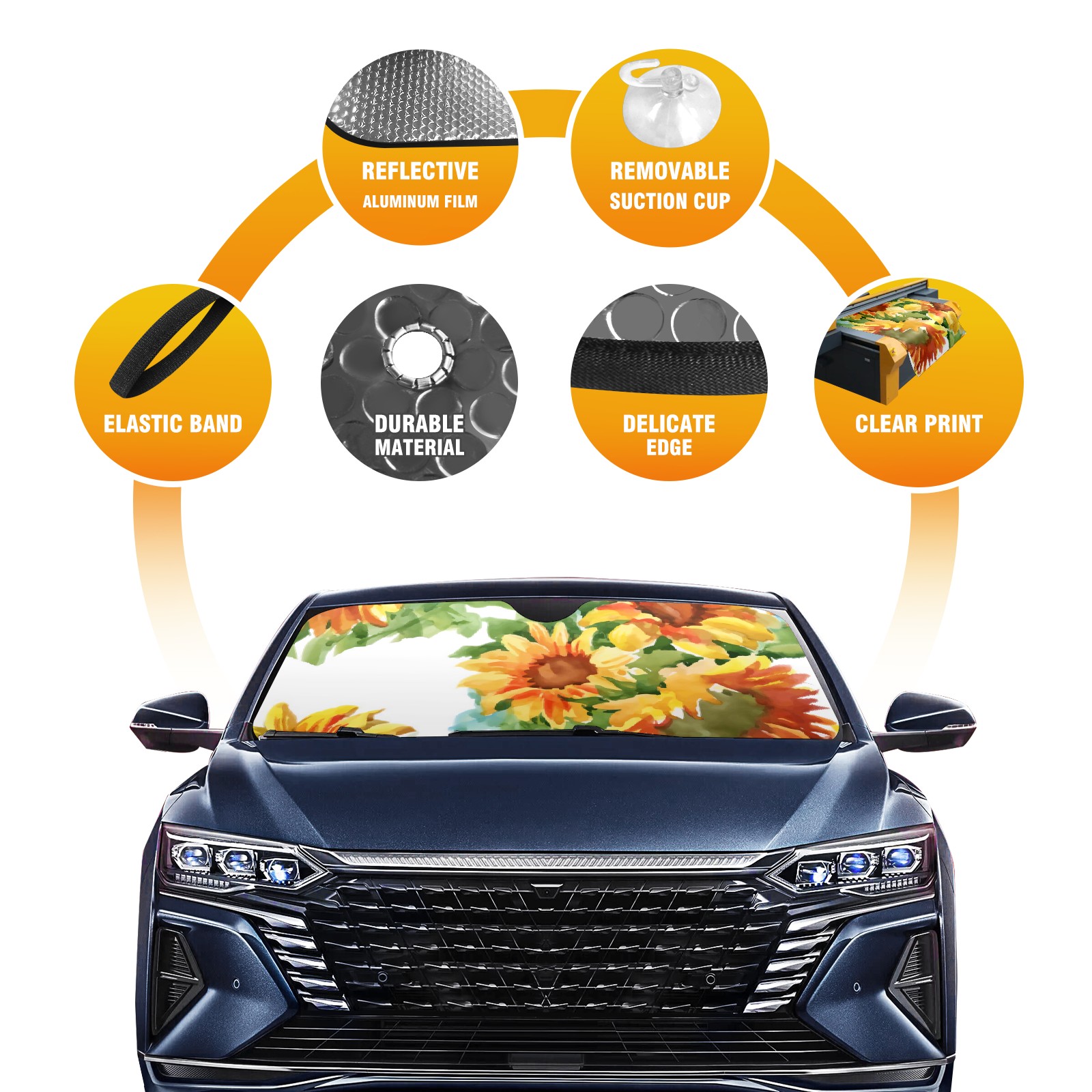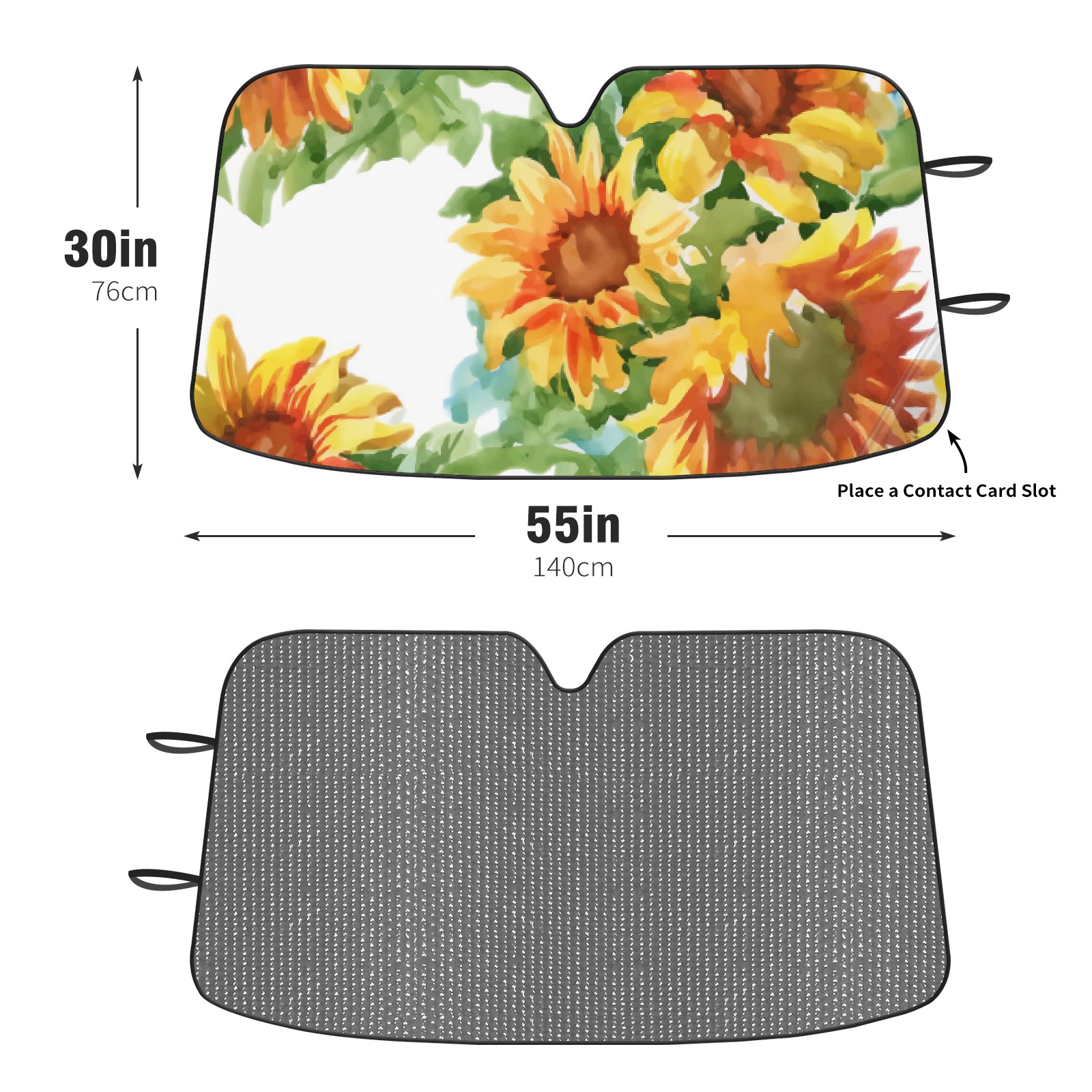 Diameter /Size 63"L x 33.5"W Made from excellent materials which makes it sturdy and protects the car from the sun. Easy to use and pack. Makes the interior of the car cooler.You can easily stash the sunshade in the storage bag or store long term.It open and closes easy. Also the leather storage bag is durable and easy to put the umbrella back into.This windshield sunshade provides complete coverage and keeps your car interior cool under direct sun. It is easy to open and position under the windshield and around the rear-view mirror. Makes Your Car Easy To Identify, Perfect For Finding Your Car In Crowded Parking Lots And Garages.Great Choice: It Is A Great Gift For Dad, Boyfriend, Brother, Brother And Uncle, Friends, Classmates, Family And So On. Notice: Due To Difference Computer Monitors, The Color Maybe Slightly Different From Picture. As Different Measurement Methods, Measurement Data Will Float Within 2%.I Hope You Understand. If You Have Any Question About The Item Please Do Not Hesitate To Contact Us Immediately And We Will Give You A Satisfactory Reply Within 24 Hours.