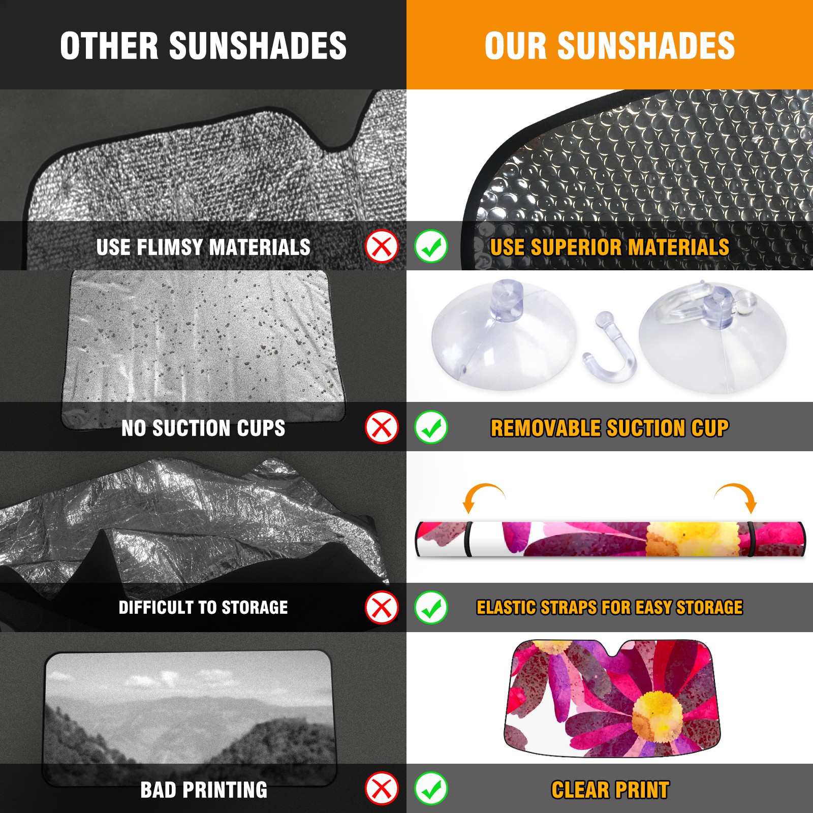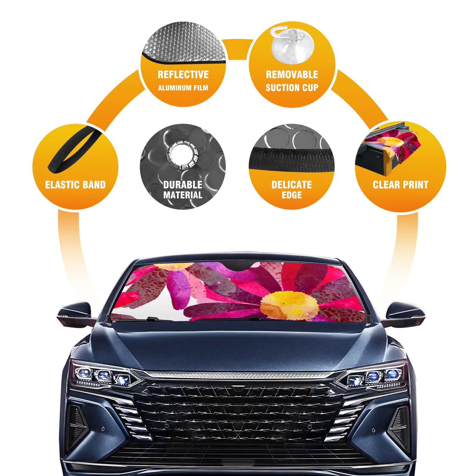 • Diameter /Size 63"L x 33.5"W Made from excellent materials which makes it sturdy and protects the car from the sun. Easy to use and pack. Makes the interior of the car cooler.You can easily stash the sunshade in the storage bag or store long term.It open and closes easy. Also the leather storage bag is durable and easy to put the umbrella back into.This windshield sunshade provides complete coverage and keeps your car interior cool under direct sun. It is easy to open and position under the windshield and around the rear-view mirror. Makes Your Car Easy To Identify, Perfect For Finding Your Car In Crowded Parking Lots And Garages.Great Choice: It Is A Great Gift For Dad, Boyfriend, Brother, Brother And Uncle, Friends, Classmates, Family And So On. Notice: Due To Difference Computer Monitors, The Color Maybe Slightly Different From Picture. As Different Measurement Methods, Measurement Data Will Float Within 2%.I Hope You Understand. If You Have Any Question About The Item Please Do Not Hesitate To Contact Us Immediately And We Will Give You A Satisfactory Reply Within 24 Hours.