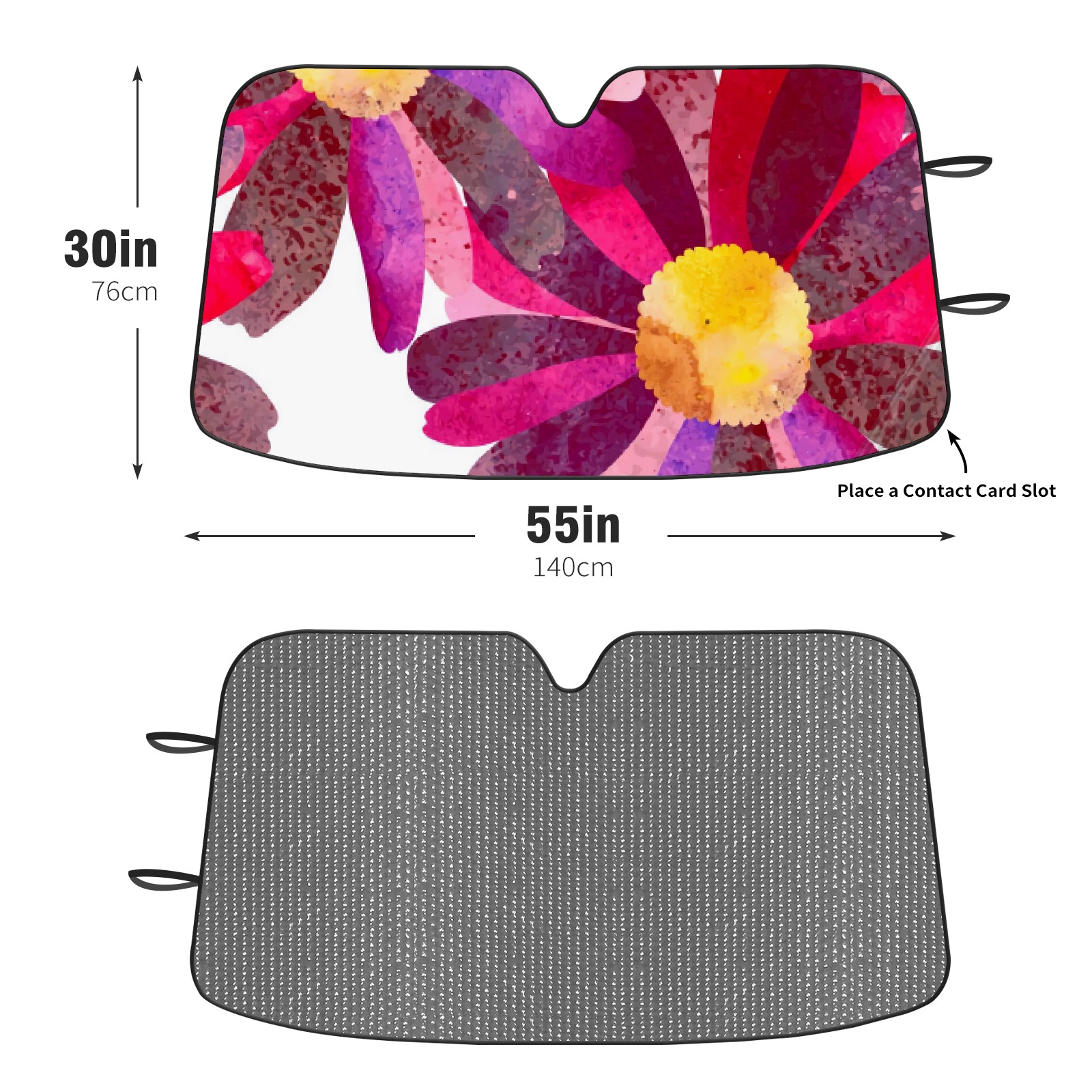 Diameter /Size 63"L x 33.5"W Made from excellent materials which makes it sturdy and protects the car from the sun. Easy to use and pack. Makes the interior of the car cooler.You can easily stash the sunshade in the storage bag or store long term.It open and closes easy. Also the leather storage bag is durable and easy to put the umbrella back into.This windshield sunshade provides complete coverage and keeps your car interior cool under direct sun. It is easy to open and position under the windshield and around the rear-view mirror. Makes Your Car Easy To Identify, Perfect For Finding Your Car In Crowded Parking Lots And Garages.Great Choice: It Is A Great Gift For Dad, Boyfriend, Brother, Brother And Uncle, Friends, Classmates, Family And So On. Notice: Due To Difference Computer Monitors, The Color Maybe Slightly Different From Picture. As Different Measurement Methods, Measurement Data Will Float Within 2%.I Hope You Understand. If You Have Any Question About The Item Please Do Not Hesitate To Contact Us Immediately And We Will Give You A Satisfactory Reply Within 24 Hours.