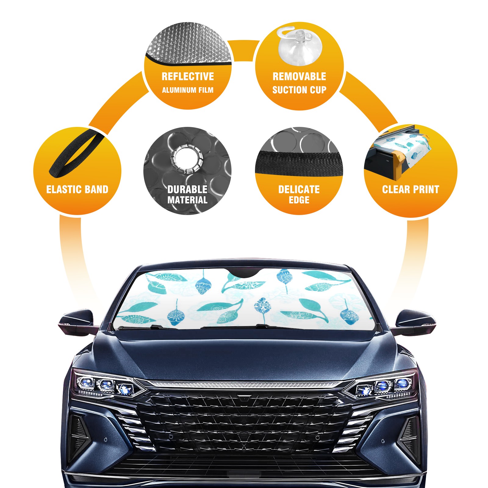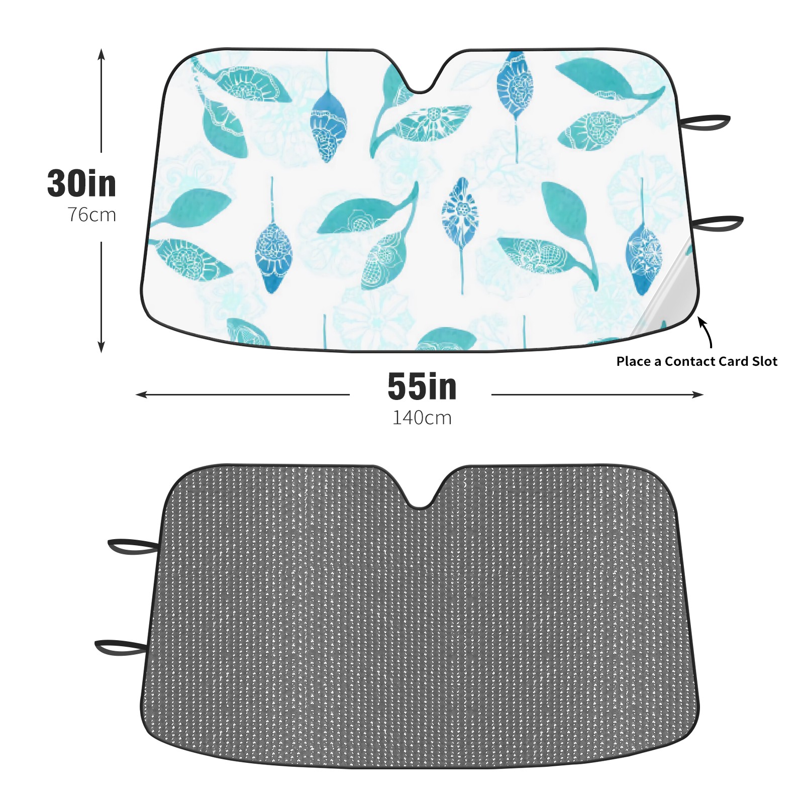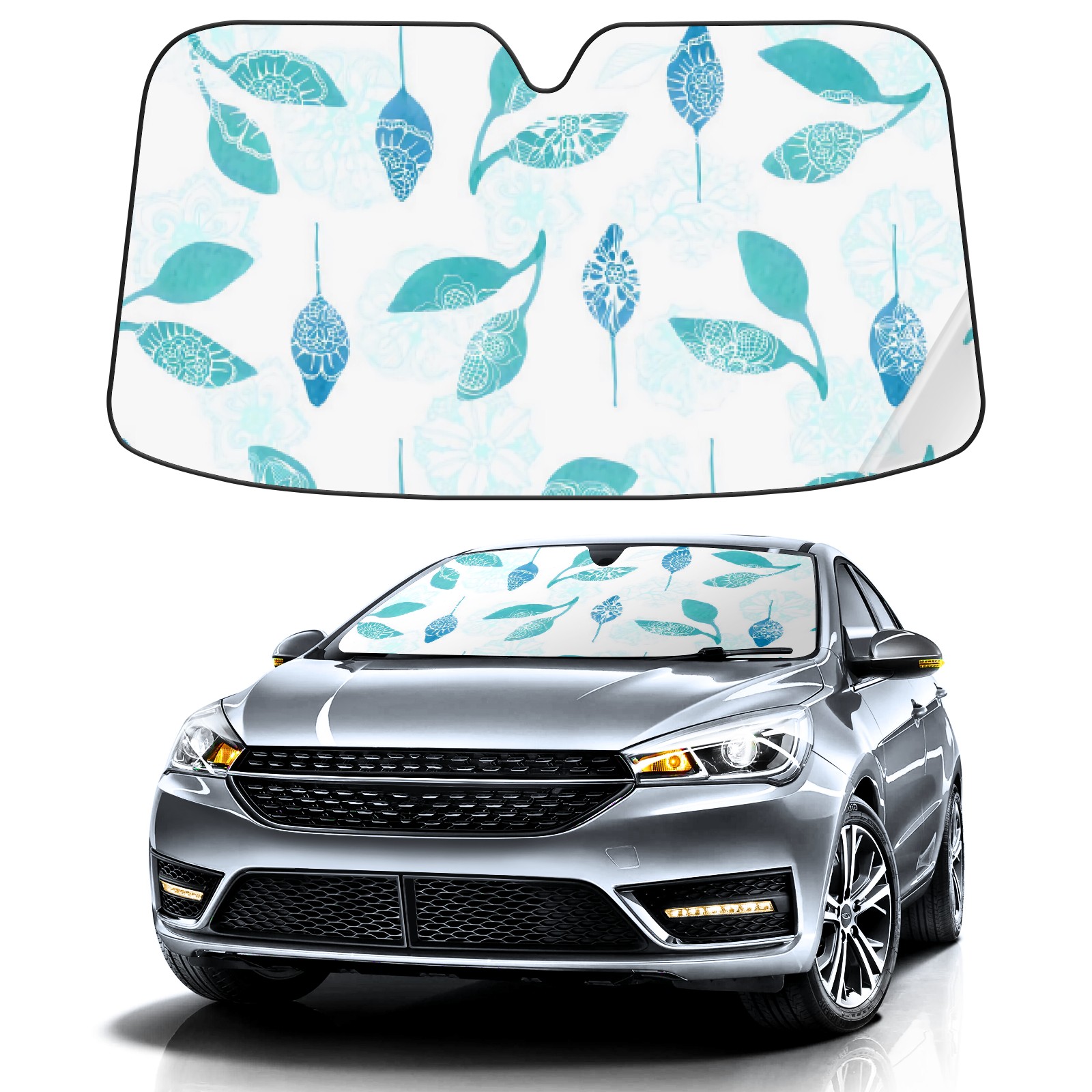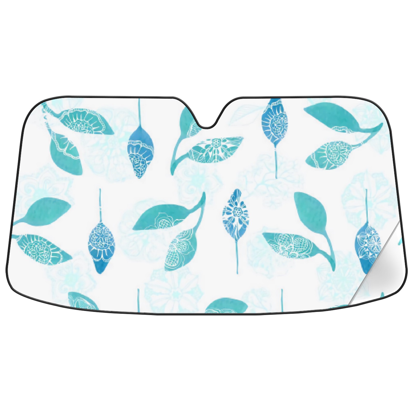 Car Windshield Sun Shade For Front Window Blue Art Leaf Foldable Vehicle Windshield Car Sun Visor Covers Automotive Window Protector Car Camping Privacy Sun Blocker