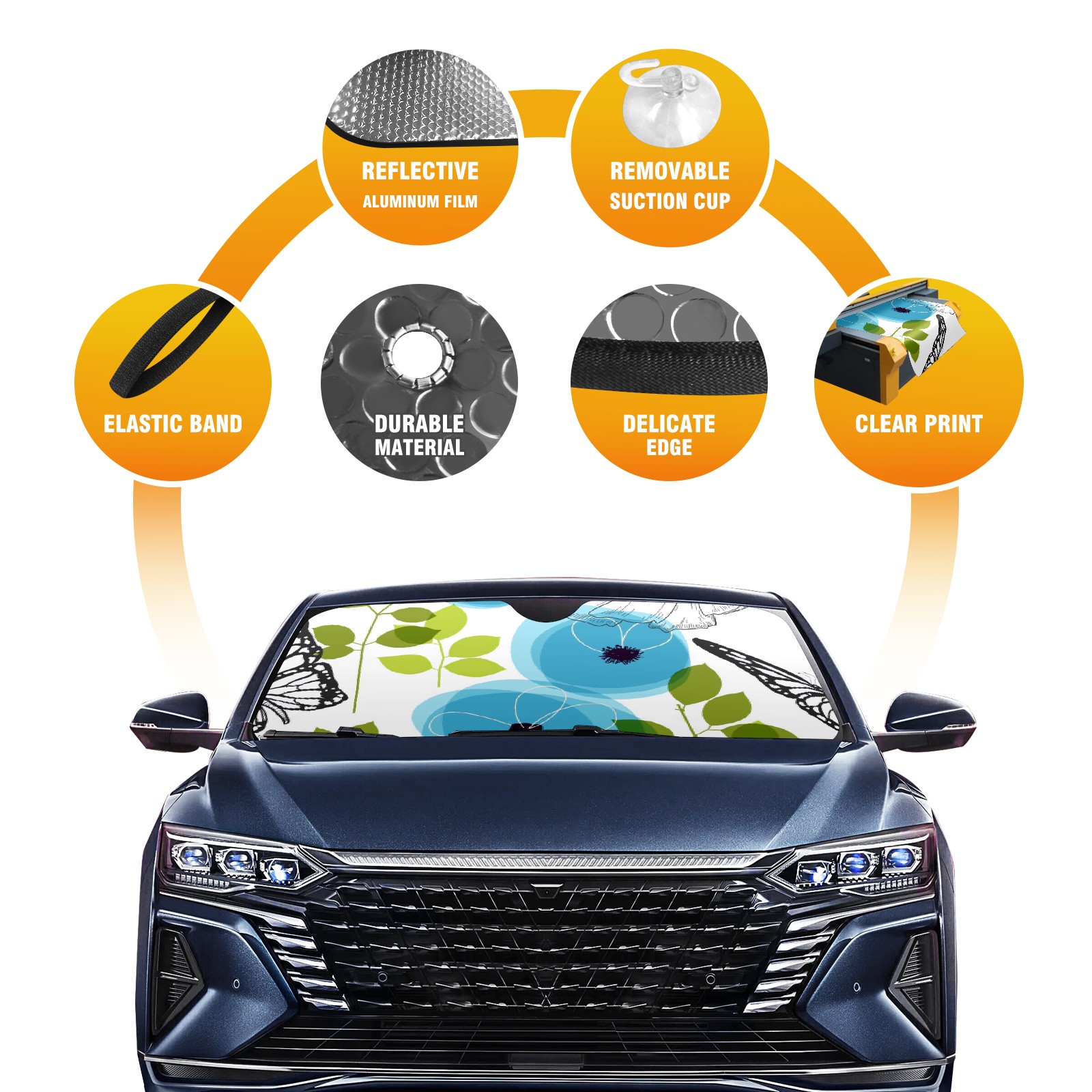 Car Windshield Sun Shade For Front Window Blue Art Drawing Foldable Vehicle Windshield Car Sun Visor Covers Automotive Window Protector Car Camping Privacy Sun Blocker