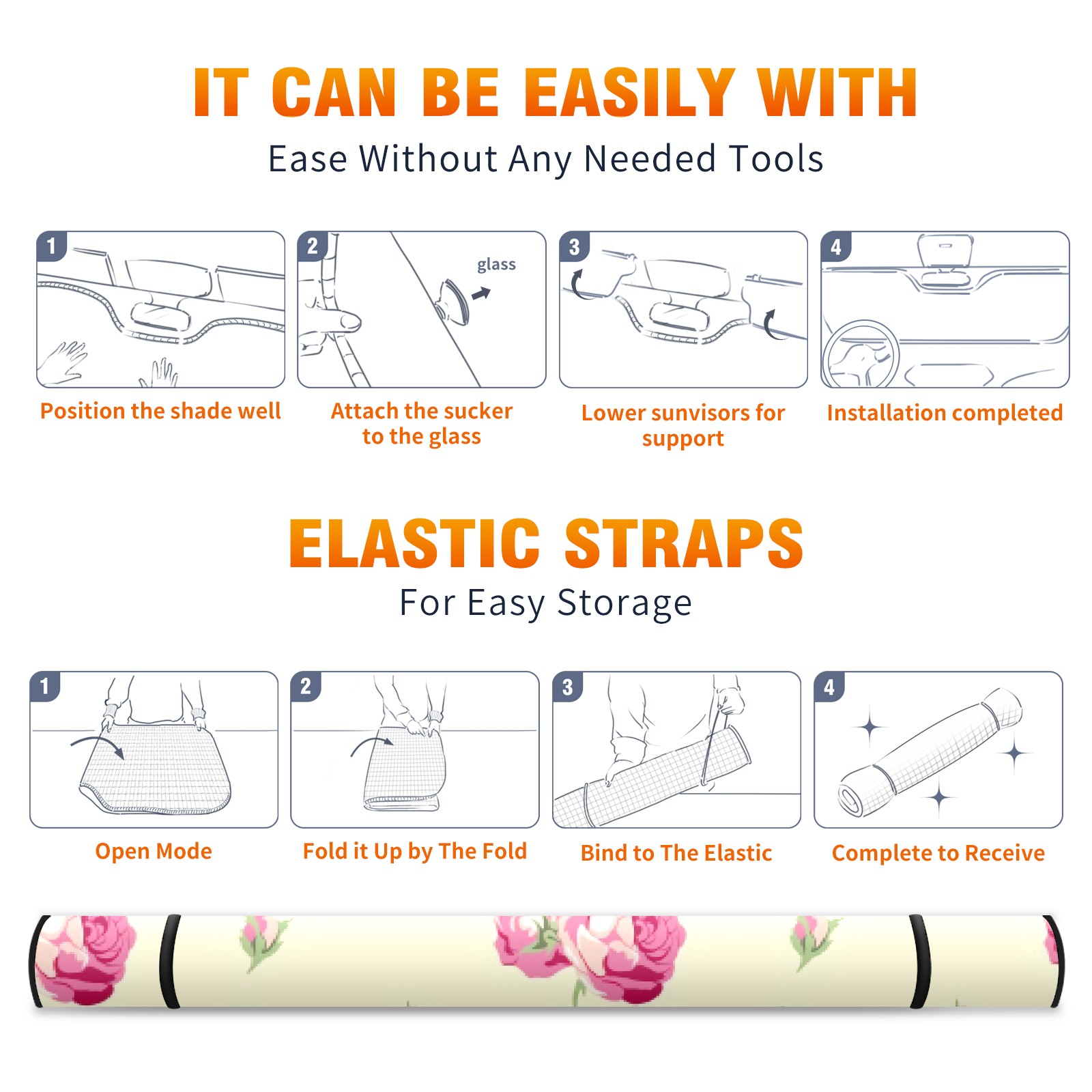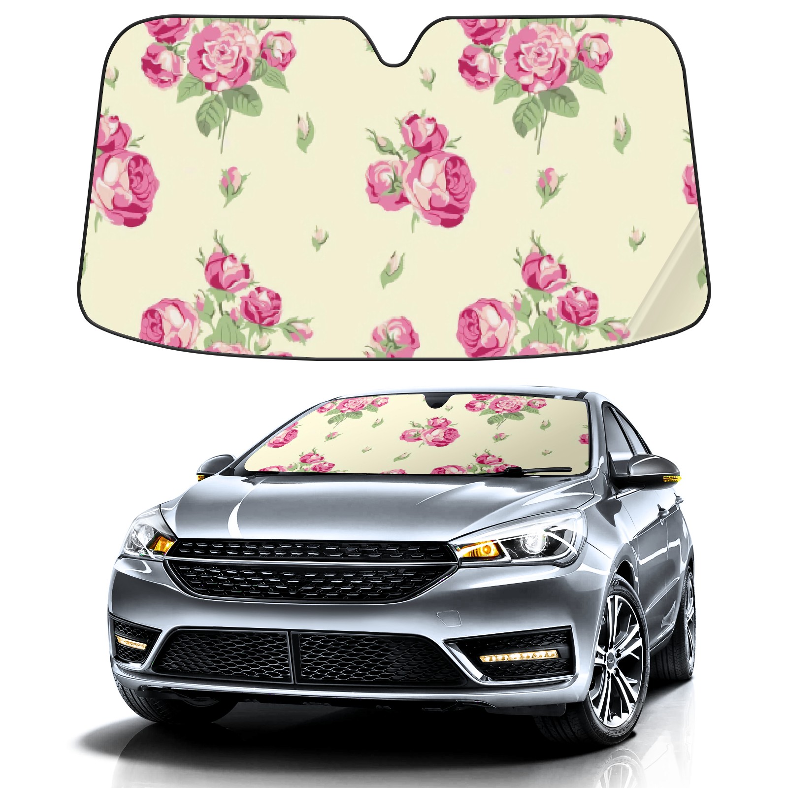 Car Windshield Sun Shade For Front Window Pink Roses On Beige Foldable Vehicle Windshield Car Sun Visor Covers Automotive Window Protector Car Camping Privacy Sun Blocker