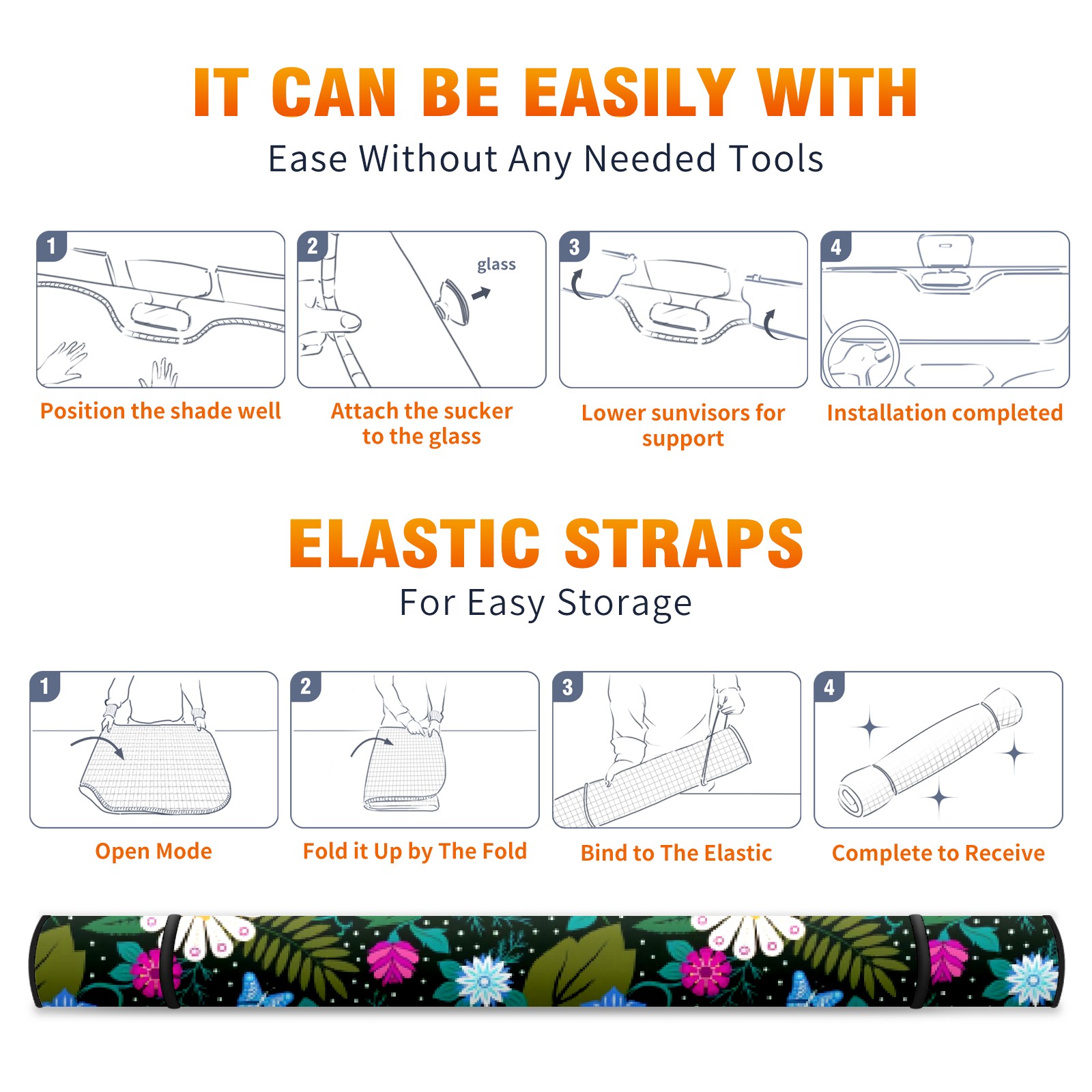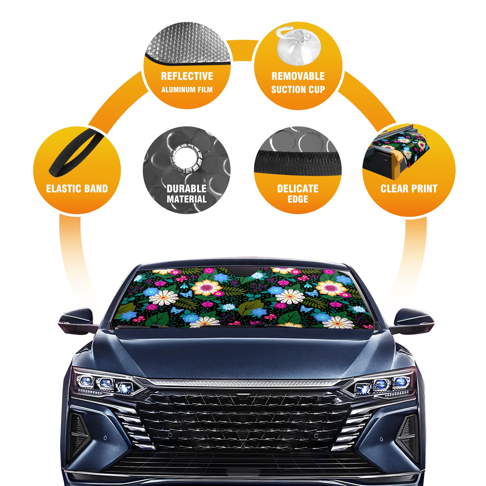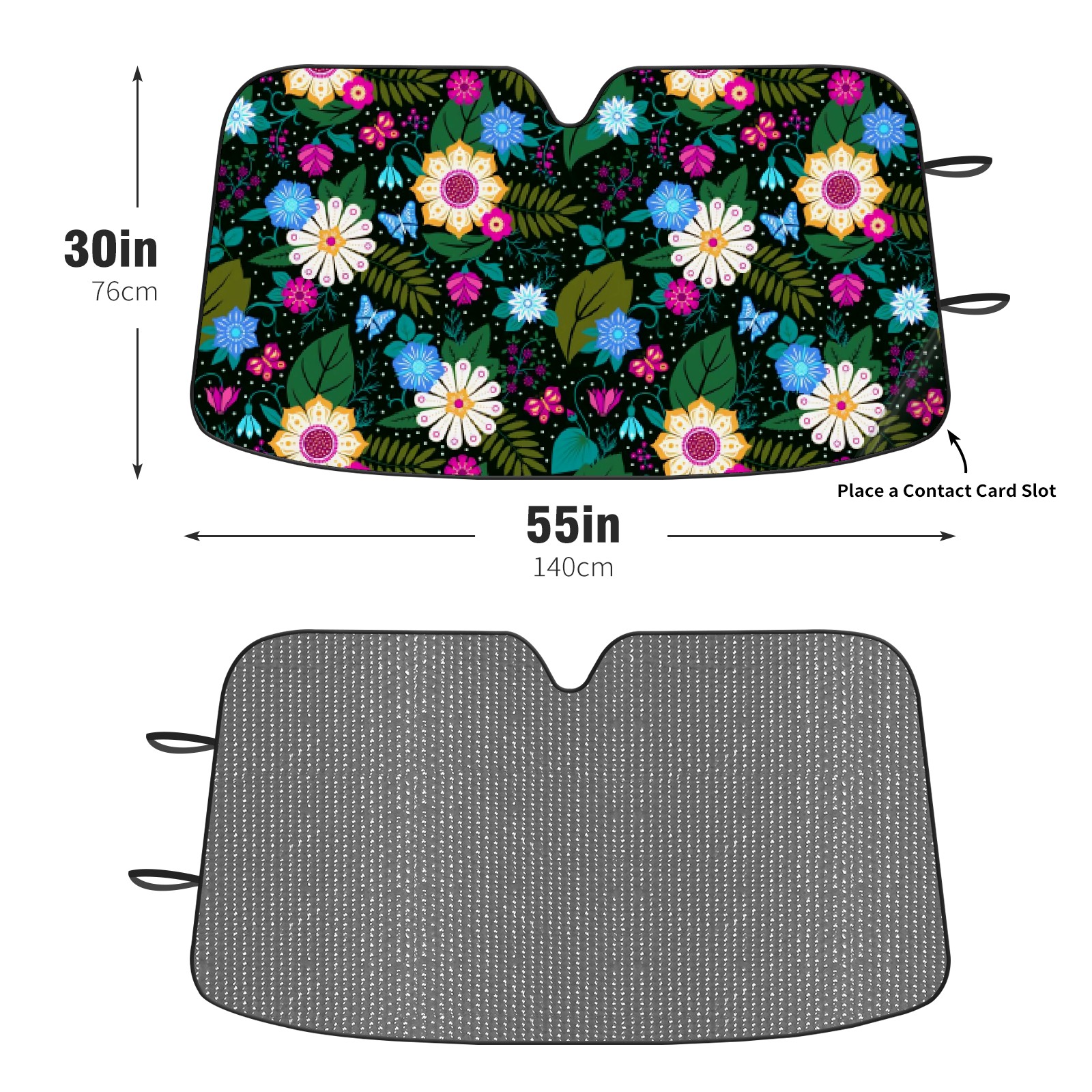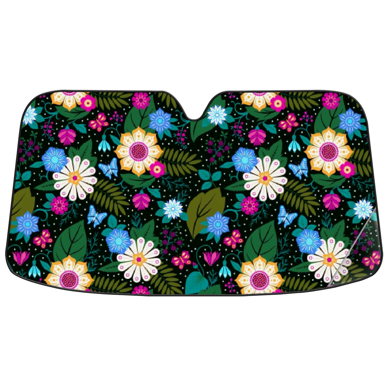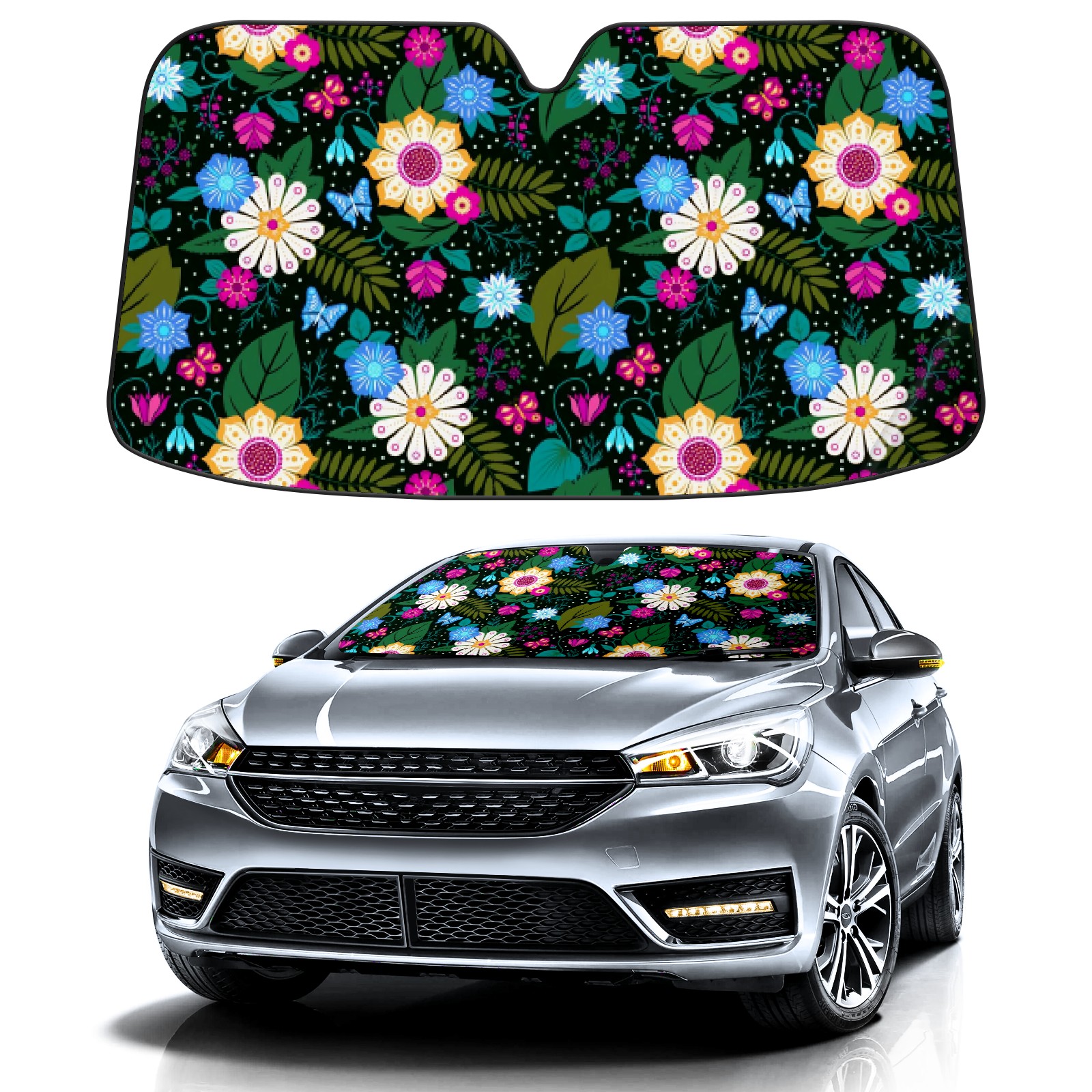 Car Windshield Sun Shade For Front Window Rustic Flowers On Black Foldable Vehicle Windshield Car Sun Visor Covers Automotive Window Protector Car Camping Privacy Sun Blocker