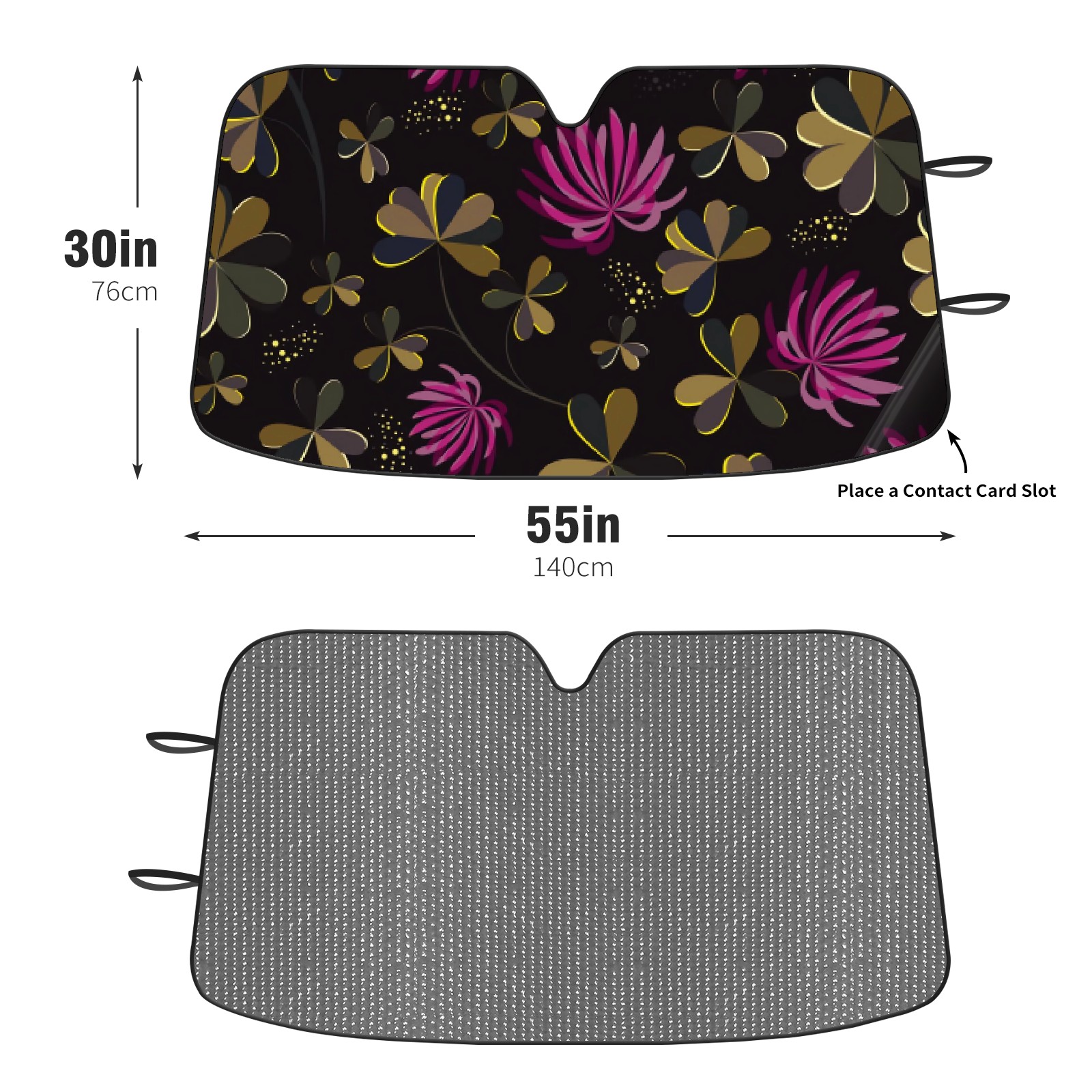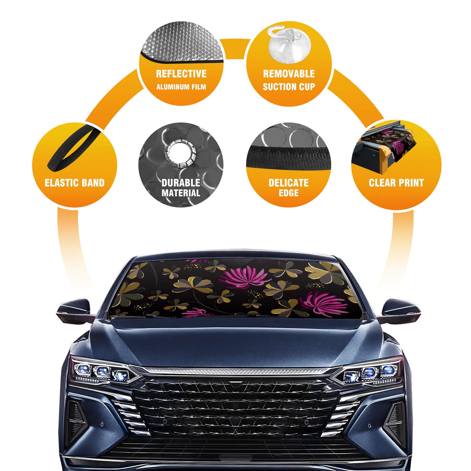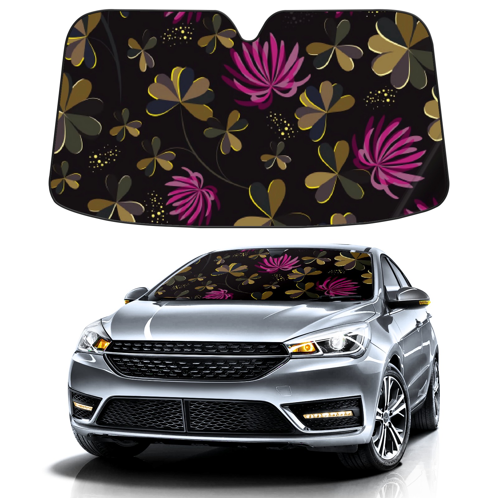 Car Windshield Sun Shade For Front Window Black With Purple Petals Foldable Vehicle Windshield Car Sun Visor Covers Automotive Window Protector Car Camping Privacy Sun Blocker