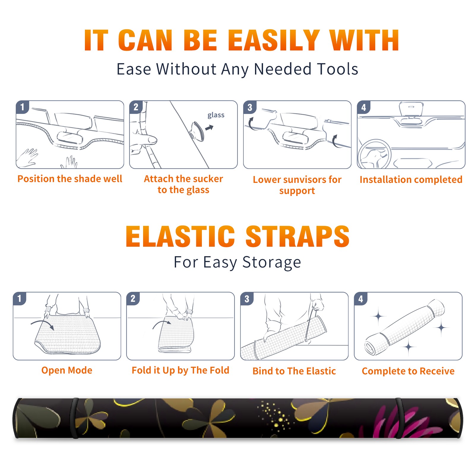 • Diameter /Size 63"L x 33.5"W Made from excellent materials which makes it sturdy and protects the car from the sun. Easy to use and pack. Makes the interior of the car cooler.You can easily stash the sunshade in the storage bag or store long term.It open and closes easy. Also the leather storage bag is durable and easy to put the umbrella back into.This windshield sunshade provides complete coverage and keeps your car interior cool under direct sun. It is easy to open and position under the windshield and around the rear-view mirror. Makes Your Car Easy To Identify, Perfect For Finding Your Car In Crowded Parking Lots And Garages.Great Choice: It Is A Great Gift For Dad, Boyfriend, Brother, Brother And Uncle, Friends, Classmates, Family And So On. Notice: Due To Difference Computer Monitors, The Color Maybe Slightly Different From Picture. As Different Measurement Methods, Measurement Data Will Float Within 2%.I Hope You Understand. If You Have Any Question About The Item Please Do Not Hesitate To Contact Us Immediately And We Will Give You A Satisfactory Reply Within 24 Hours.