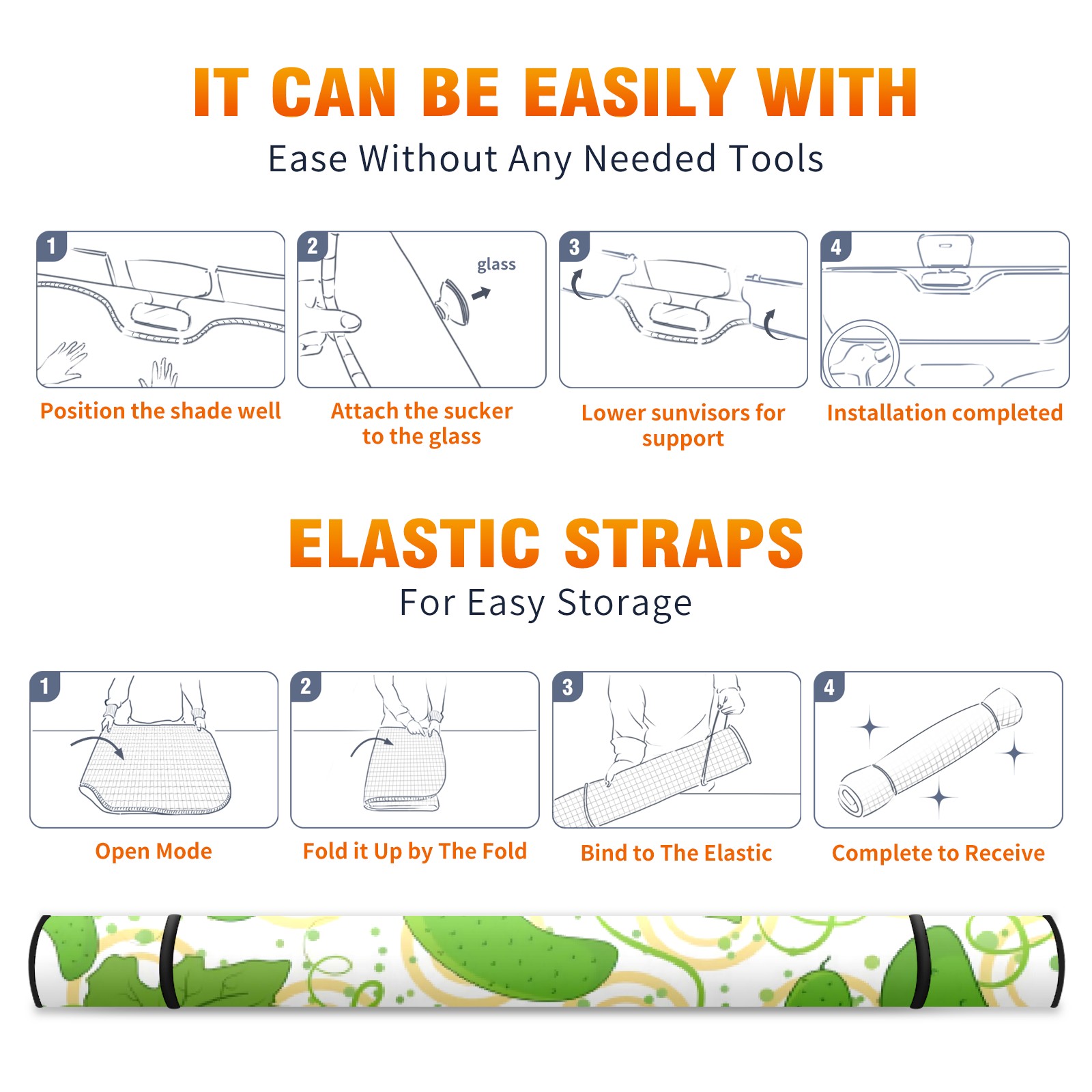 • Diameter /Size 63"L x 33.5"W Made from excellent materials which makes it sturdy and protects the car from the sun. Easy to use and pack. Makes the interior of the car cooler.You can easily stash the sunshade in the storage bag or store long term.It open and closes easy. Also the leather storage bag is durable and easy to put the umbrella back into.This windshield sunshade provides complete coverage and keeps your car interior cool under direct sun. It is easy to open and position under the windshield and around the rear-view mirror. Makes Your Car Easy To Identify, Perfect For Finding Your Car In Crowded Parking Lots And Garages.Great Choice: It Is A Great Gift For Dad, Boyfriend, Brother, Brother And Uncle, Friends, Classmates, Family And So On. Notice: Due To Difference Computer Monitors, The Color Maybe Slightly Different From Picture. As Different Measurement Methods, Measurement Data Will Float Within 2%.I Hope You Understand. If You Have Any Question About The Item Please Do Not Hesitate To Contact Us Immediately And We Will Give You A Satisfactory Reply Within 24 Hours.