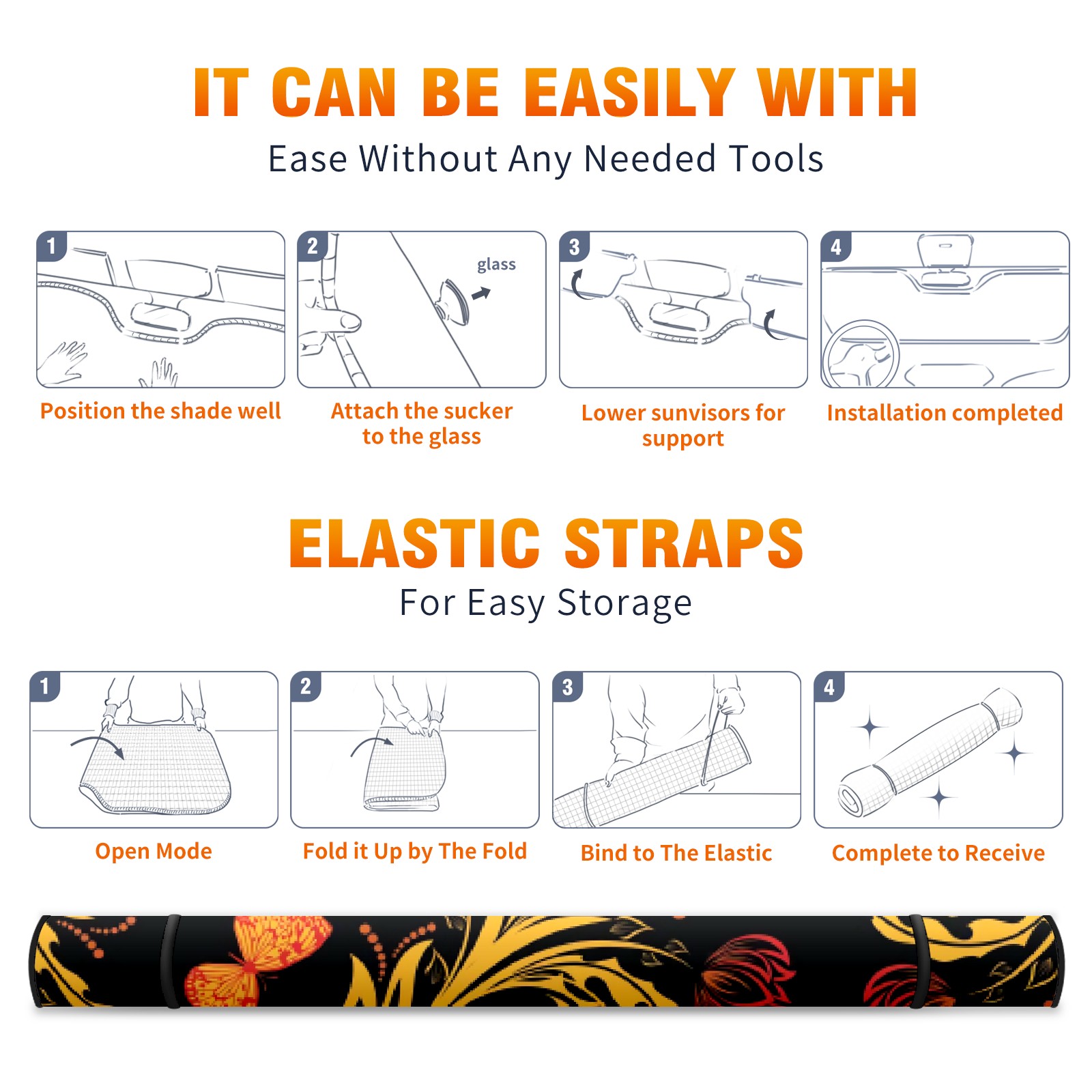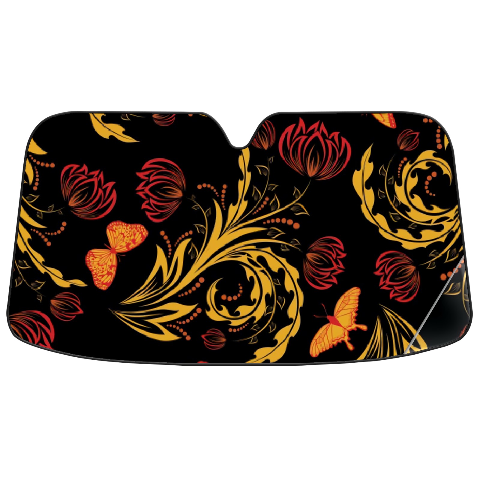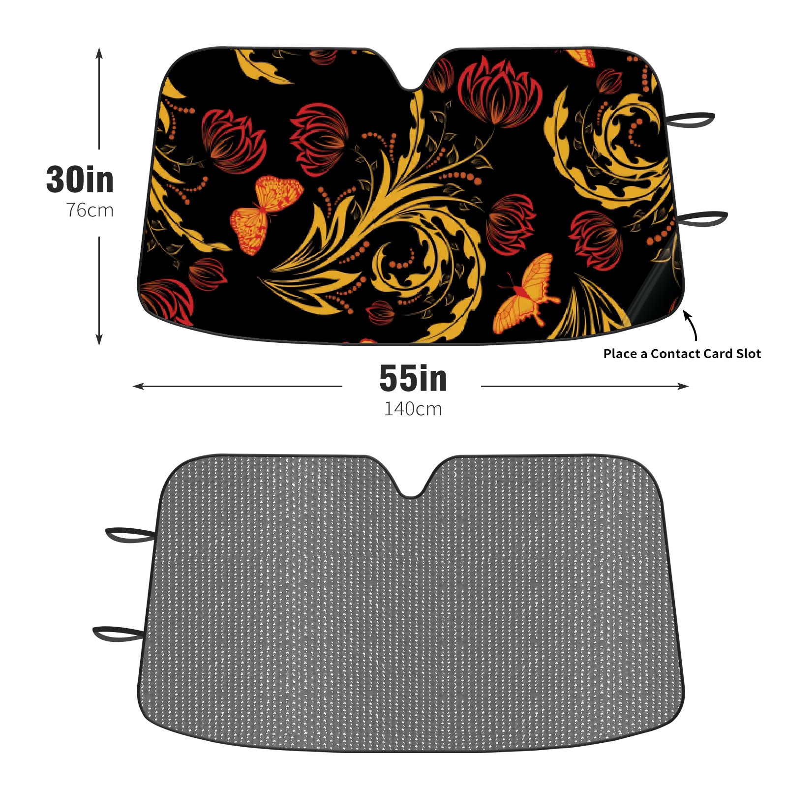 Car Windshield Sun Shade For Front Window Yellow Plants On Black Foldable Vehicle Windshield Car Sun Visor Covers Automotive Window Protector Car Camping Privacy Sun Blocker