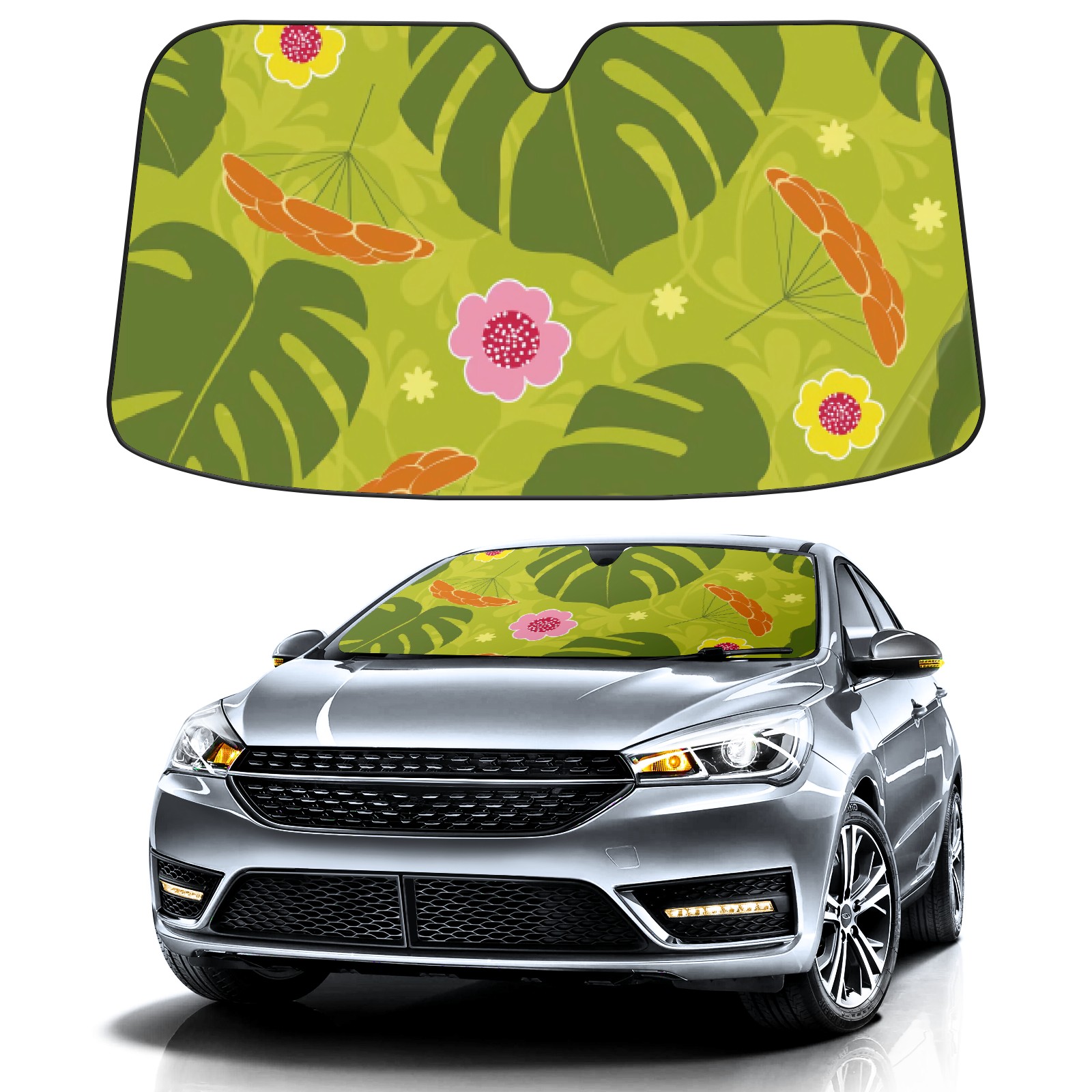 Car Windshield Sun Shade For Front Window Turtleback Leaf In Green Foldable Vehicle Windshield Car Sun Visor Covers Automotive Window Protector Car Camping Privacy Sun Blocker
