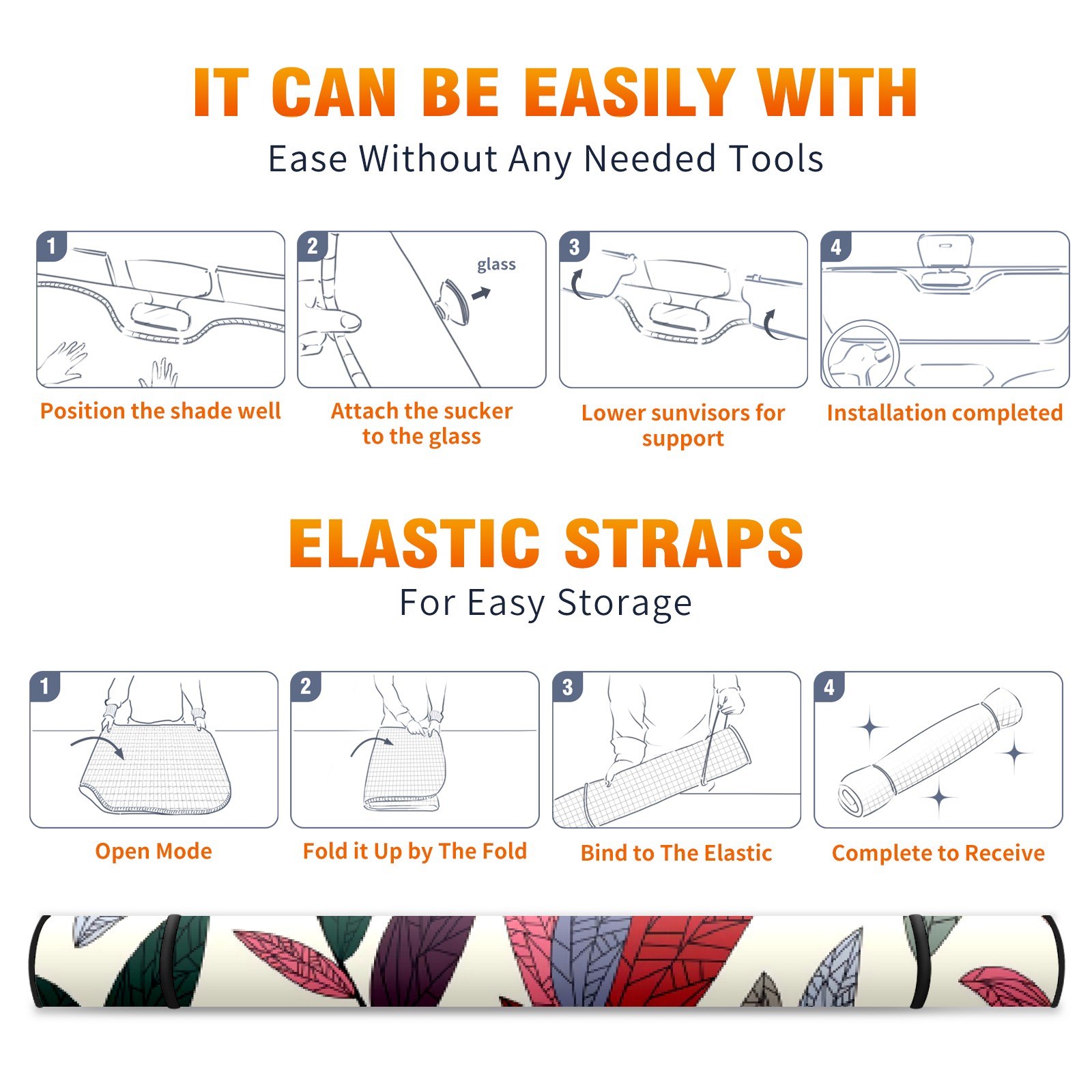 • Diameter /Size 63"L x 33.5"W Made from excellent materials which makes it sturdy and protects the car from the sun. Easy to use and pack. Makes the interior of the car cooler.You can easily stash the sunshade in the storage bag or store long term.It open and closes easy. Also the leather storage bag is durable and easy to put the umbrella back into.This windshield sunshade provides complete coverage and keeps your car interior cool under direct sun. It is easy to open and position under the windshield and around the rear-view mirror. Makes Your Car Easy To Identify, Perfect For Finding Your Car In Crowded Parking Lots And Garages.Great Choice: It Is A Great Gift For Dad, Boyfriend, Brother, Brother And Uncle, Friends, Classmates, Family And So On. Notice: Due To Difference Computer Monitors, The Color Maybe Slightly Different From Picture. As Different Measurement Methods, Measurement Data Will Float Within 2%.I Hope You Understand. If You Have Any Question About The Item Please Do Not Hesitate To Contact Us Immediately And We Will Give You A Satisfactory Reply Within 24 Hours.