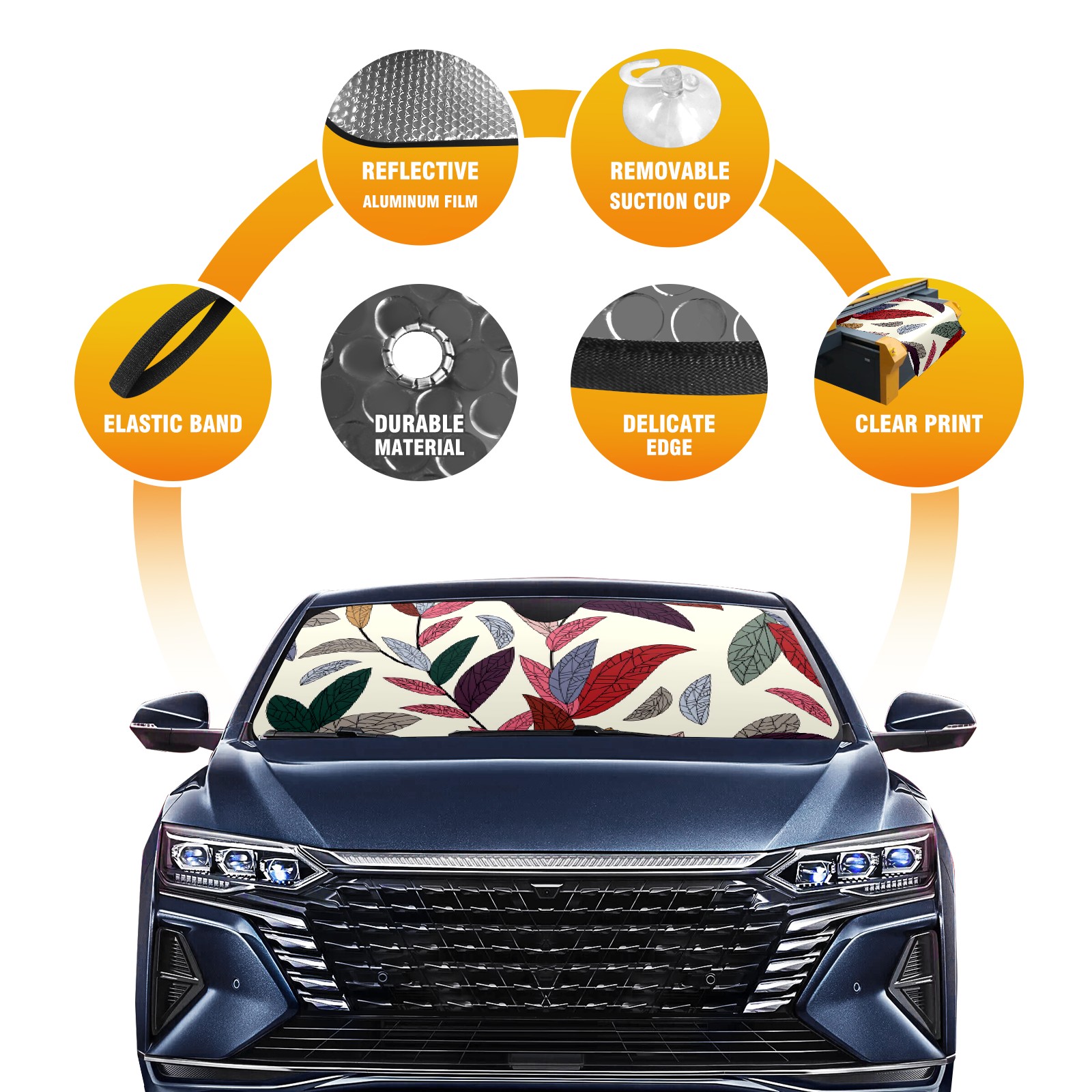 Car Windshield Sun Shade For Front Window Colorful Geometric Leaves Foldable Vehicle Windshield Car Sun Visor Covers Automotive Window Protector Car Camping Privacy Sun Blocker