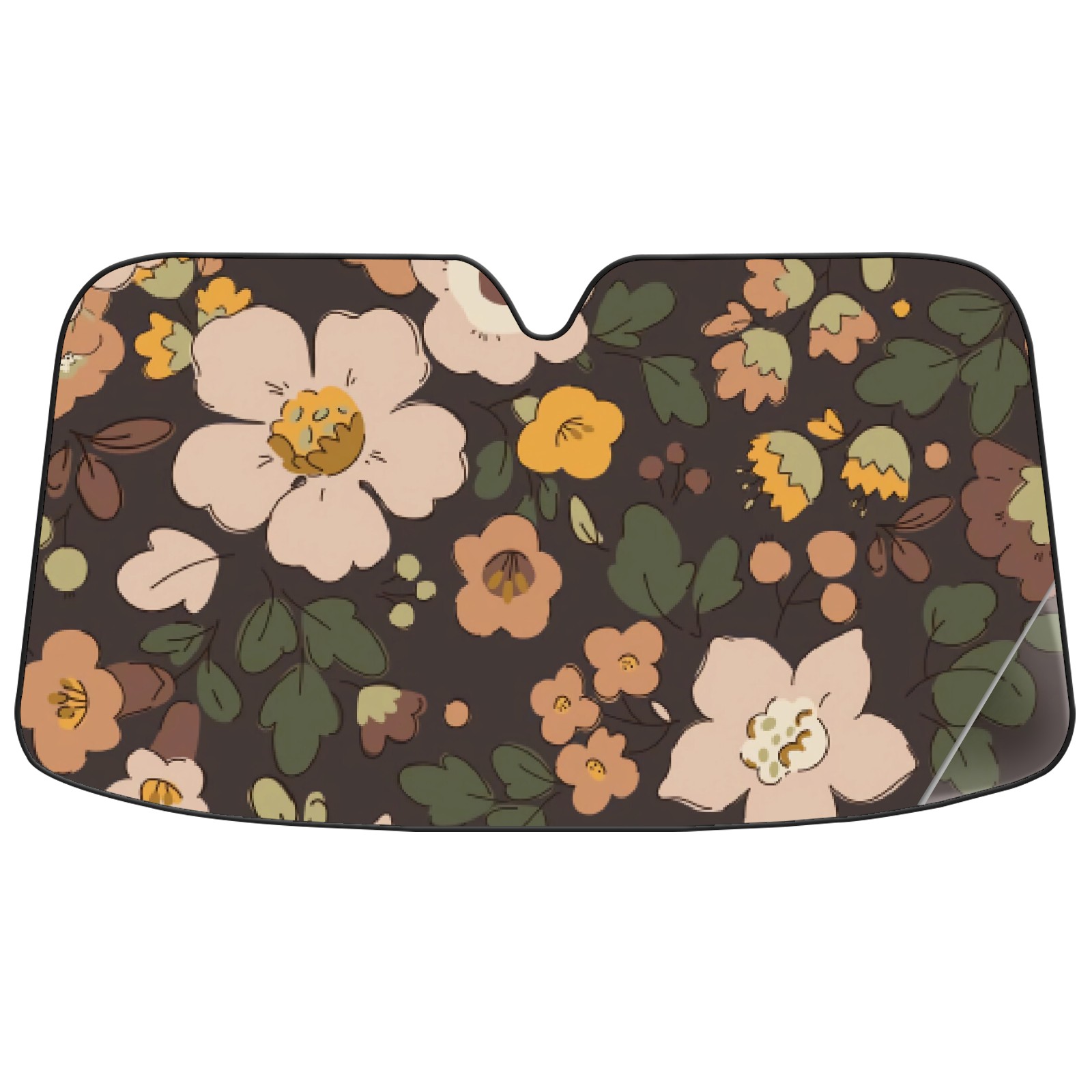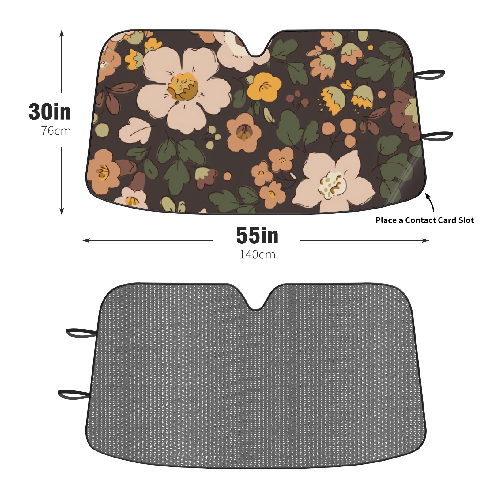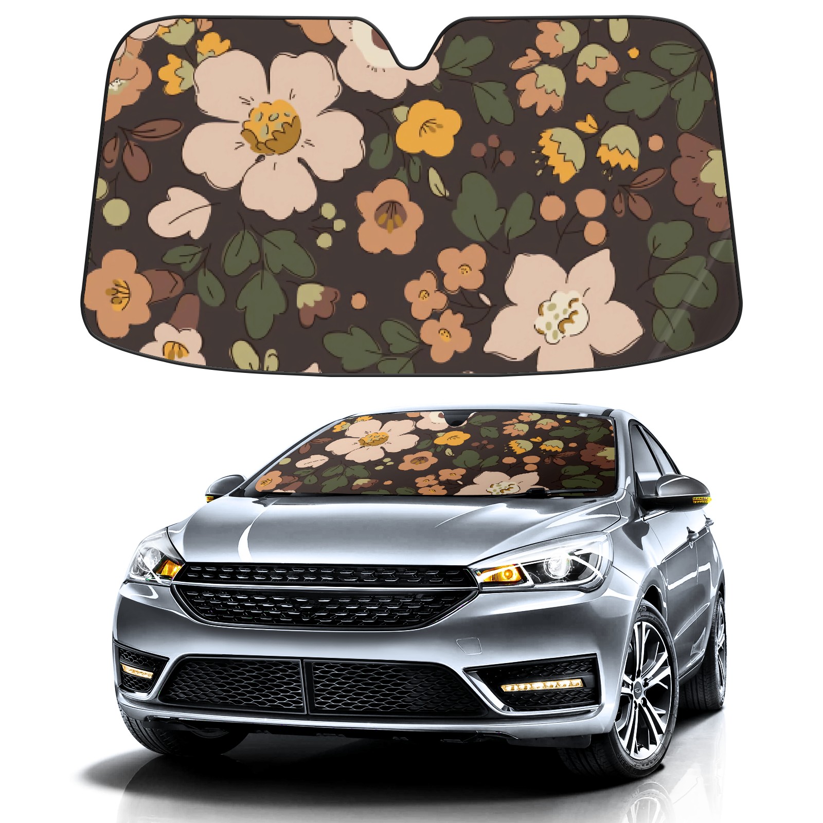 Car Windshield Sun Shade For Front Window Gray With Light Flowers Foldable Vehicle Windshield Car Sun Visor Covers Automotive Window Protector Car Camping Privacy Sun Blocker