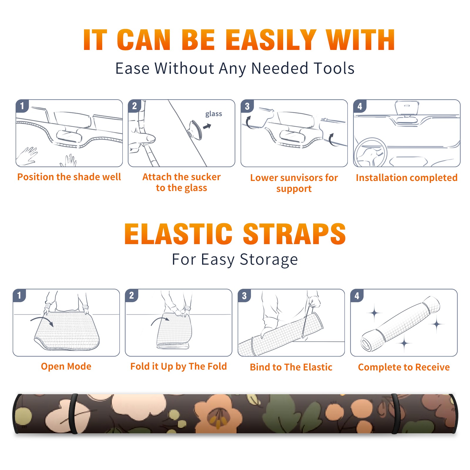 • Diameter /Size 63"L x 33.5"W Made from excellent materials which makes it sturdy and protects the car from the sun. Easy to use and pack. Makes the interior of the car cooler.You can easily stash the sunshade in the storage bag or store long term.It open and closes easy. Also the leather storage bag is durable and easy to put the umbrella back into.This windshield sunshade provides complete coverage and keeps your car interior cool under direct sun. It is easy to open and position under the windshield and around the rear-view mirror. Makes Your Car Easy To Identify, Perfect For Finding Your Car In Crowded Parking Lots And Garages.Great Choice: It Is A Great Gift For Dad, Boyfriend, Brother, Brother And Uncle, Friends, Classmates, Family And So On. Notice: Due To Difference Computer Monitors, The Color Maybe Slightly Different From Picture. As Different Measurement Methods, Measurement Data Will Float Within 2%.I Hope You Understand. If You Have Any Question About The Item Please Do Not Hesitate To Contact Us Immediately And We Will Give You A Satisfactory Reply Within 24 Hours.