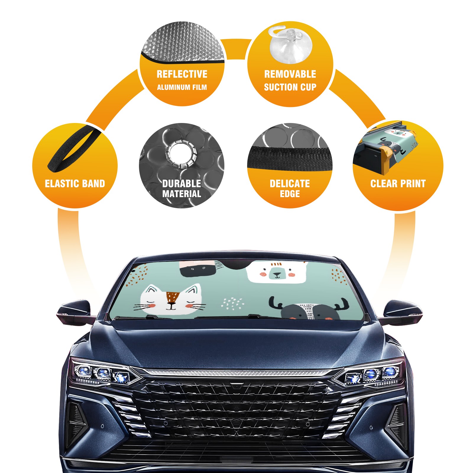 • Diameter /Size 63"L x 33.5"W Made from excellent materials which makes it sturdy and protects the car from the sun. Easy to use and pack. Makes the interior of the car cooler.You can easily stash the sunshade in the storage bag or store long term.It open and closes easy. Also the leather storage bag is durable and easy to put the umbrella back into.This windshield sunshade provides complete coverage and keeps your car interior cool under direct sun. It is easy to open and position under the windshield and around the rear-view mirror. Makes Your Car Easy To Identify, Perfect For Finding Your Car In Crowded Parking Lots And Garages.Great Choice: It Is A Great Gift For Dad, Boyfriend, Brother, Brother And Uncle, Friends, Classmates, Family And So On. Notice: Due To Difference Computer Monitors, The Color Maybe Slightly Different From Picture. As Different Measurement Methods, Measurement Data Will Float Within 2%.I Hope You Understand. If You Have Any Question About The Item Please Do Not Hesitate To Contact Us Immediately And We Will Give You A Satisfactory Reply Within 24 Hours.