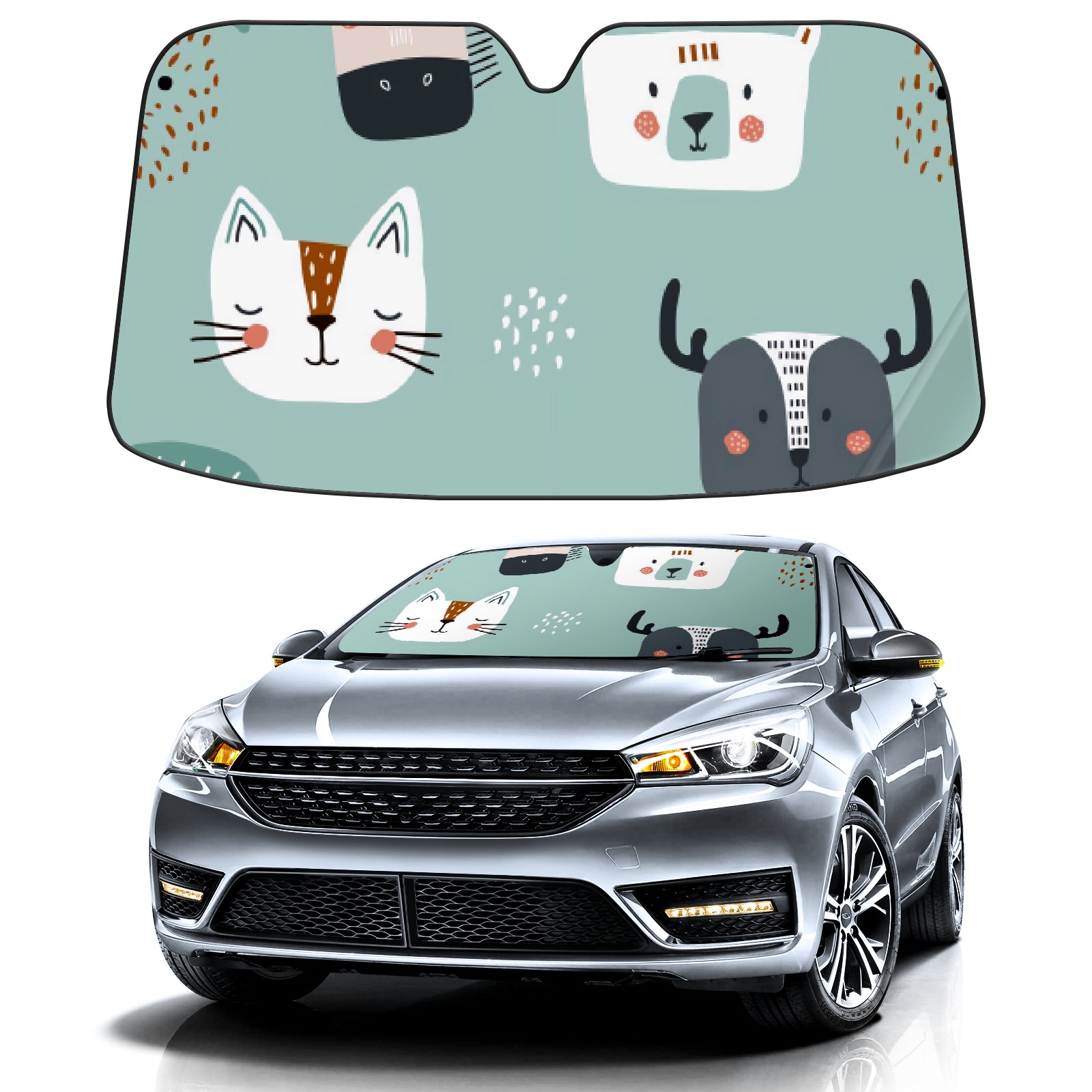 Car Windshield Sun Shade For Front Window Cartoon Animals In Green Foldable Vehicle Windshield Car Sun Visor Covers Automotive Window Protector Car Camping Privacy Sun Blocker