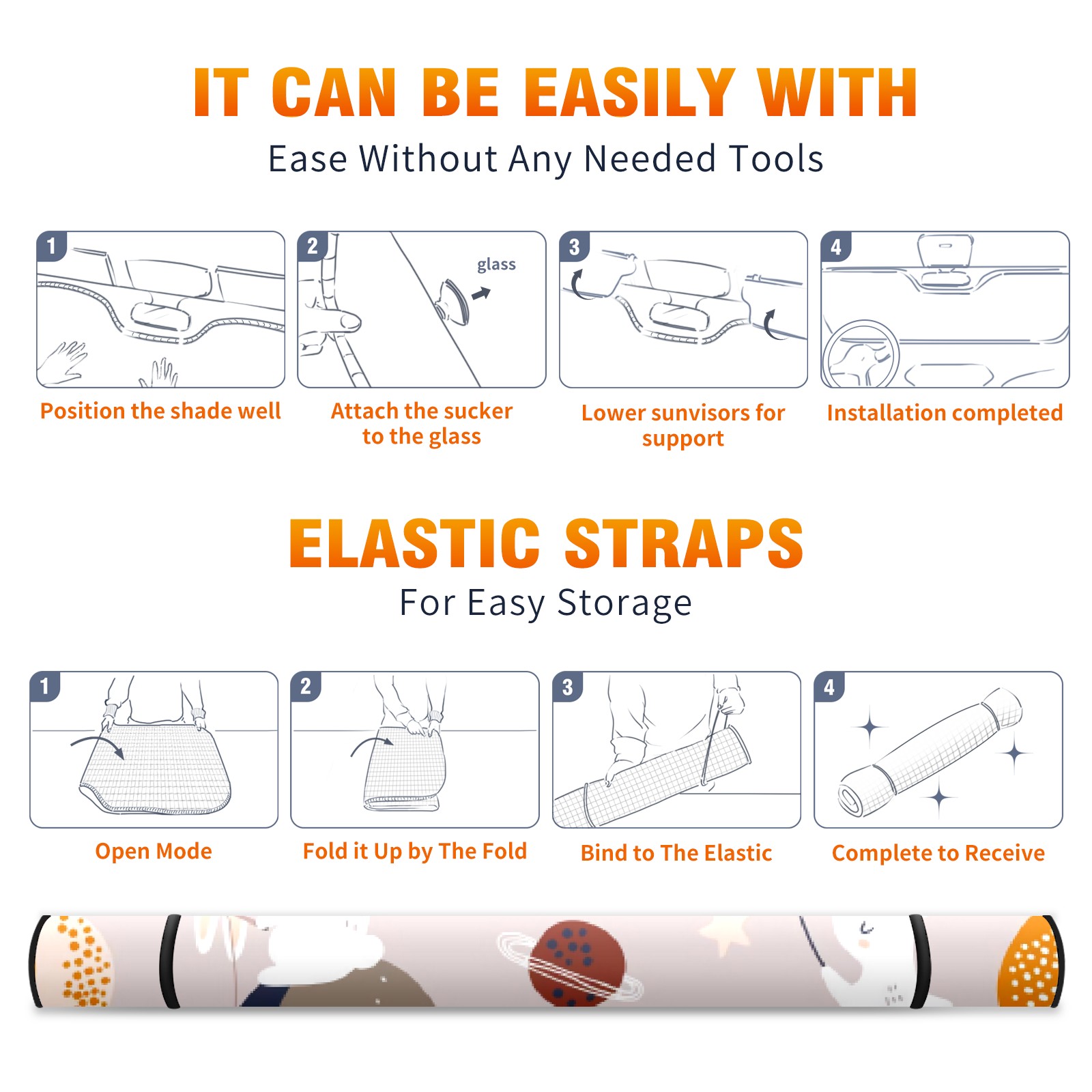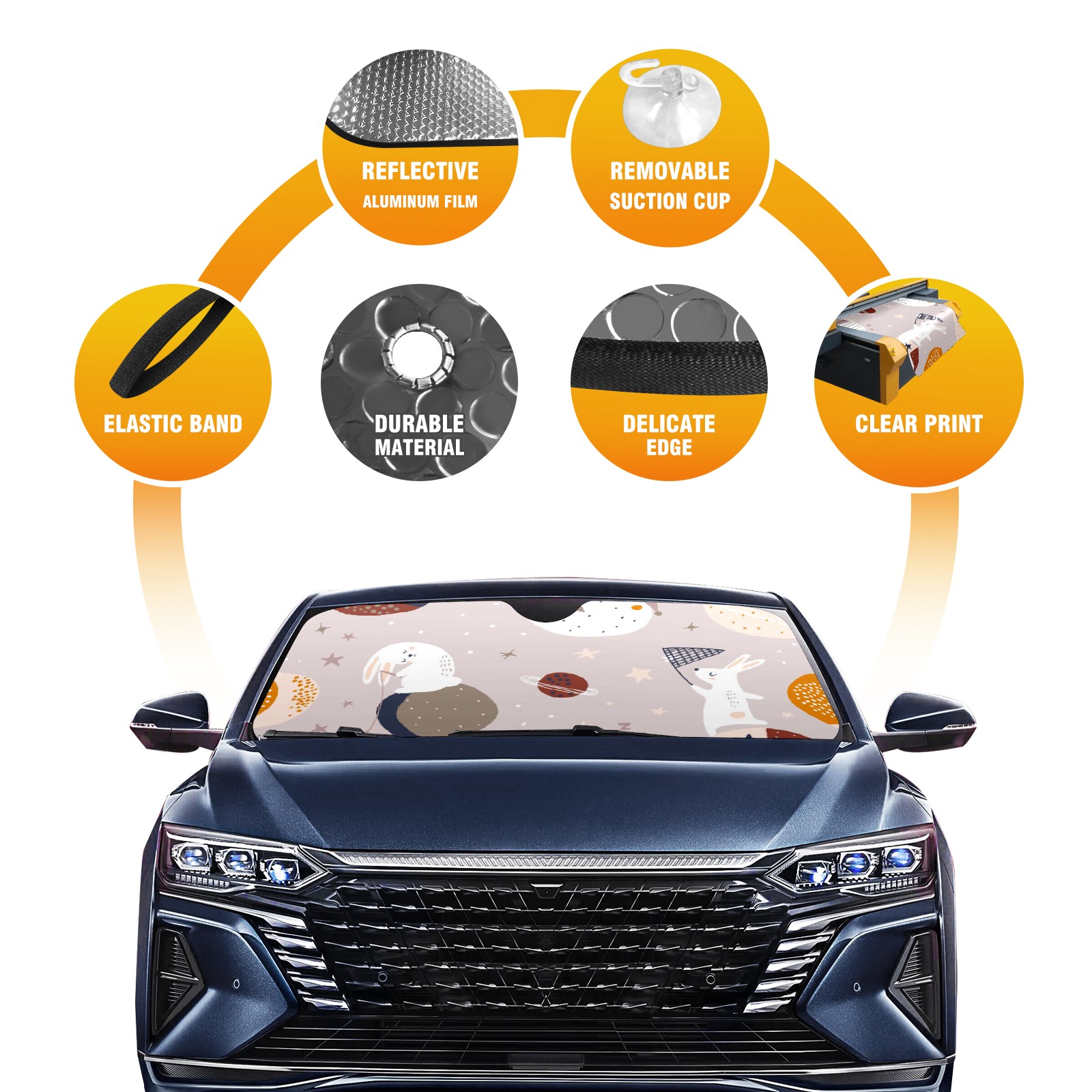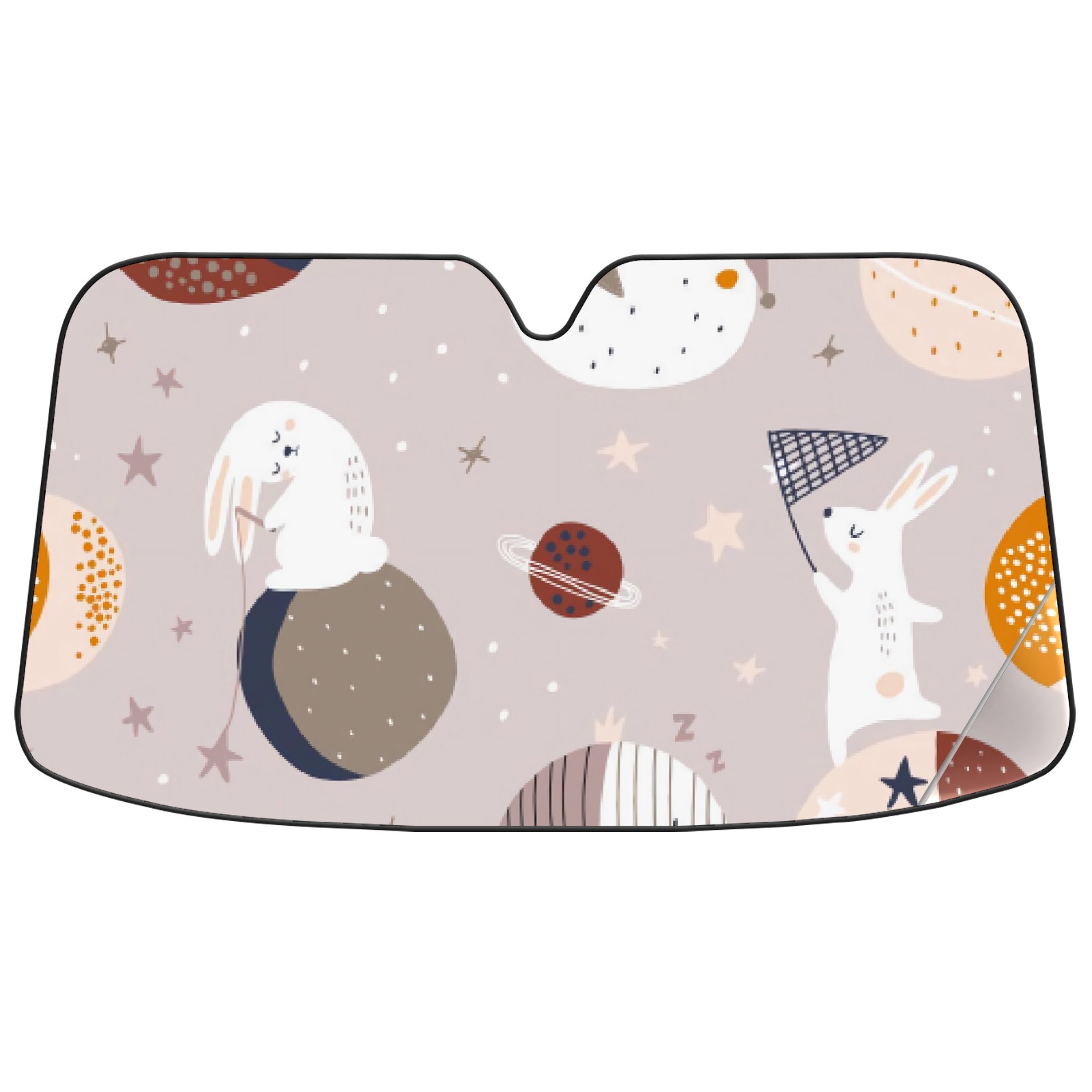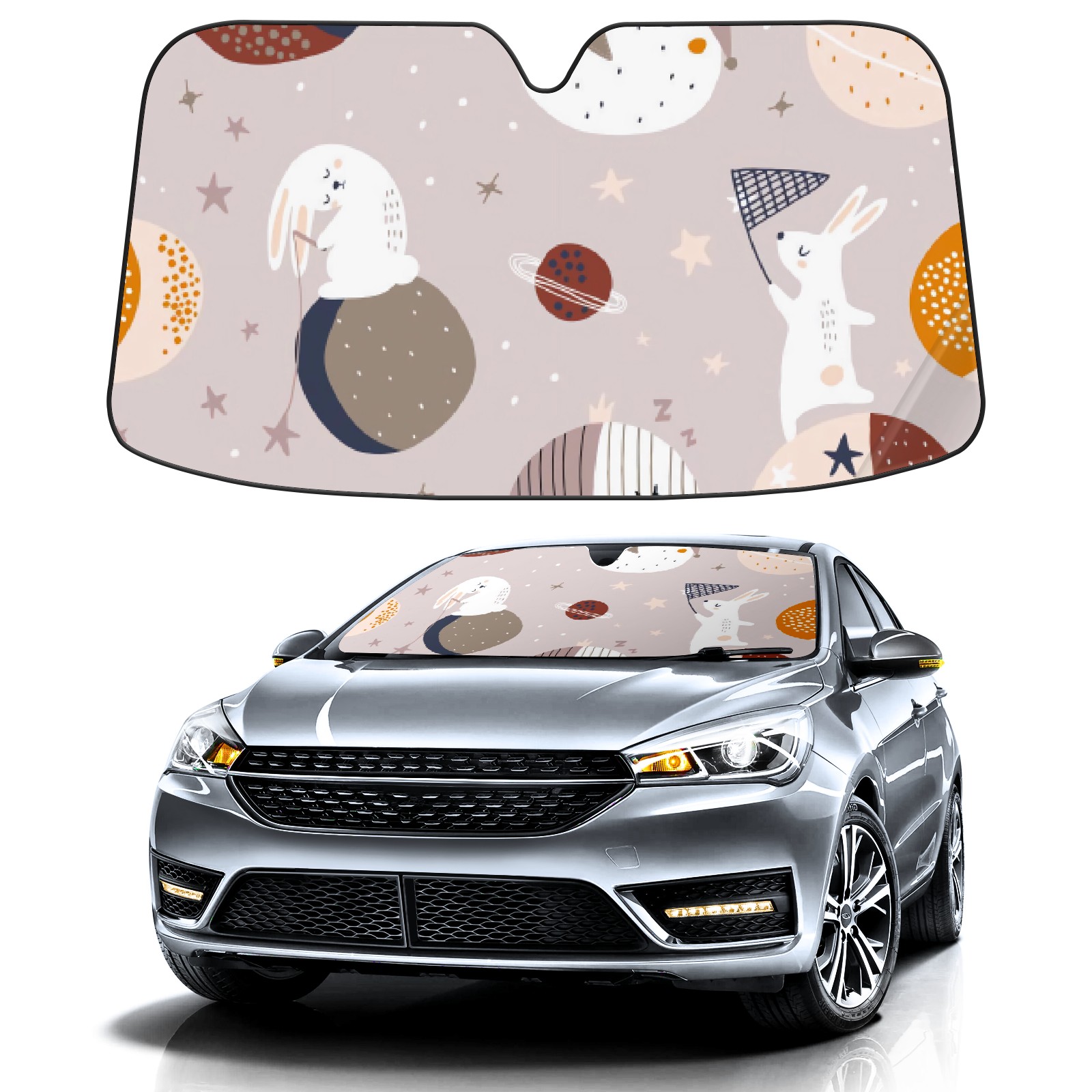 Car Windshield Sun Shade For Front Window Cartoon Planet Rabbit Foldable Vehicle Windshield Car Sun Visor Covers Automotive Window Protector Car Camping Privacy Sun Blocker