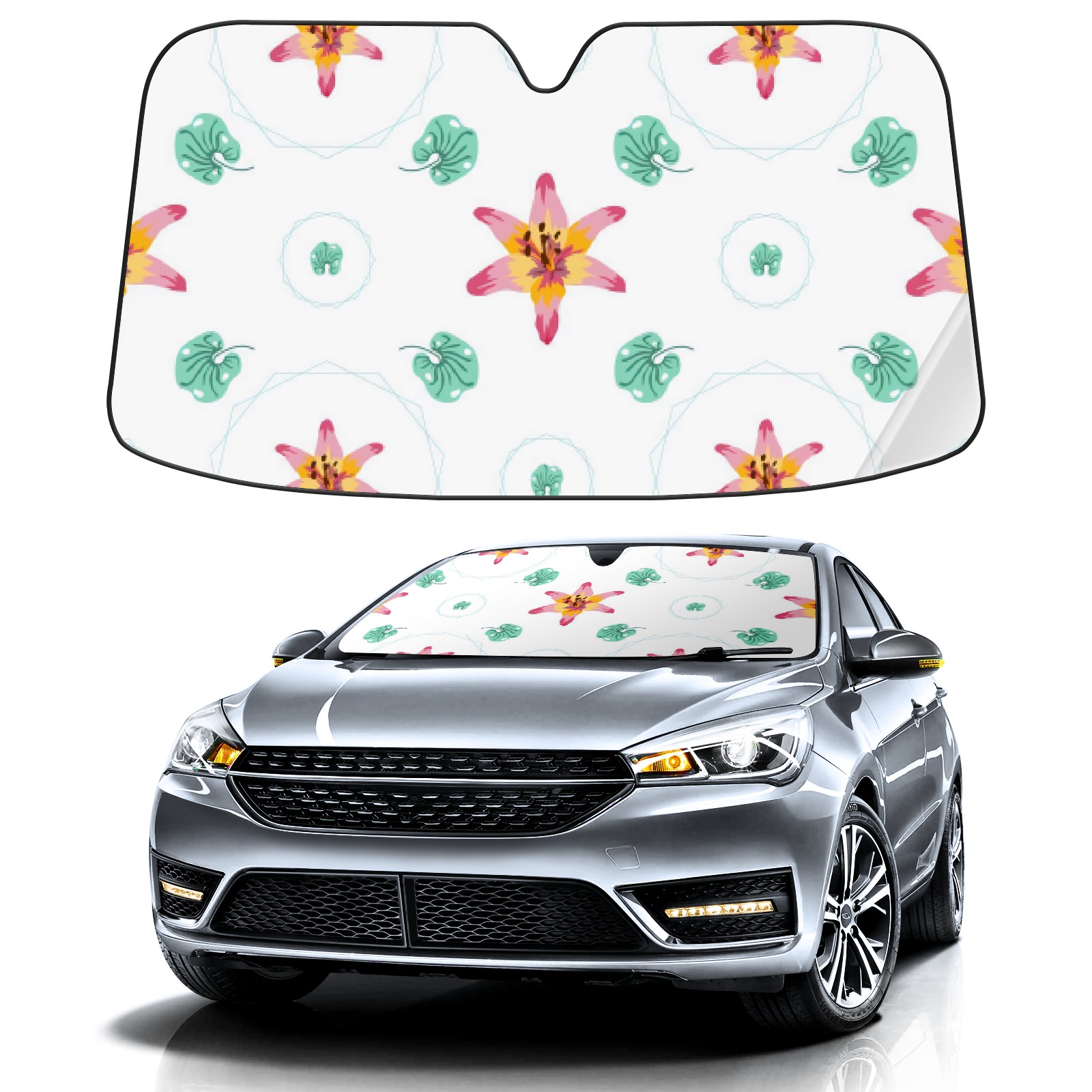 Car Windshield Sun Shade For Front Window Geometric Lilies On White Foldable Vehicle Windshield Car Sun Visor Covers Automotive Window Protector Car Camping Privacy Sun Blocker