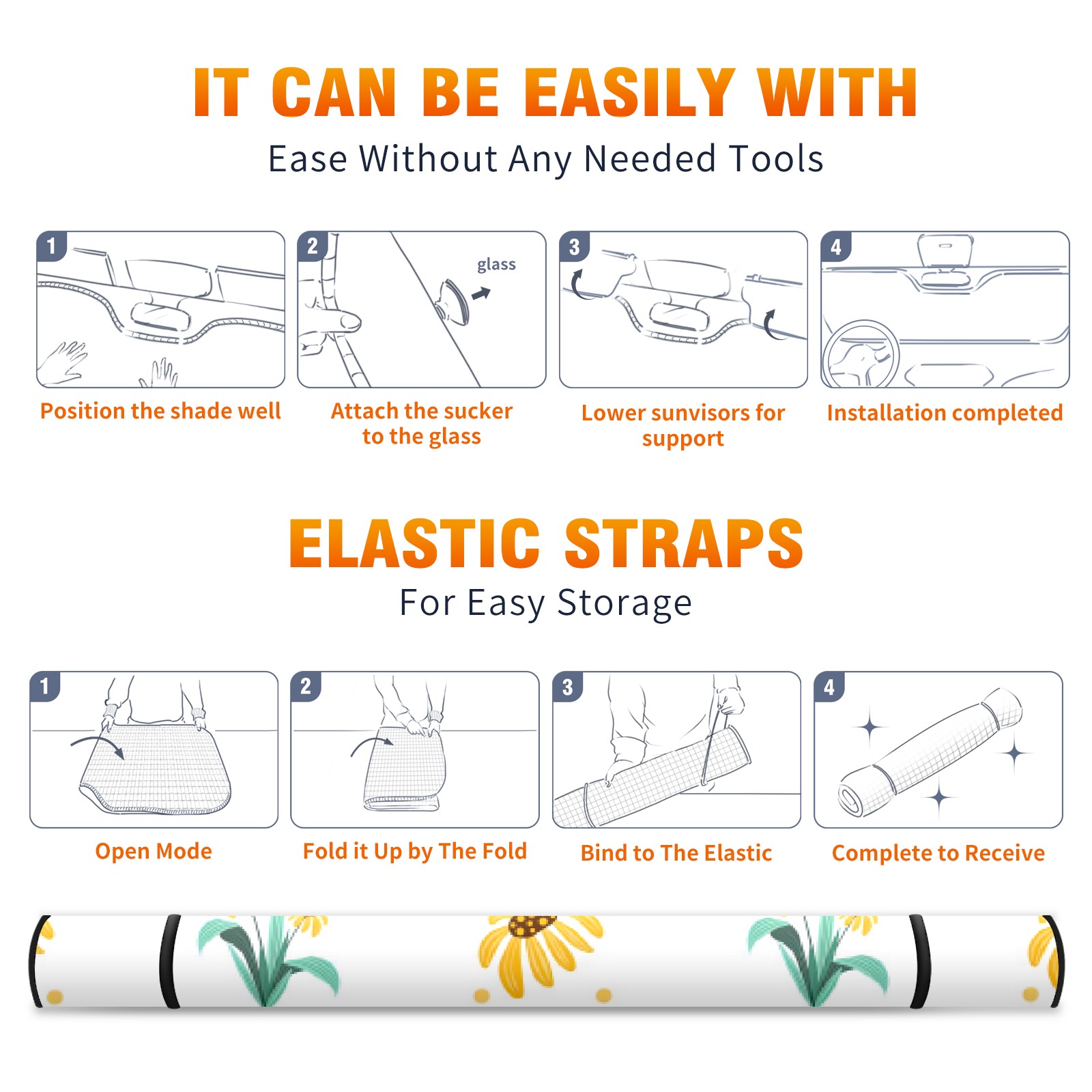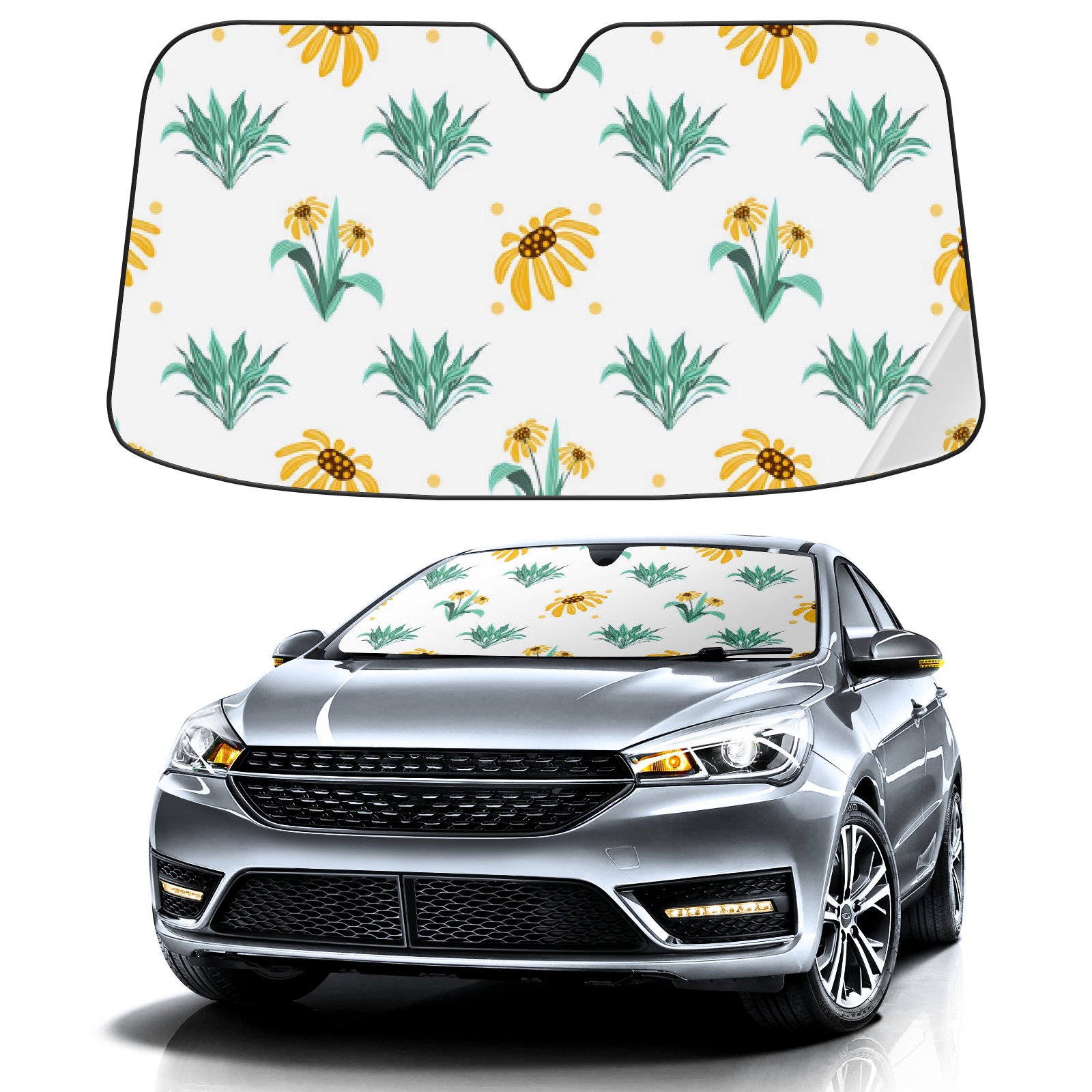 Car Windshield Sun Shade For Front Window Yellow Gerbera On White Foldable Vehicle Windshield Car Sun Visor Covers Automotive Window Protector Car Camping Privacy Sun Blocker