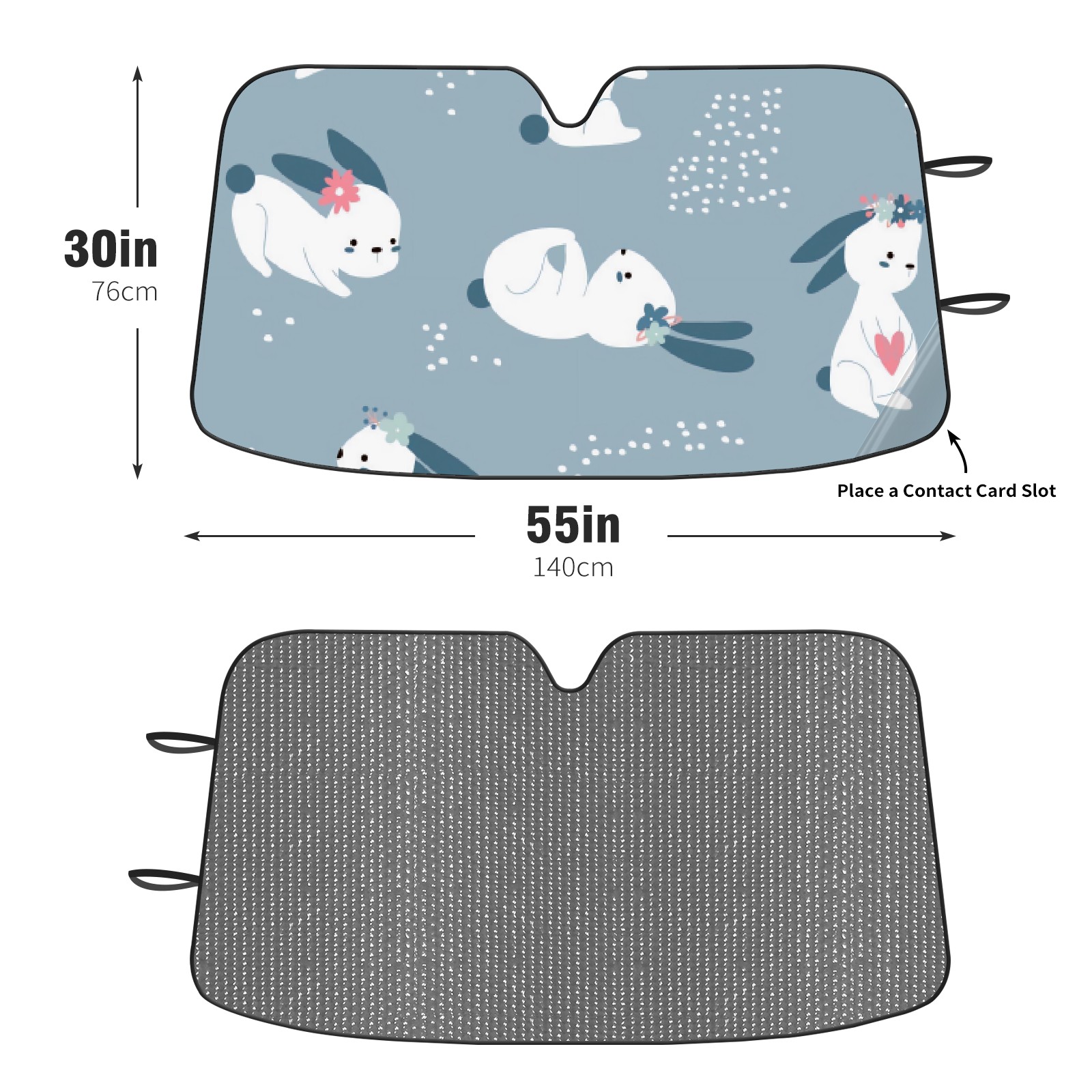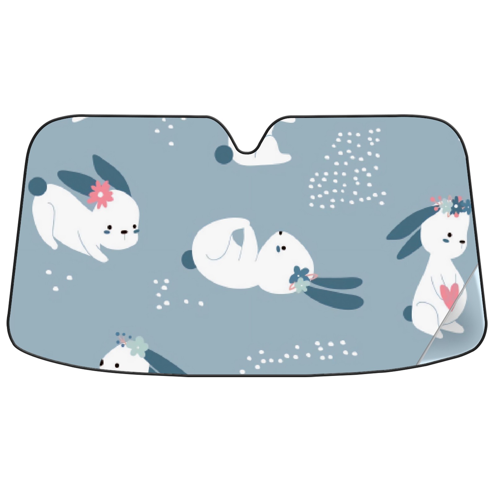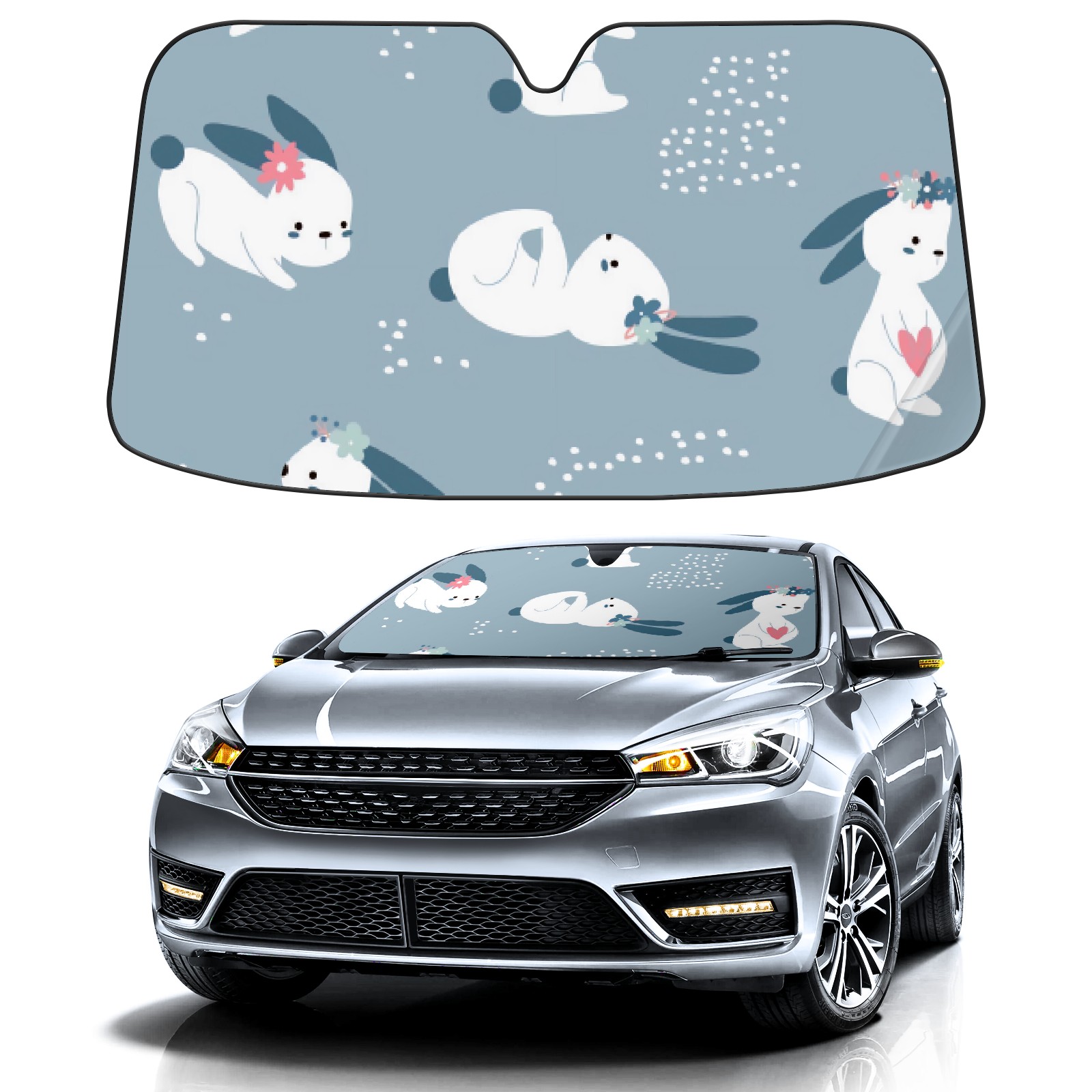 Car Windshield Sun Shade For Front Window Cartoon White Rabbit On Blue Foldable Vehicle Windshield Car Sun Visor Covers Automotive Window Protector Car Camping Privacy Sun Blocker