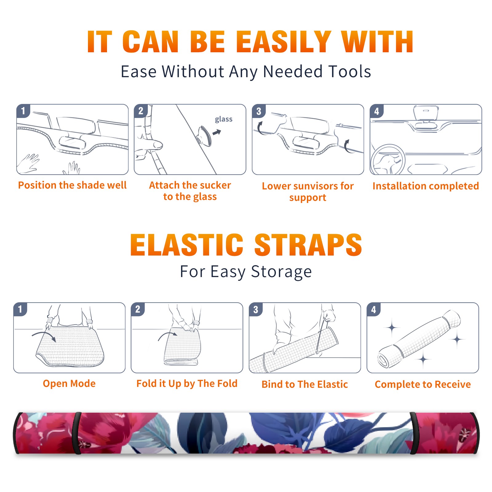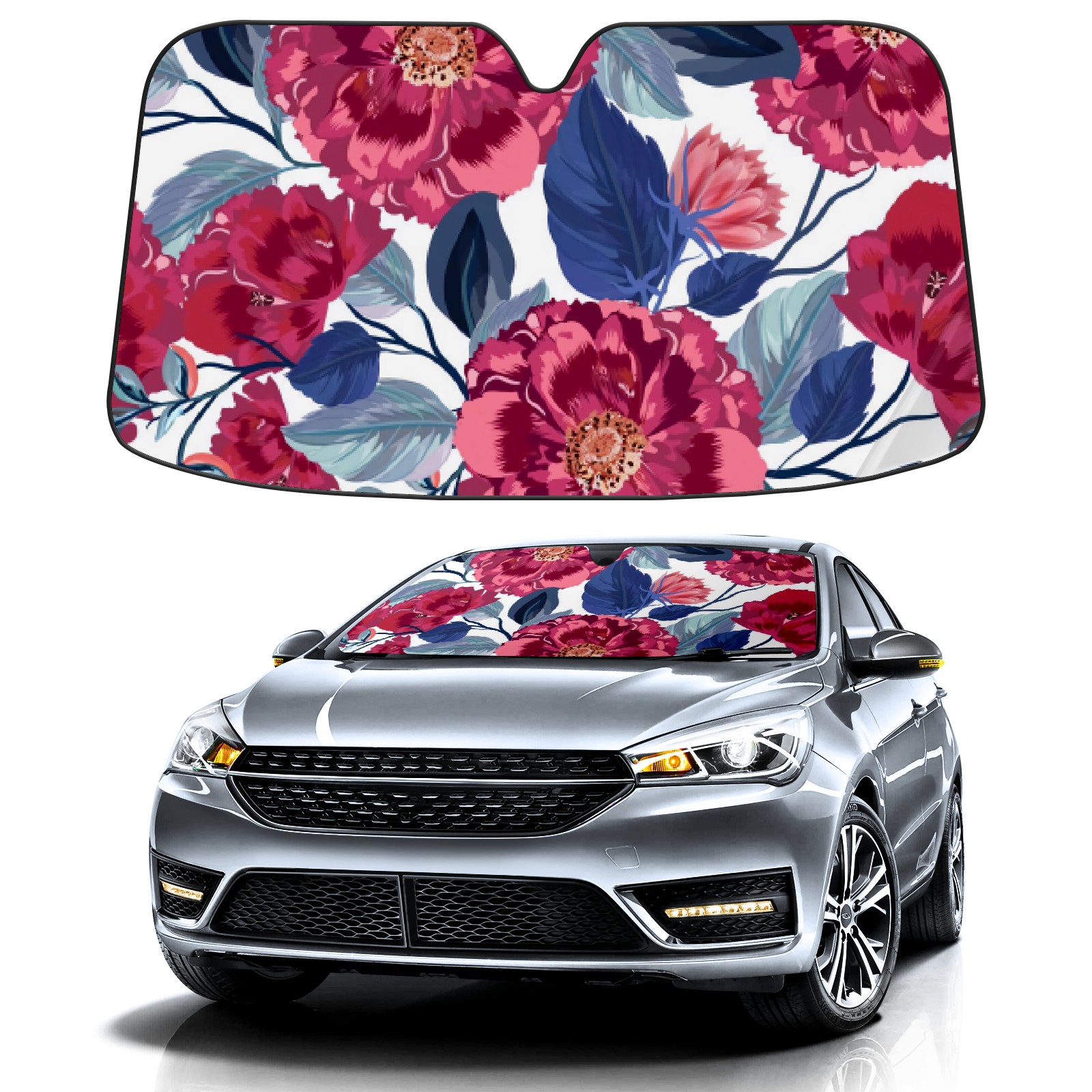 Car Windshield Sun Shade For Front Window Paeonia Lactiflora Foldable Vehicle Windshield Car Sun Visor Covers Automotive Window Protector Car Camping Privacy Sun Blocker