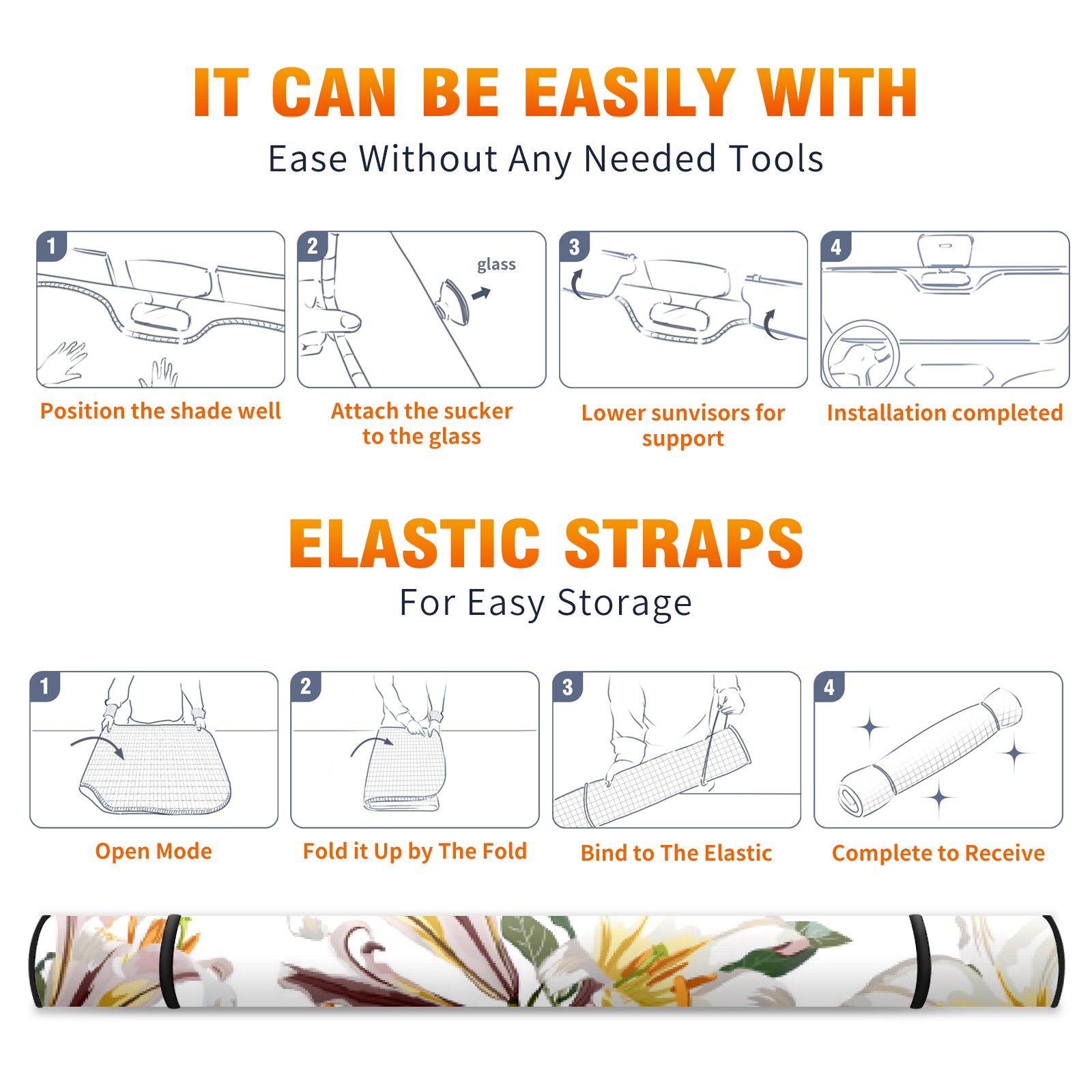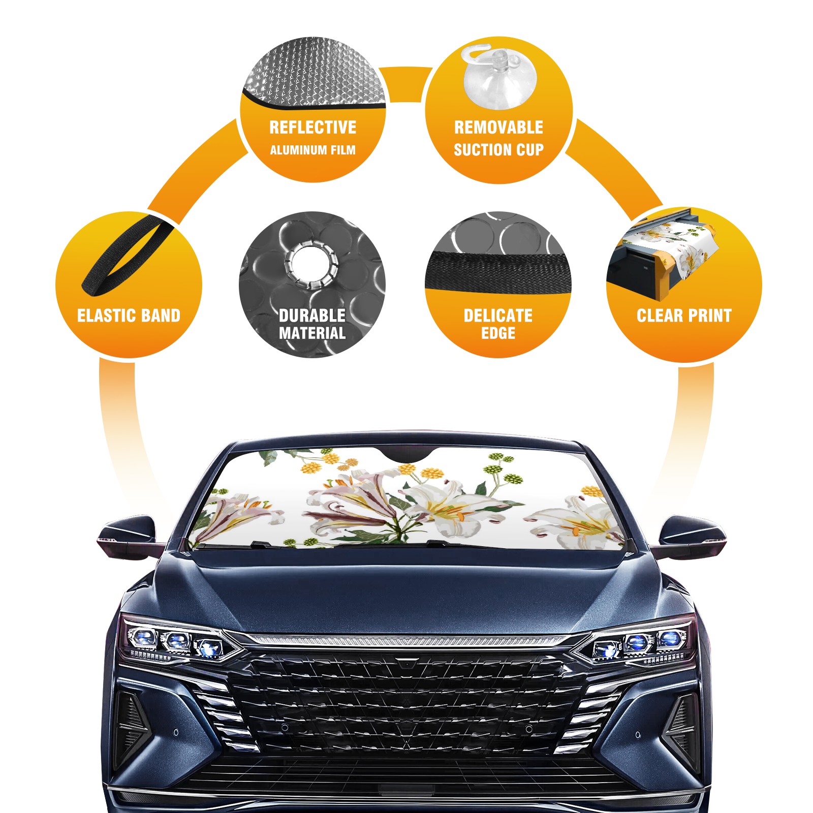 Car Windshield Sun Shade For Front Window White Lily Field Foldable Vehicle Windshield Car Sun Visor Covers Automotive Window Protector Car Camping Privacy Sun Blocker