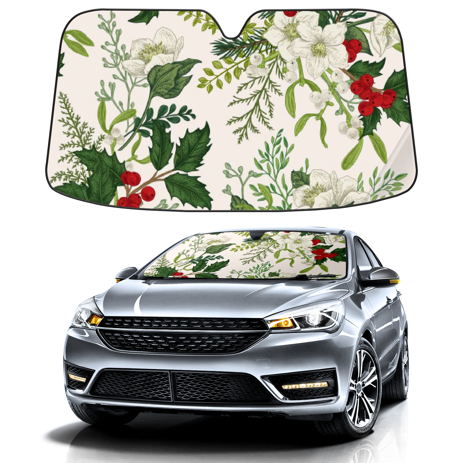 Car Windshield Sun Shade For Front Window White Bottom Red Fruit Foldable Vehicle Windshield Car Sun Visor Covers Automotive Window Protector Car Camping Privacy Sun Blocker