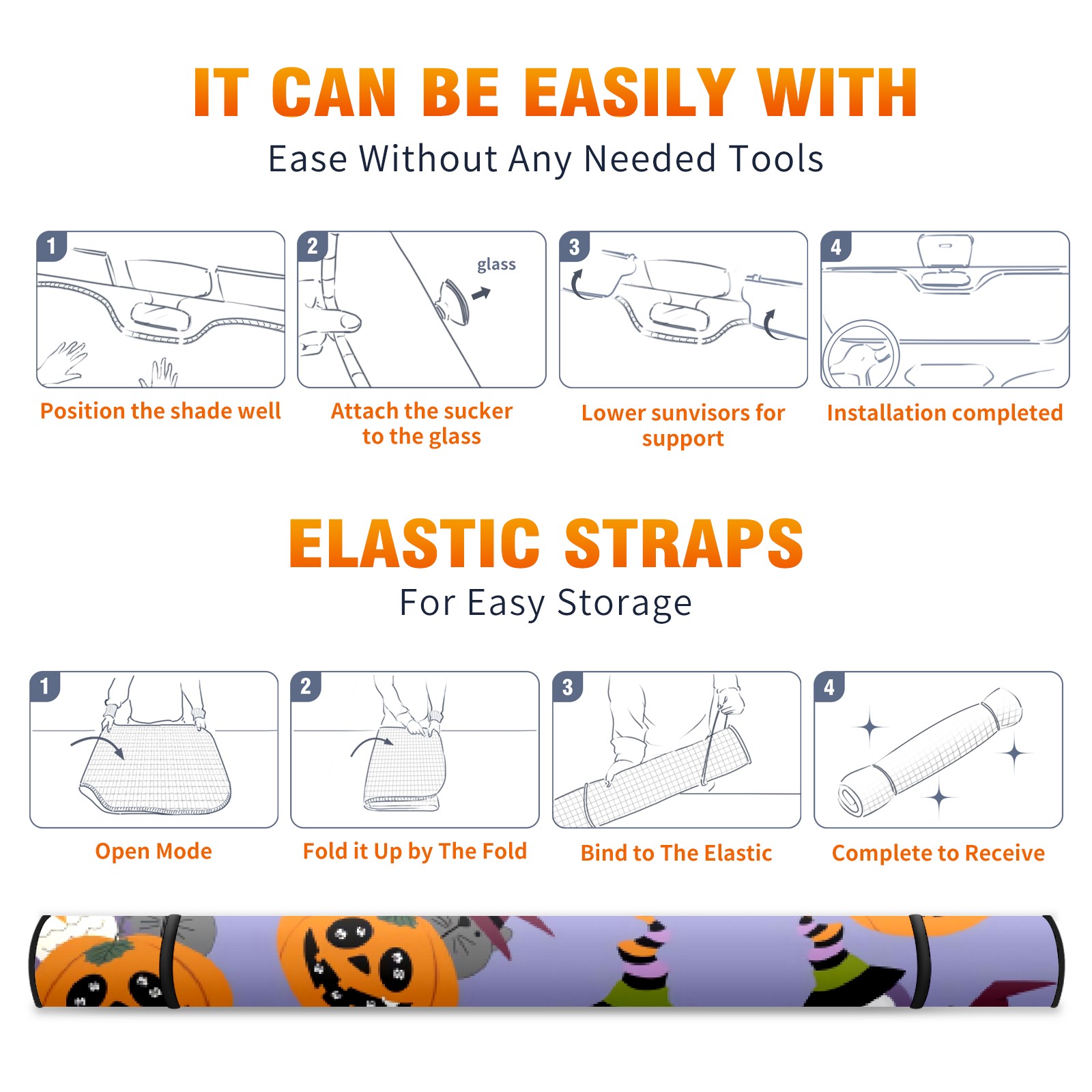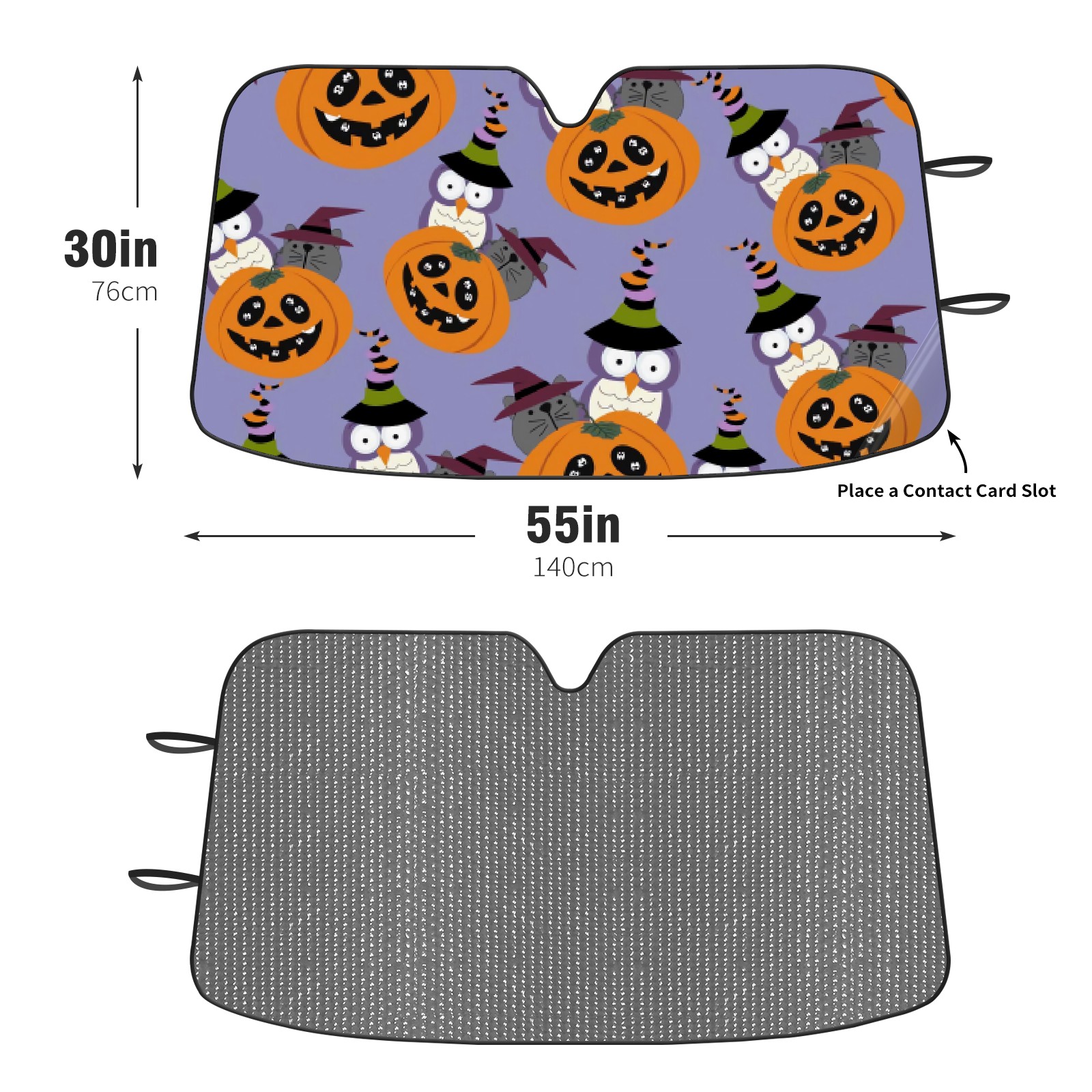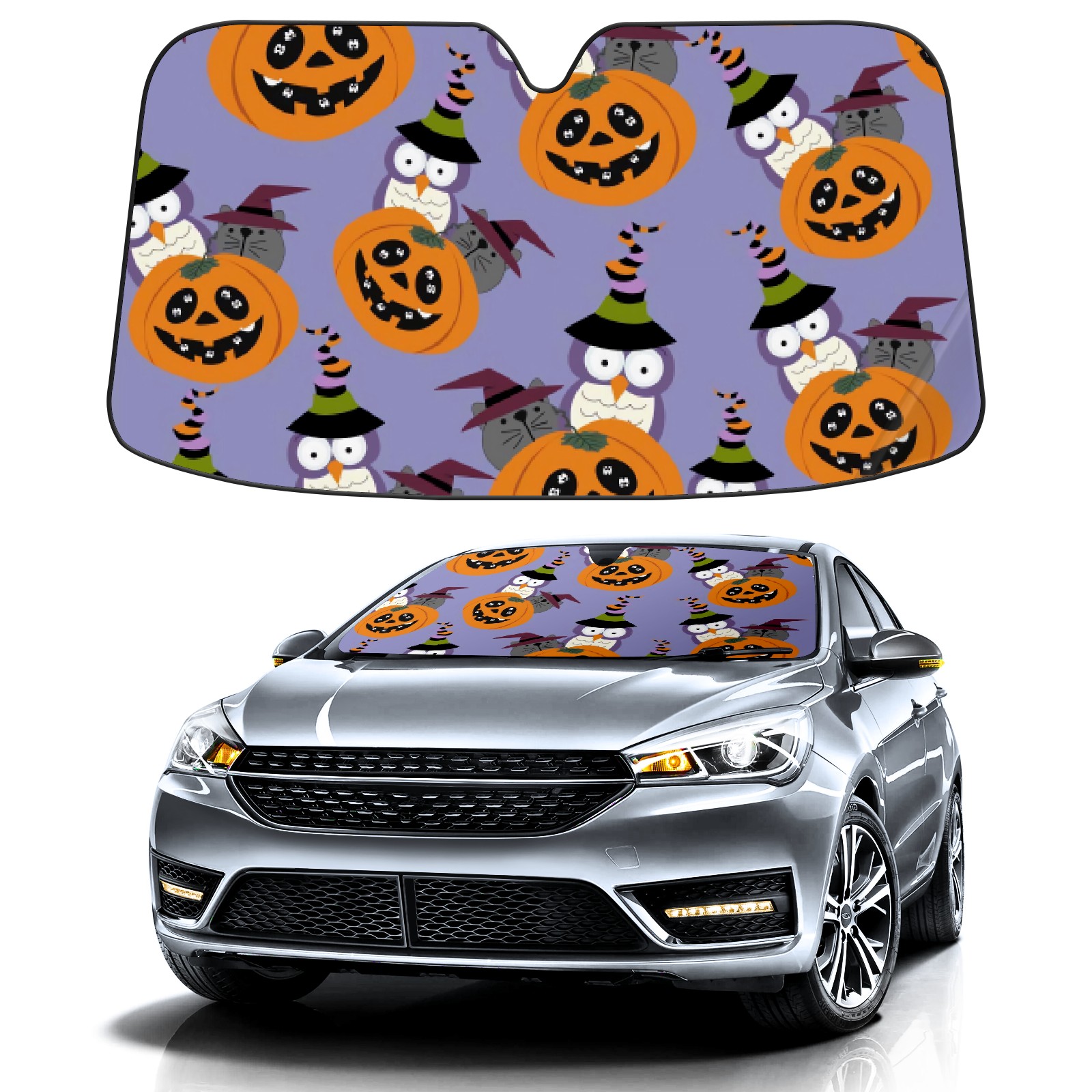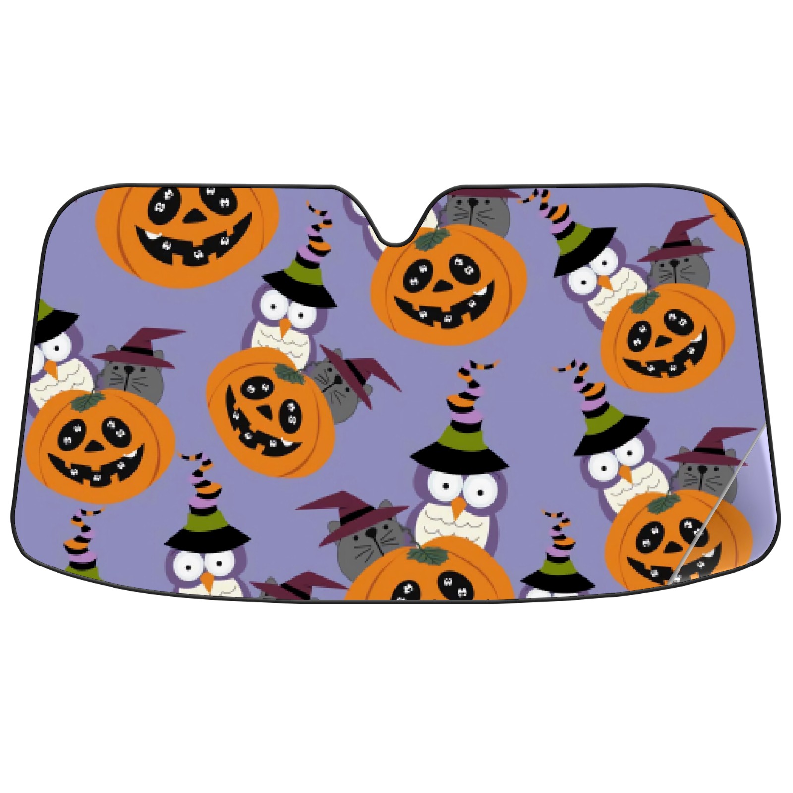 Car Windshield Sun Shade For Front Window Yellow Pumpkin Owl Foldable Vehicle Windshield Car Sun Visor Covers Automotive Window Protector Car Camping Privacy Sun Blocker
