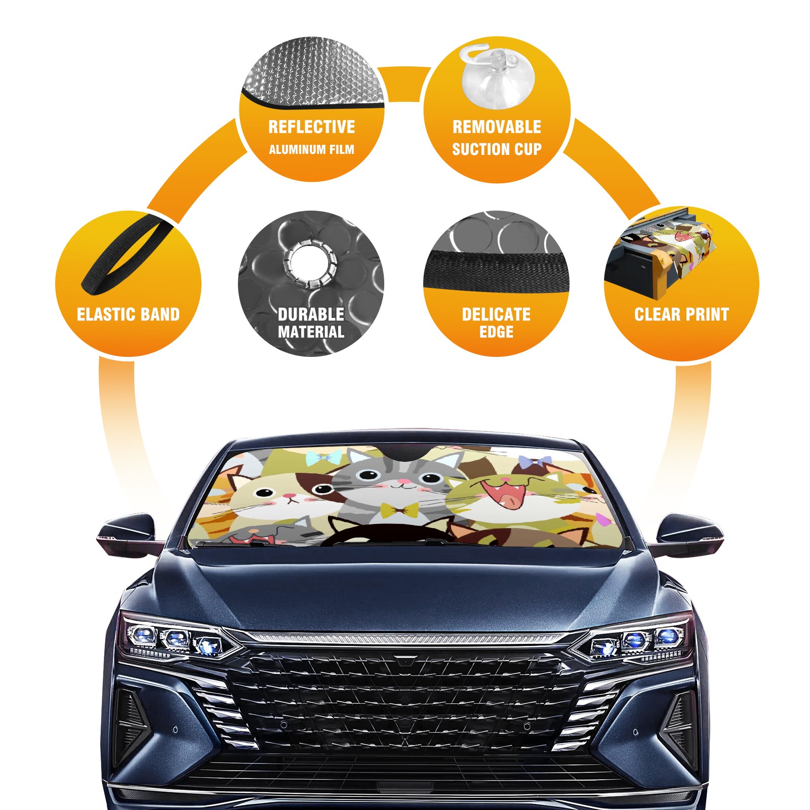 Car Windshield Sun Shade For Front Window Cartoon Cute Cat Foldable Vehicle Windshield Car Sun Visor Covers Automotive Window Protector Car Camping Privacy Sun Blocker