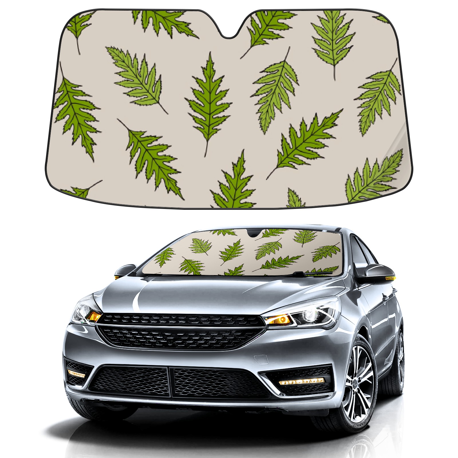 Car Windshield Sun Shade For Front Window Green Turkish Oak Foldable Vehicle Windshield Car Sun Visor Covers Automotive Window Protector Car Camping Privacy Sun Blocker