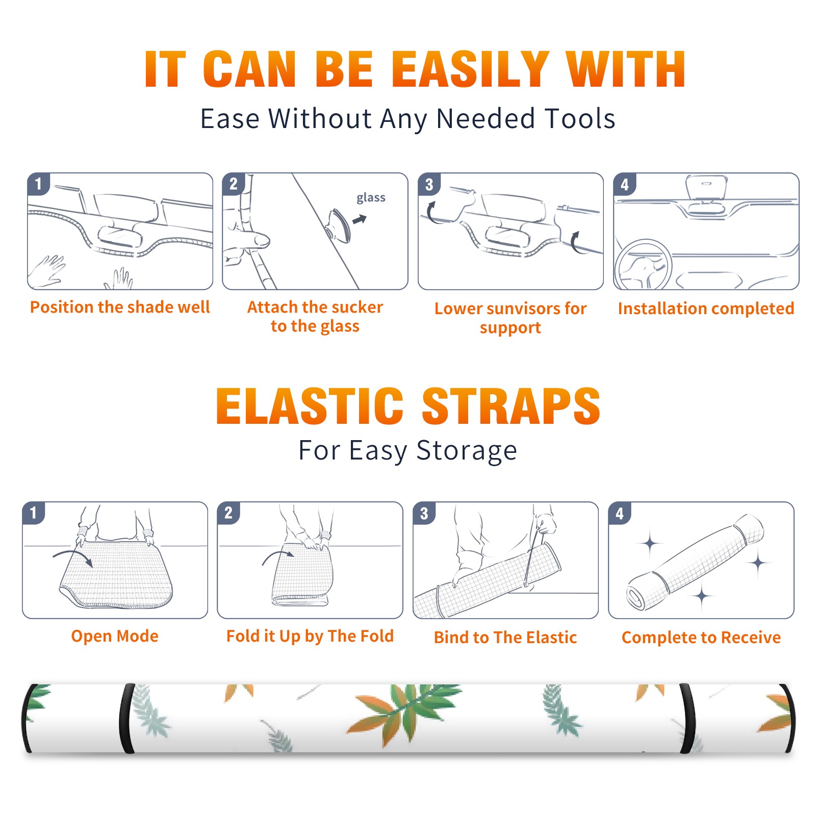 • Diameter /Size 63"L x 33.5"W Made from excellent materials which makes it sturdy and protects the car from the sun. Easy to use and pack. Makes the interior of the car cooler.You can easily stash the sunshade in the storage bag or store long term.It open and closes easy. Also the leather storage bag is durable and easy to put the umbrella back into.This windshield sunshade provides complete coverage and keeps your car interior cool under direct sun. It is easy to open and position under the windshield and around the rear-view mirror. Makes Your Car Easy To Identify, Perfect For Finding Your Car In Crowded Parking Lots And Garages.Great Choice: It Is A Great Gift For Dad, Boyfriend, Brother, Brother And Uncle, Friends, Classmates, Family And So On. Notice: Due To Difference Computer Monitors, The Color Maybe Slightly Different From Picture. As Different Measurement Methods, Measurement Data Will Float Within 2%.I Hope You Understand. If You Have Any Question About The Item Please Do Not Hesitate To Contact Us Immediately And We Will Give You A Satisfactory Reply Within 24 Hours.