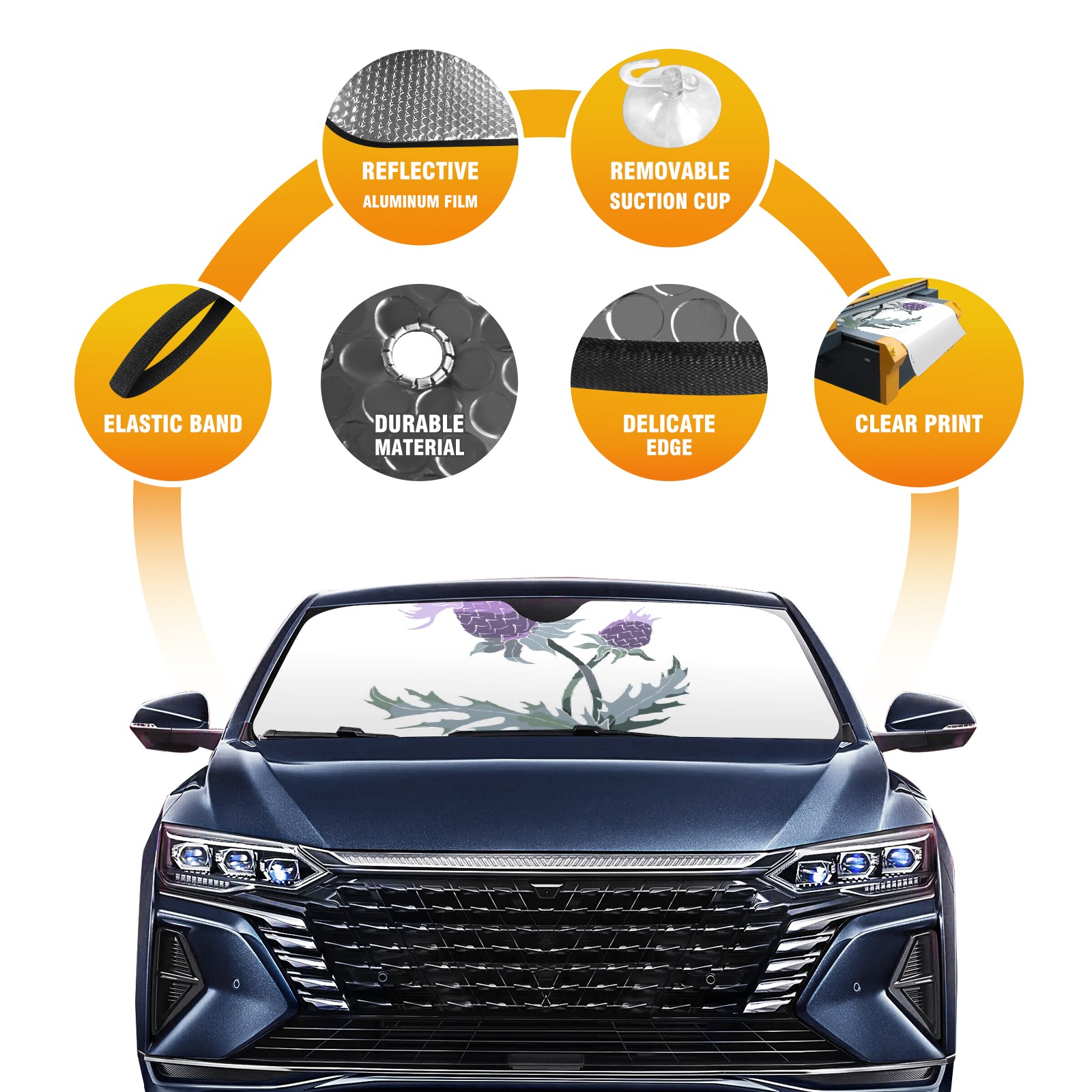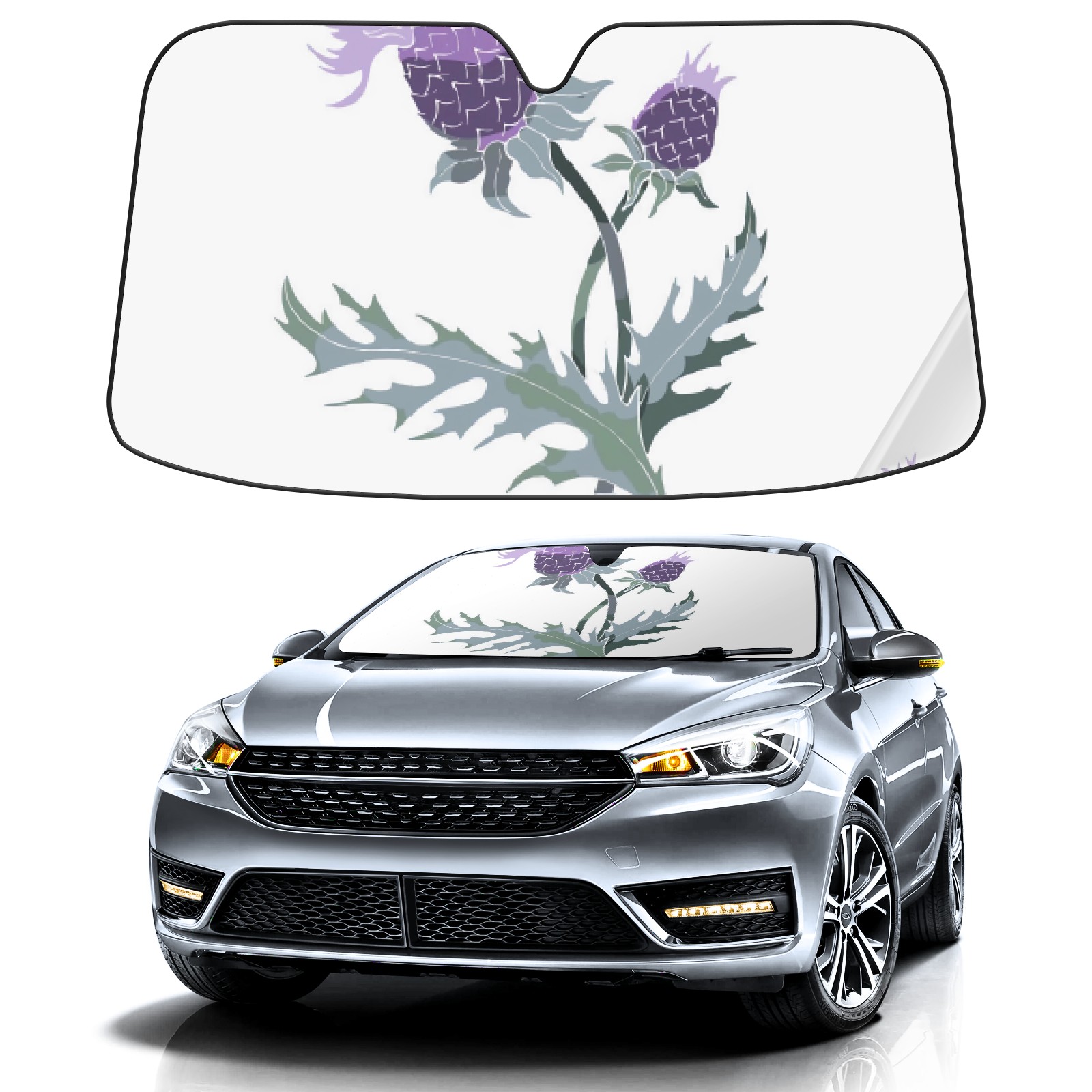 Car Windshield Sun Shade For Front Window Purple Retro Thistle Foldable Vehicle Windshield Car Sun Visor Covers Automotive Window Protector Car Camping Privacy Sun Blocker