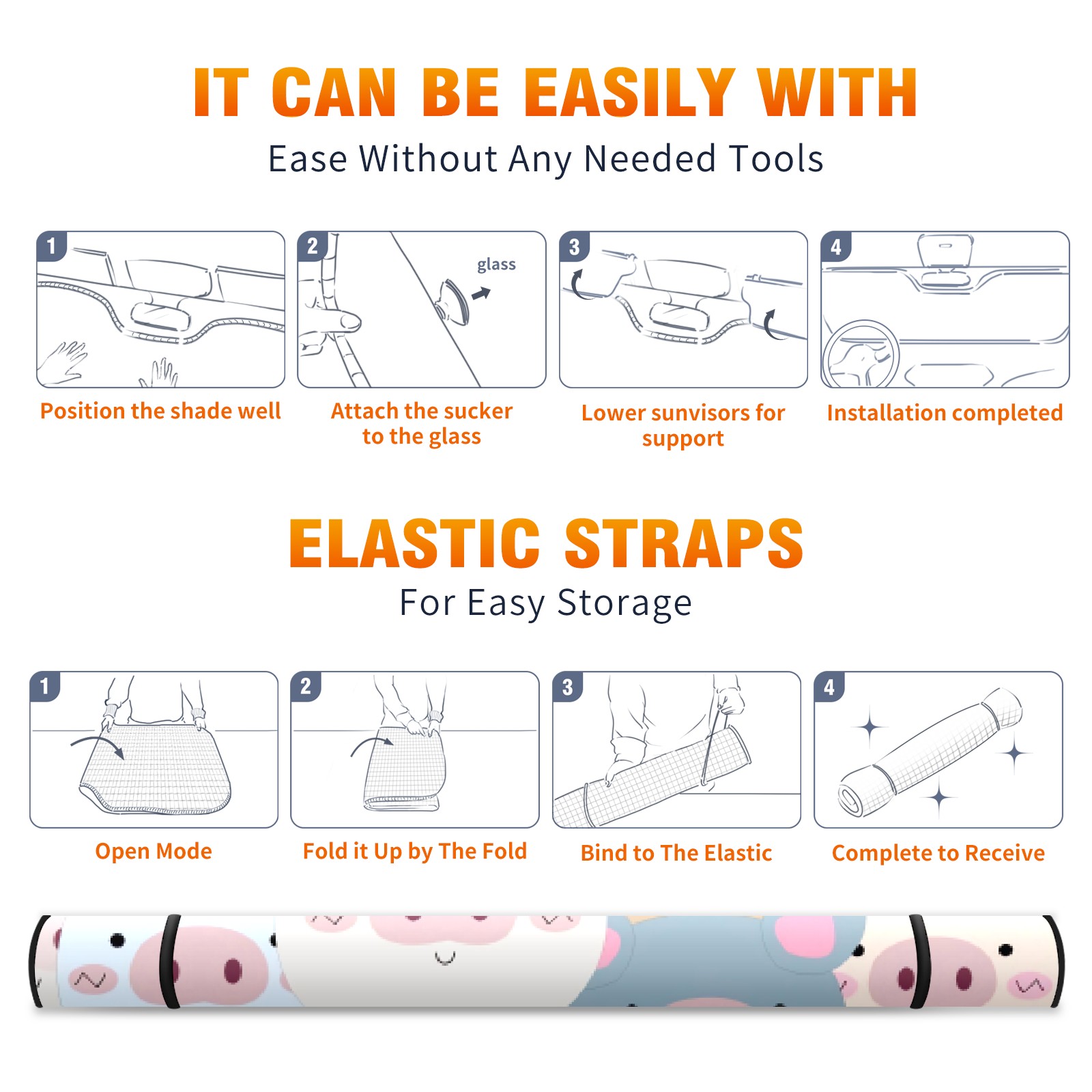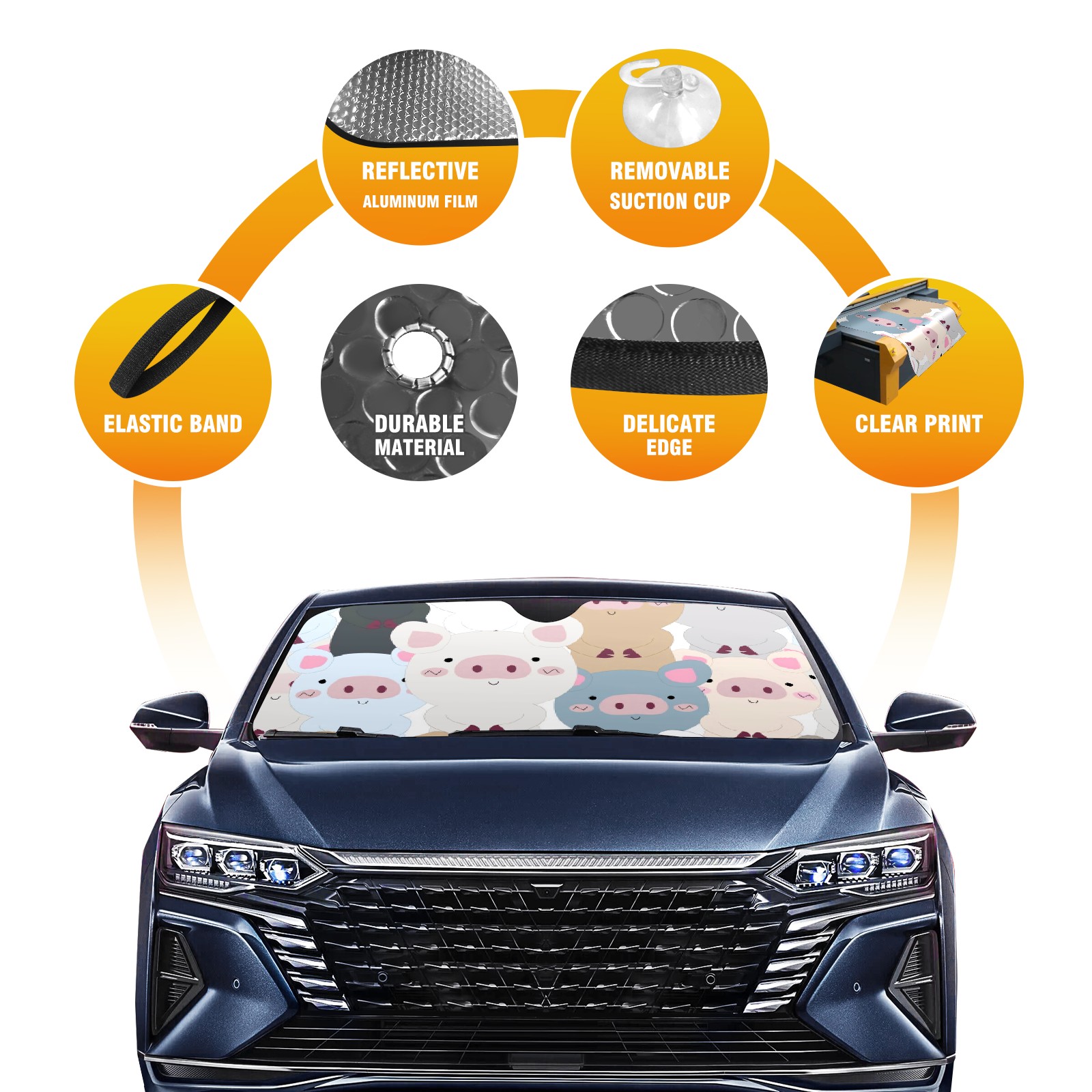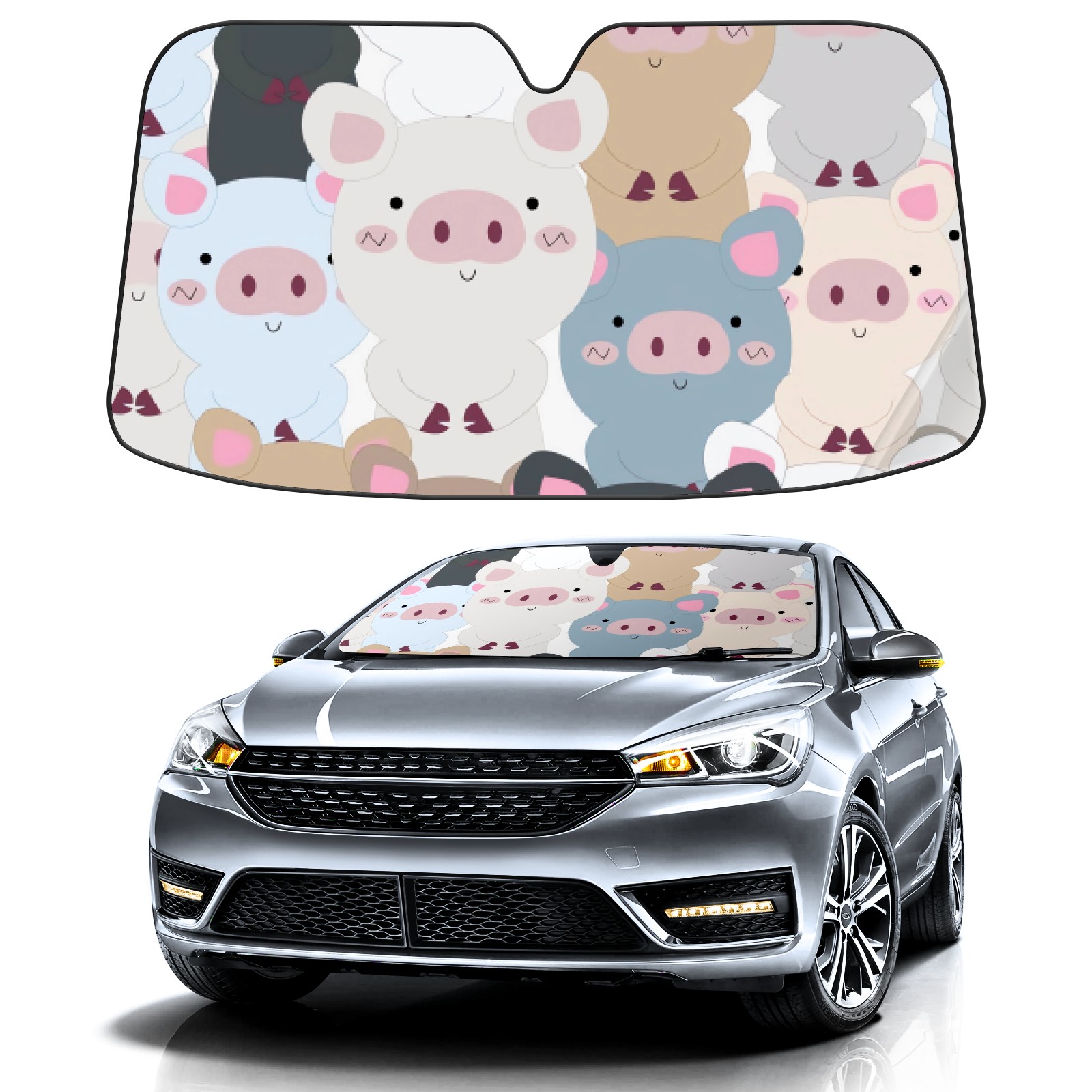 Car Windshield Sun Shade For Front Window Cartoon Colorful Pig Foldable Vehicle Windshield Car Sun Visor Covers Automotive Window Protector Car Camping Privacy Sun Blocker