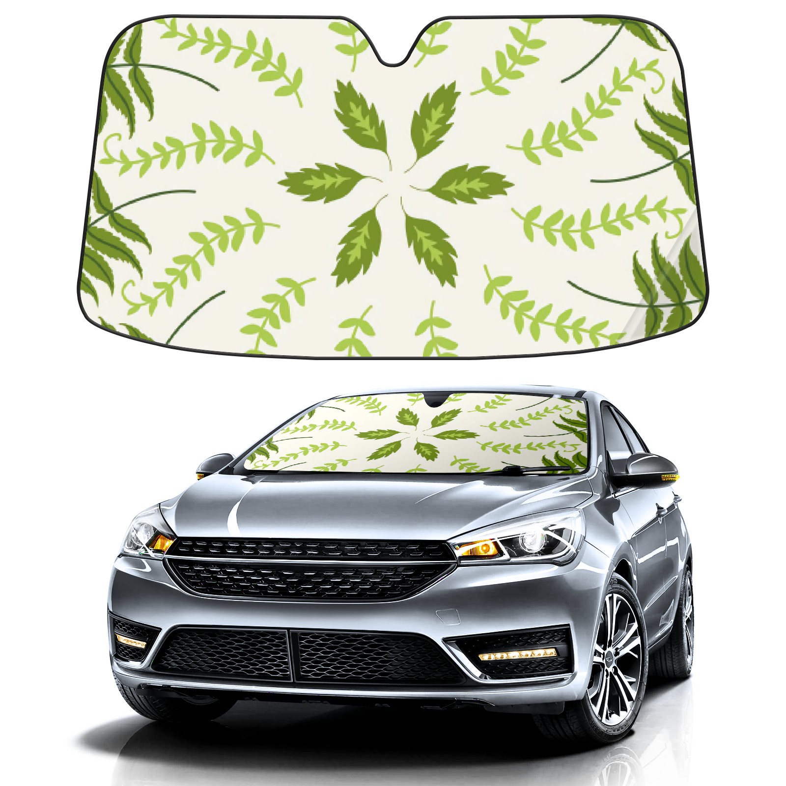 Car Windshield Sun Shade For Front Window Green Alpine Sheep Teeth Foldable Vehicle Windshield Car Sun Visor Covers Automotive Window Protector Car Camping Privacy Sun Blocker