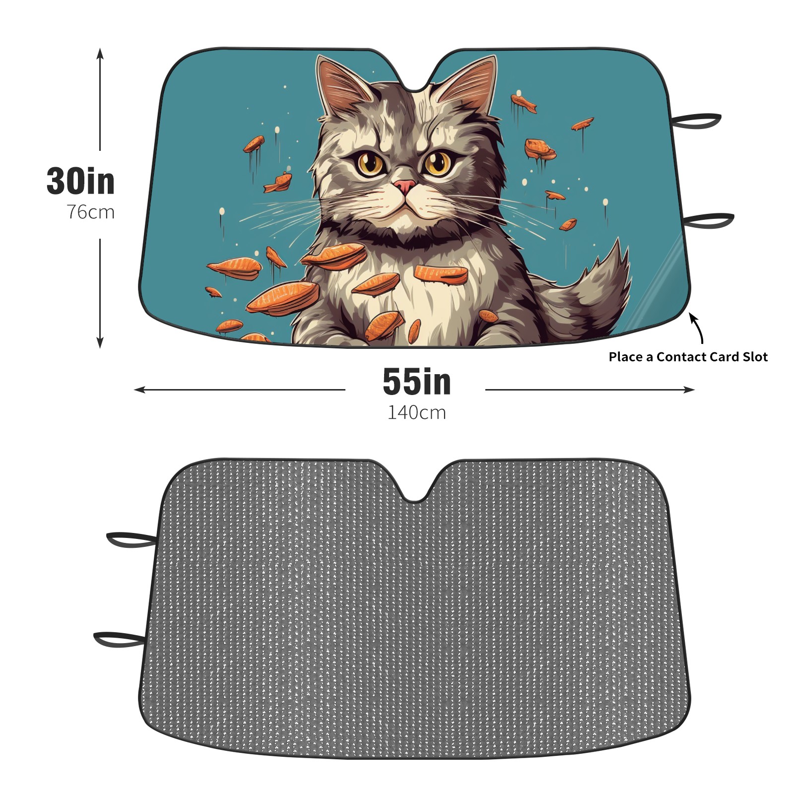Diameter /Size 63"L x 33.5"W Made from excellent materials which makes it sturdy and protects the car from the sun. Easy to use and pack. Makes the interior of the car cooler.You can easily stash the sunshade in the storage bag or store long term.It open and closes easy. Also the leather storage bag is durable and easy to put the umbrella back into.This windshield sunshade provides complete coverage and keeps your car interior cool under direct sun. It is easy to open and position under the windshield and around the rear-view mirror. Makes Your Car Easy To Identify, Perfect For Finding Your Car In Crowded Parking Lots And Garages.Great Choice: It Is A Great Gift For Dad, Boyfriend, Brother, Brother And Uncle, Friends, Classmates, Family And So On. Notice: Due To Difference Computer Monitors, The Color Maybe Slightly Different From Picture. As Different Measurement Methods, Measurement Data Will Float Within 2%.I Hope You Understand. If You Have Any Question About The Item Please Do Not Hesitate To Contact Us Immediately And We Will Give You A Satisfactory Reply Within 24 Hours.