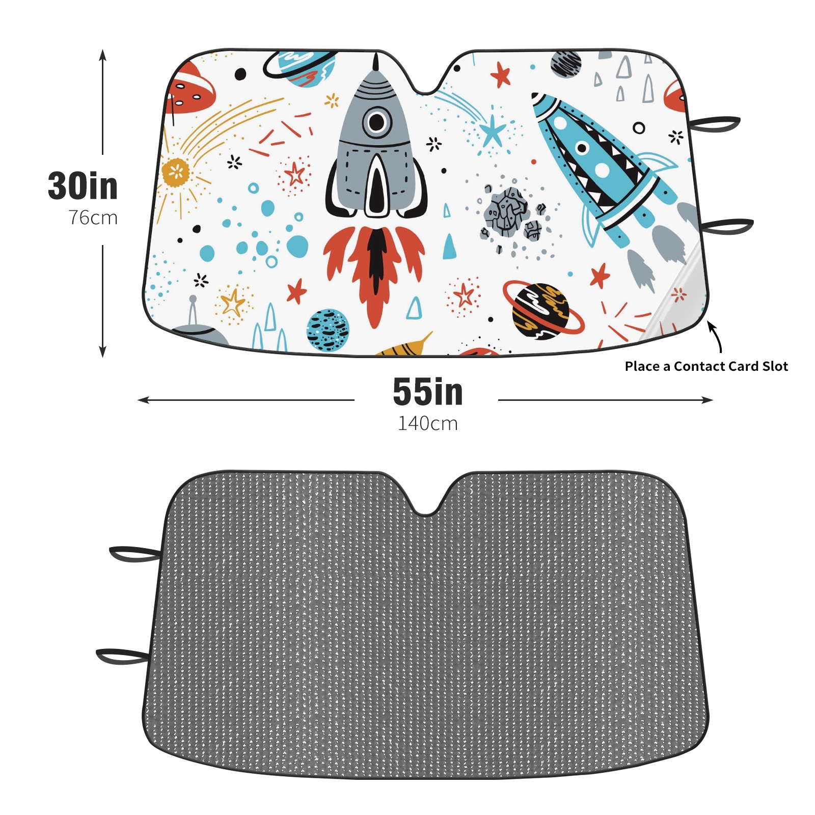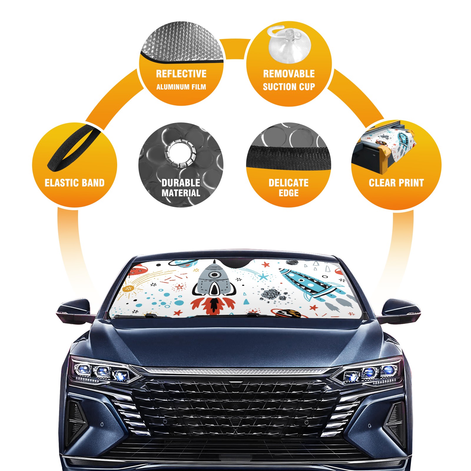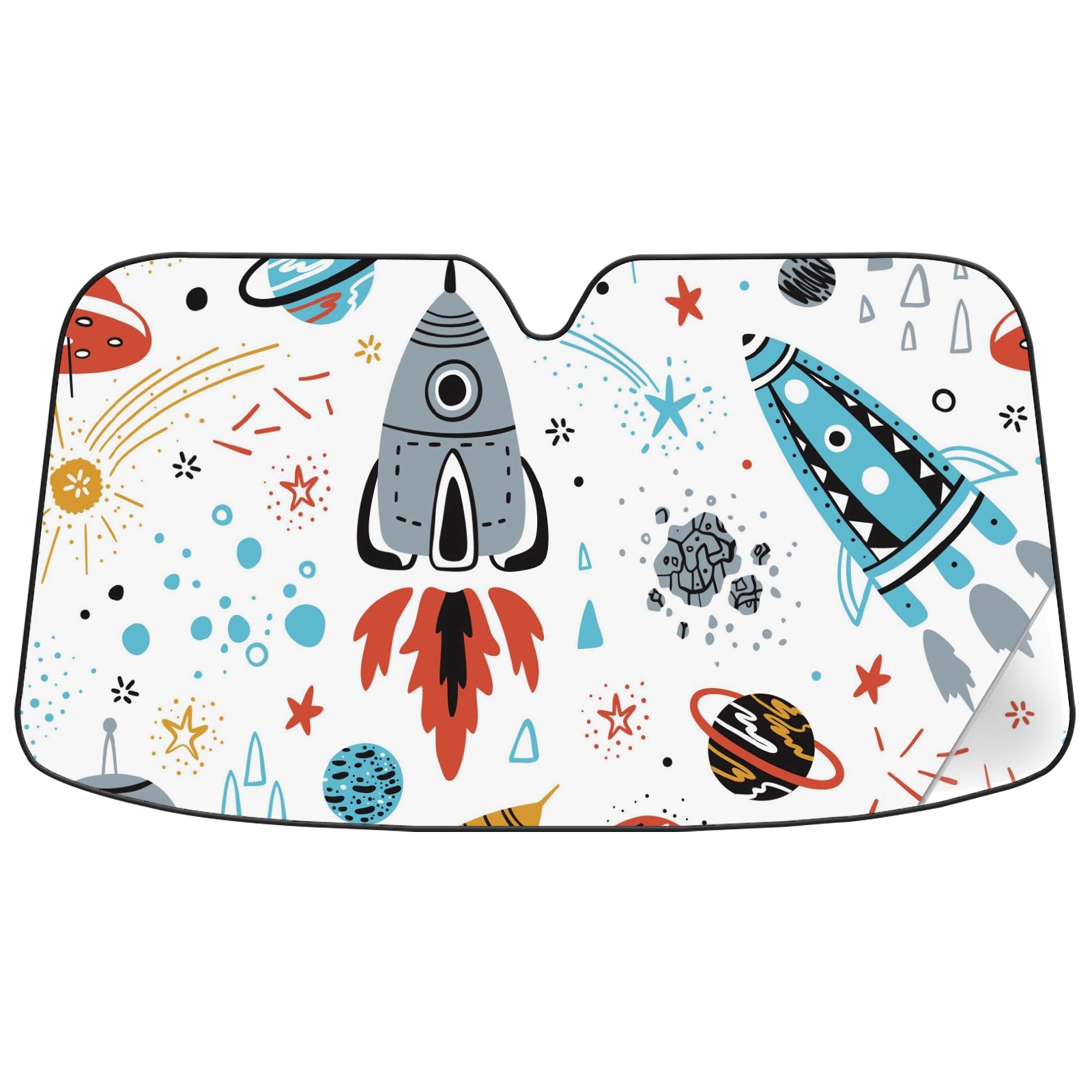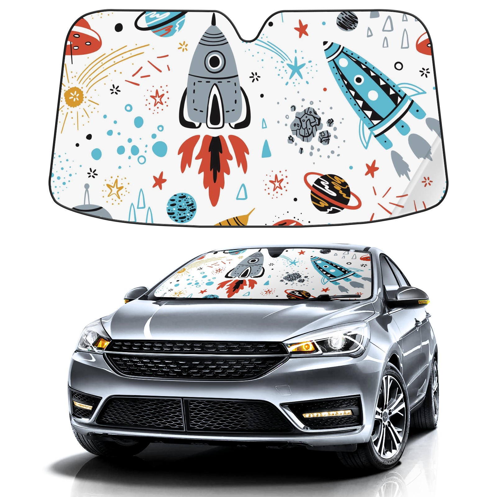 Car Windshield Sun Shade For Front Window Rocket Ship Foldable Vehicle Windshield Car Sun Visor Covers Automotive Window Protector Car Camping Privacy Sun Blocker