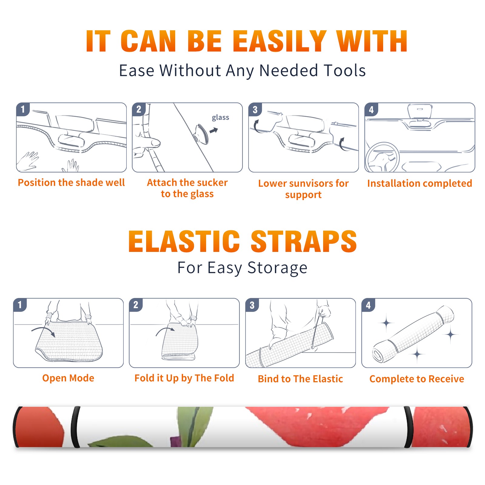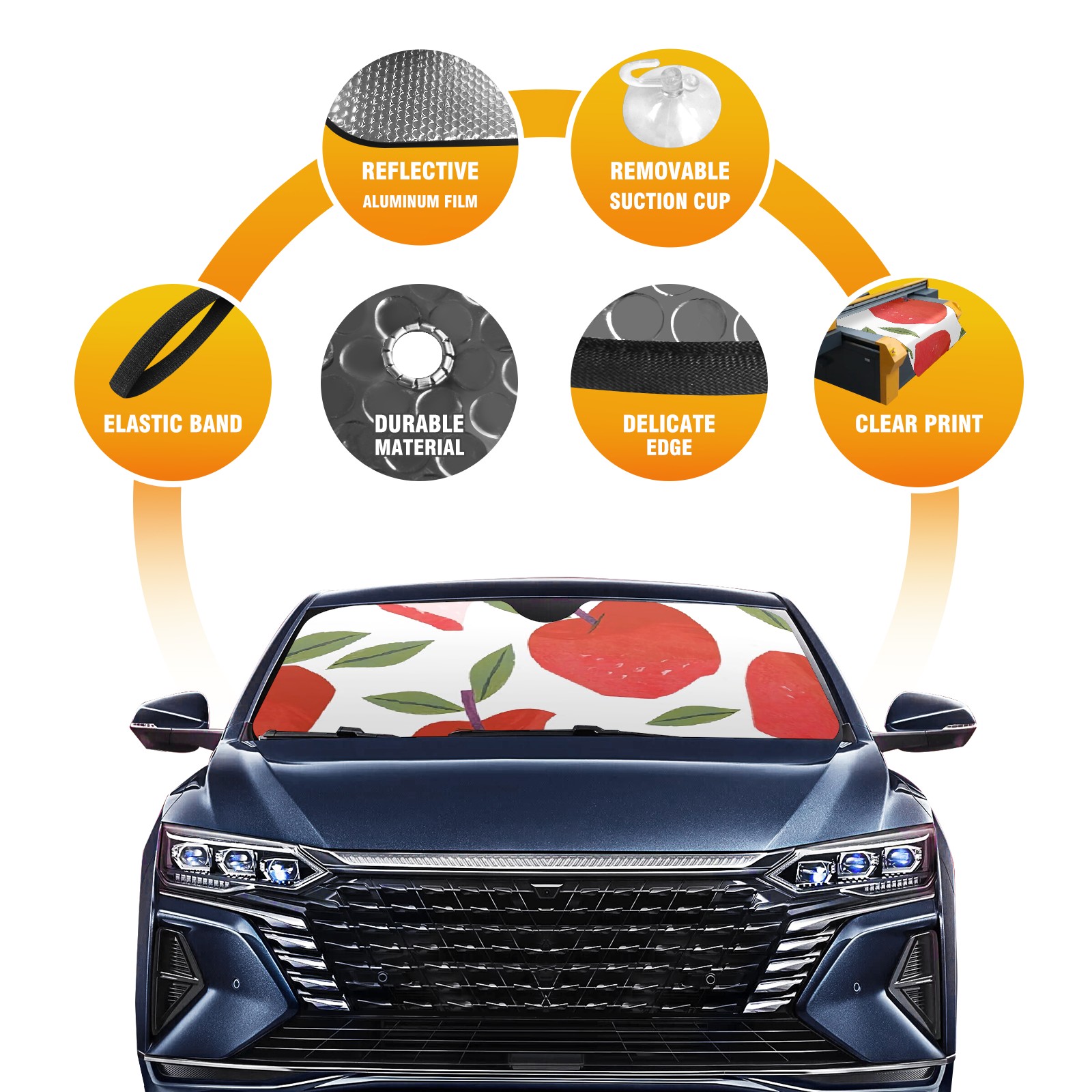 Car Windshield Sun Shade For Front Window Fruit Apple Foldable Vehicle Windshield Car Sun Visor Covers Automotive Window Protector Car Camping Privacy Sun Blocker