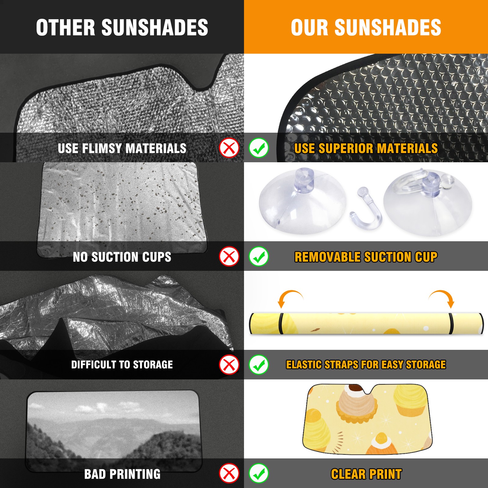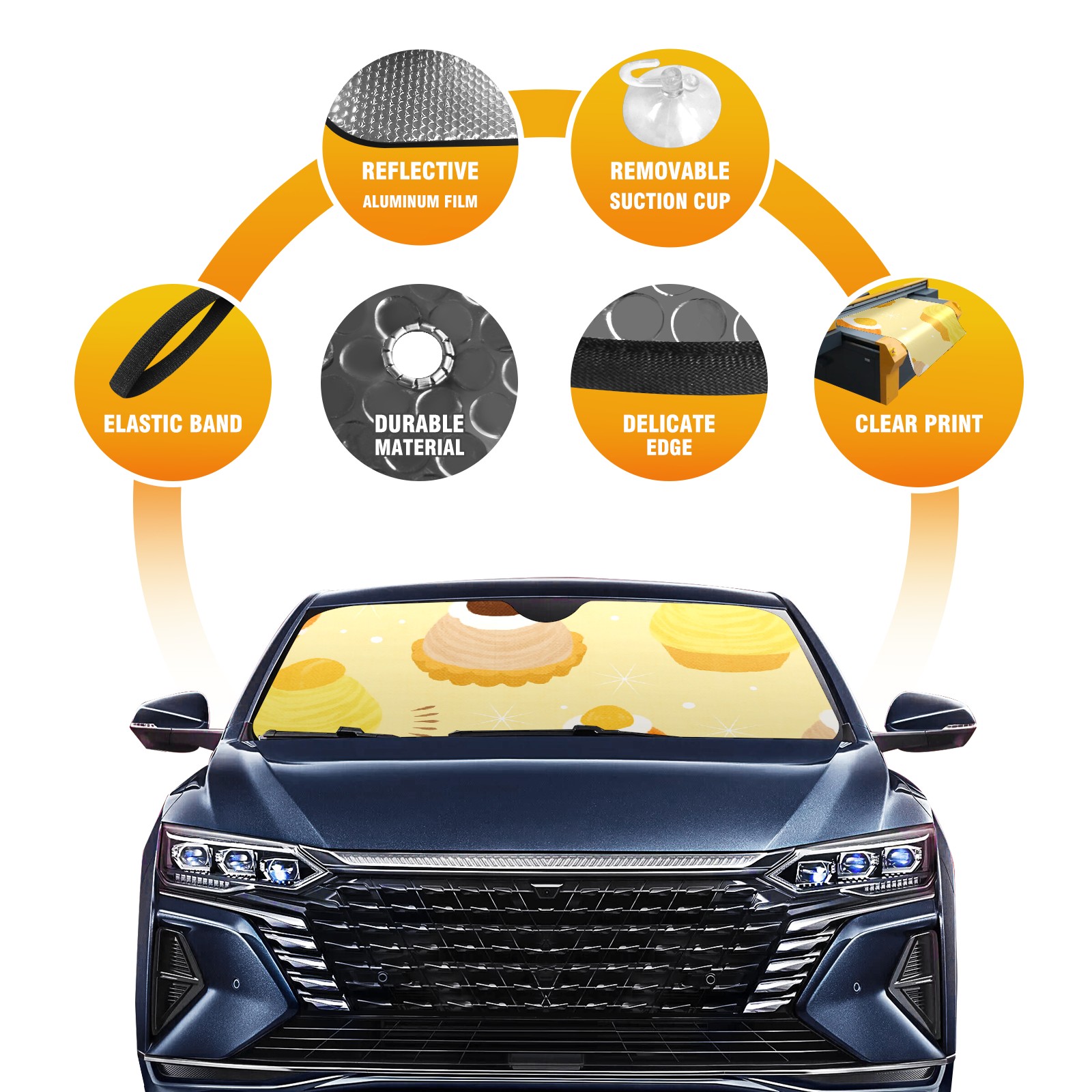 Car Windshield Sun Shade For Front Window Food Cake Foldable Vehicle Windshield Car Sun Visor Covers Automotive Window Protector Car Camping Privacy Sun Blocker