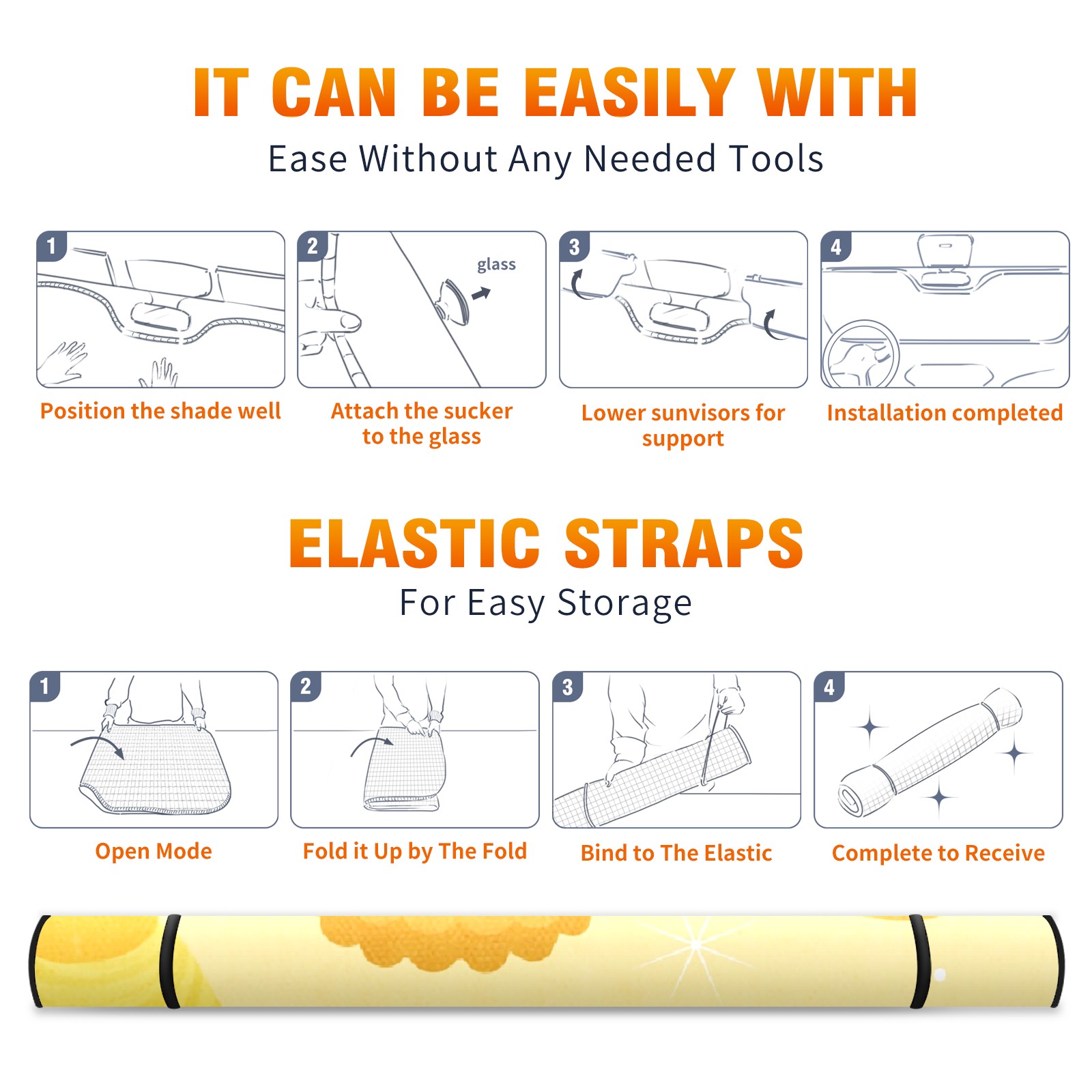 • Diameter /Size 63"L x 33.5"W Made from excellent materials which makes it sturdy and protects the car from the sun. Easy to use and pack. Makes the interior of the car cooler.You can easily stash the sunshade in the storage bag or store long term.It open and closes easy. Also the leather storage bag is durable and easy to put the umbrella back into.This windshield sunshade provides complete coverage and keeps your car interior cool under direct sun. It is easy to open and position under the windshield and around the rear-view mirror. Makes Your Car Easy To Identify, Perfect For Finding Your Car In Crowded Parking Lots And Garages.Great Choice: It Is A Great Gift For Dad, Boyfriend, Brother, Brother And Uncle, Friends, Classmates, Family And So On. Notice: Due To Difference Computer Monitors, The Color Maybe Slightly Different From Picture. As Different Measurement Methods, Measurement Data Will Float Within 2%.I Hope You Understand. If You Have Any Question About The Item Please Do Not Hesitate To Contact Us Immediately And We Will Give You A Satisfactory Reply Within 24 Hours.