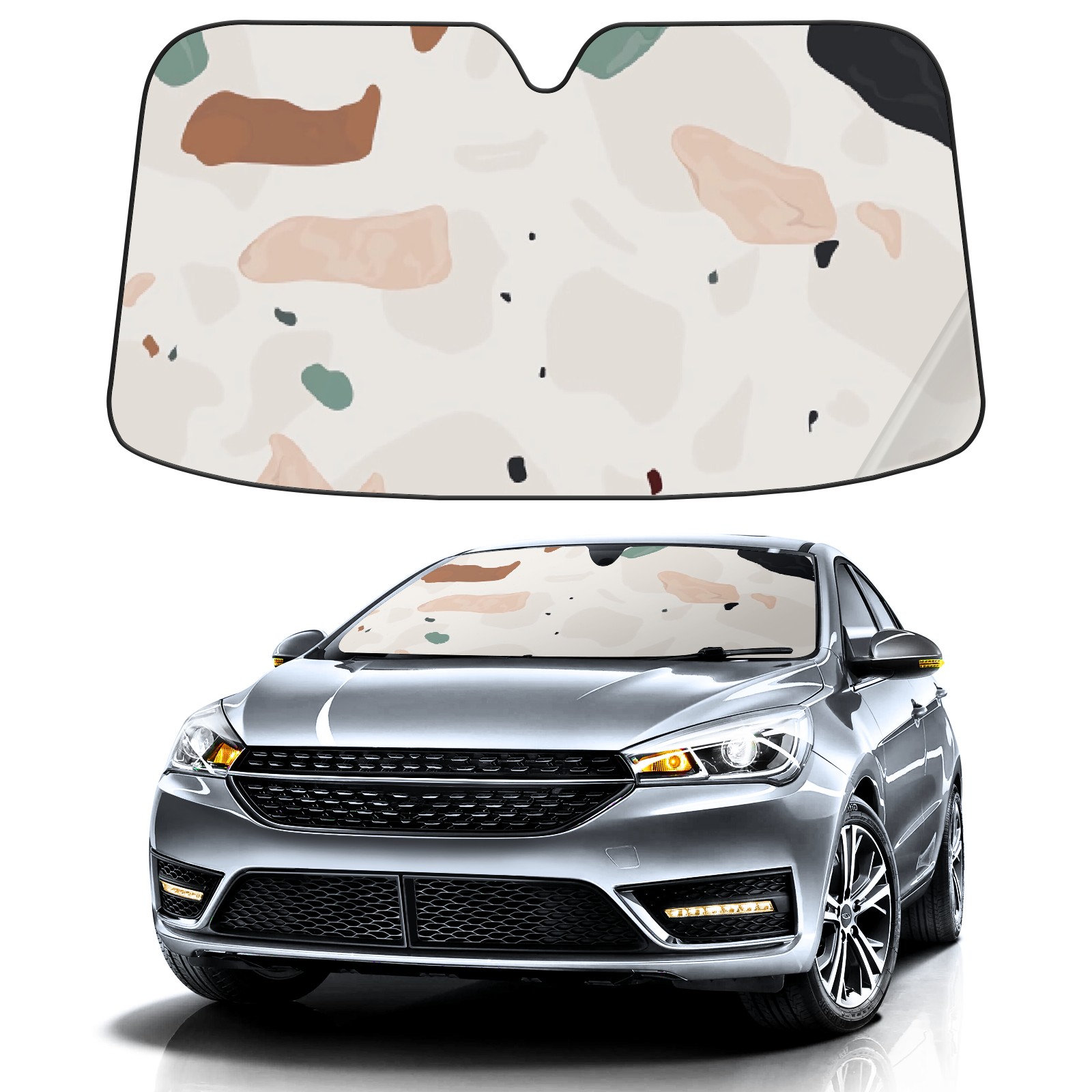 Car Windshield Sun Shade For Front Window Colorful Terrazzo Foldable Vehicle Windshield Car Sun Visor Covers Automotive Window Protector Car Camping Privacy Sun Blocker