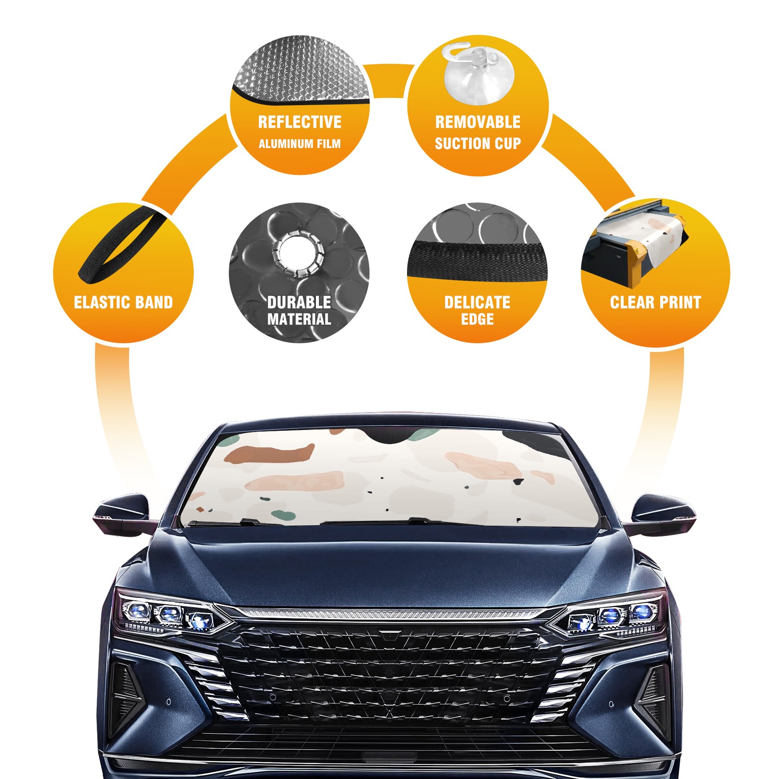 • Diameter /Size 63"L x 33.5"W Made from excellent materials which makes it sturdy and protects the car from the sun. Easy to use and pack. Makes the interior of the car cooler.You can easily stash the sunshade in the storage bag or store long term.It open and closes easy. Also the leather storage bag is durable and easy to put the umbrella back into.This windshield sunshade provides complete coverage and keeps your car interior cool under direct sun. It is easy to open and position under the windshield and around the rear-view mirror. Makes Your Car Easy To Identify, Perfect For Finding Your Car In Crowded Parking Lots And Garages.Great Choice: It Is A Great Gift For Dad, Boyfriend, Brother, Brother And Uncle, Friends, Classmates, Family And So On. Notice: Due To Difference Computer Monitors, The Color Maybe Slightly Different From Picture. As Different Measurement Methods, Measurement Data Will Float Within 2%.I Hope You Understand. If You Have Any Question About The Item Please Do Not Hesitate To Contact Us Immediately And We Will Give You A Satisfactory Reply Within 24 Hours.