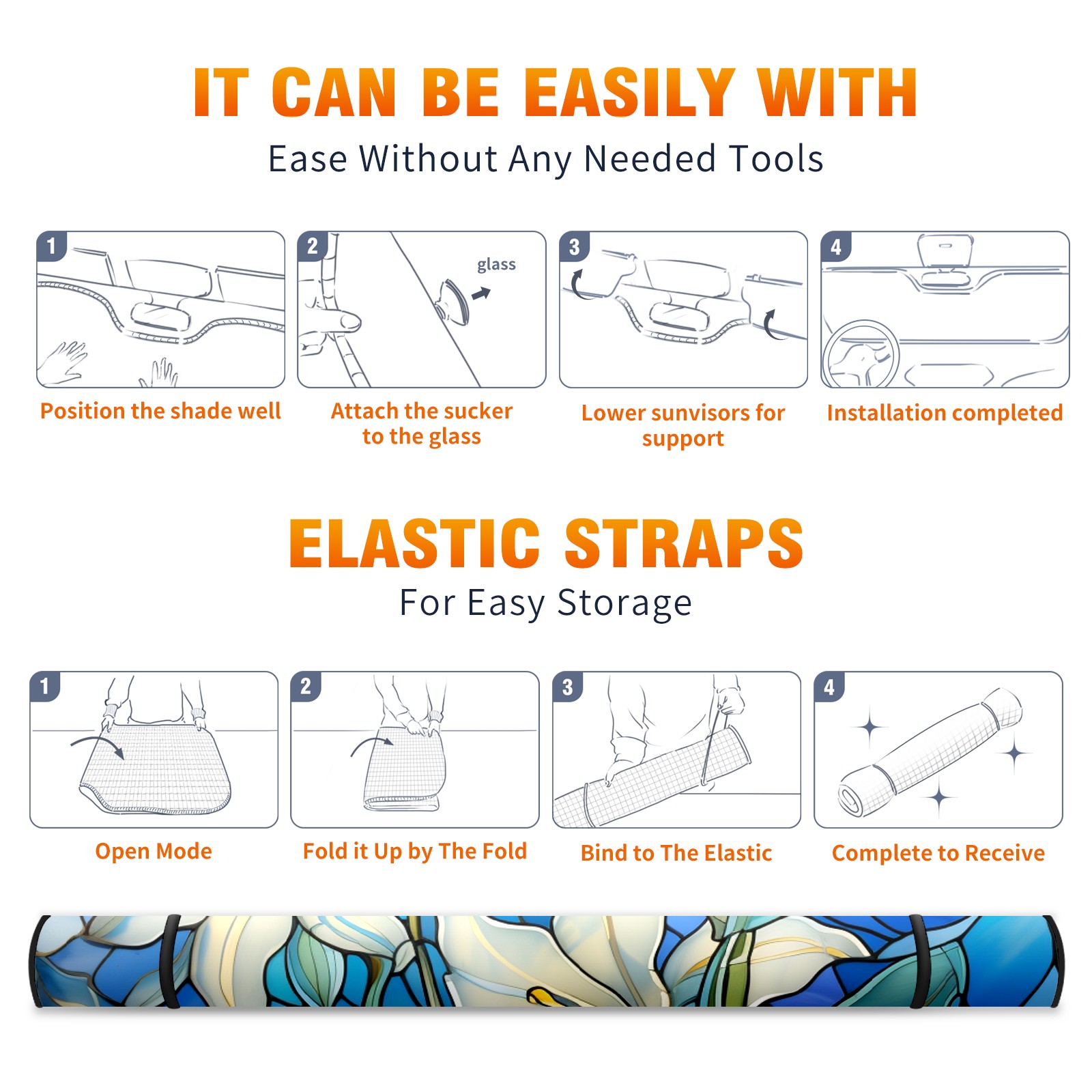 • Diameter /Size 63"L x 33.5"W Made from excellent materials which makes it sturdy and protects the car from the sun. Easy to use and pack. Makes the interior of the car cooler.You can easily stash the sunshade in the storage bag or store long term.It open and closes easy. Also the leather storage bag is durable and easy to put the umbrella back into.This windshield sunshade provides complete coverage and keeps your car interior cool under direct sun. It is easy to open and position under the windshield and around the rear-view mirror. Makes Your Car Easy To Identify, Perfect For Finding Your Car In Crowded Parking Lots And Garages.Great Choice: It Is A Great Gift For Dad, Boyfriend, Brother, Brother And Uncle, Friends, Classmates, Family And So On. Notice: Due To Difference Computer Monitors, The Color Maybe Slightly Different From Picture. As Different Measurement Methods, Measurement Data Will Float Within 2%.I Hope You Understand. If You Have Any Question About The Item Please Do Not Hesitate To Contact Us Immediately And We Will Give You A Satisfactory Reply Within 24 Hours.